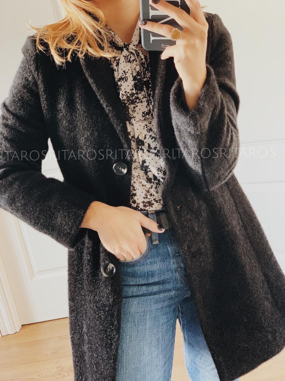 Abrigo de cuello y solapa, manga larga, corte ligeramente entallado y bolsillos laterales.