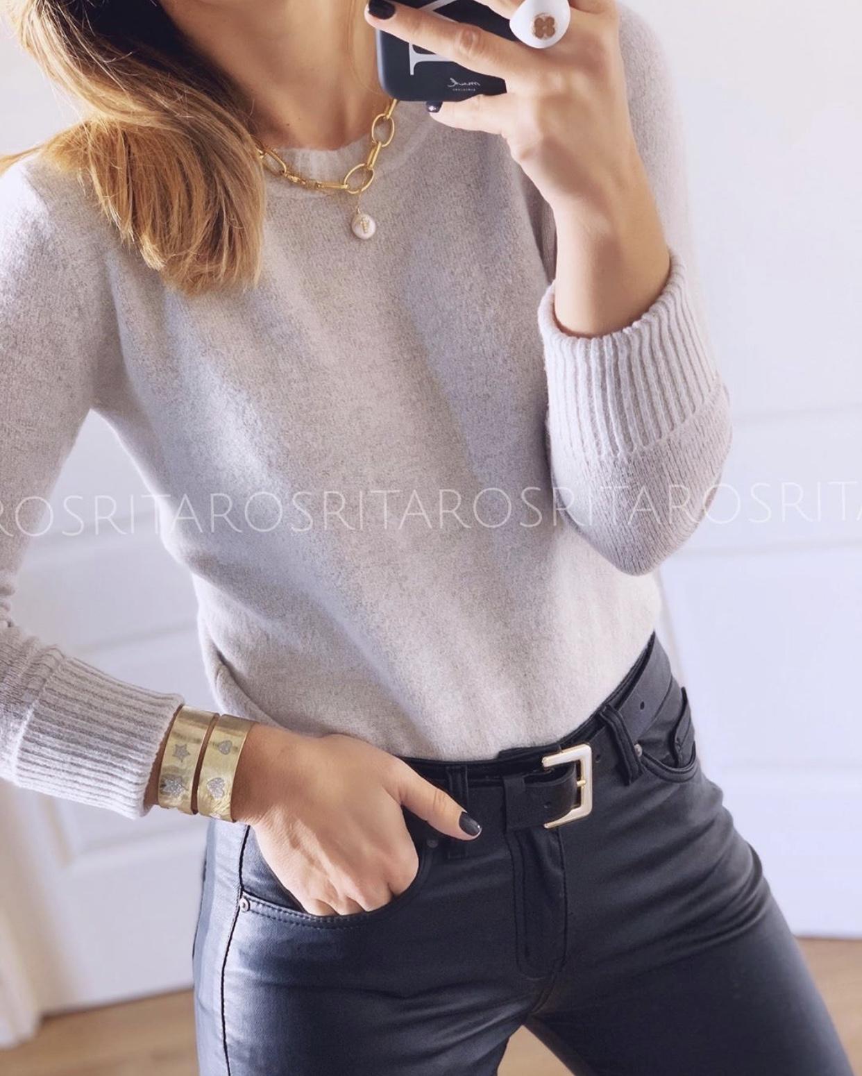 Jersey de punto de manga larga y cuello redondo. Un básico ideal para llevar a diario.