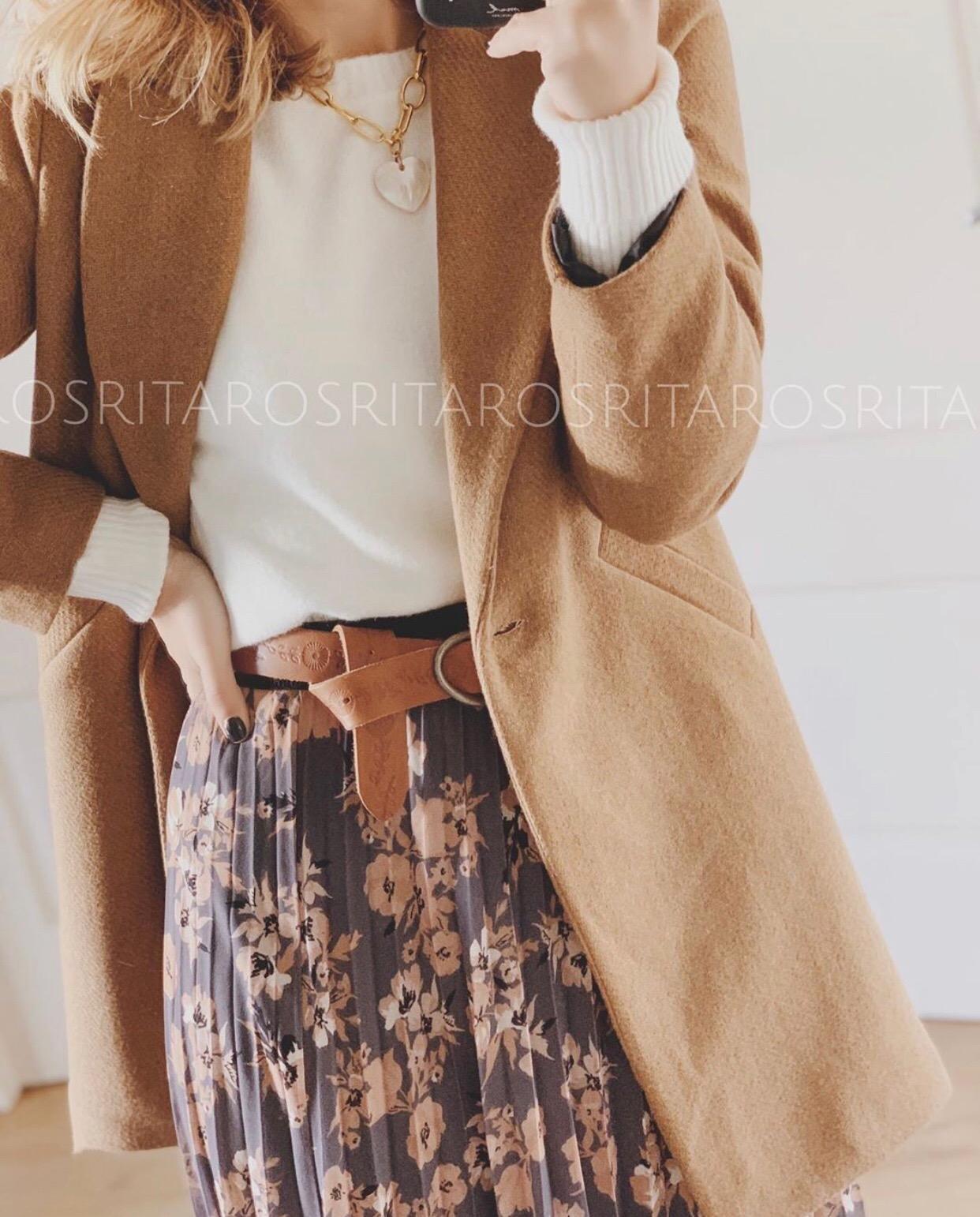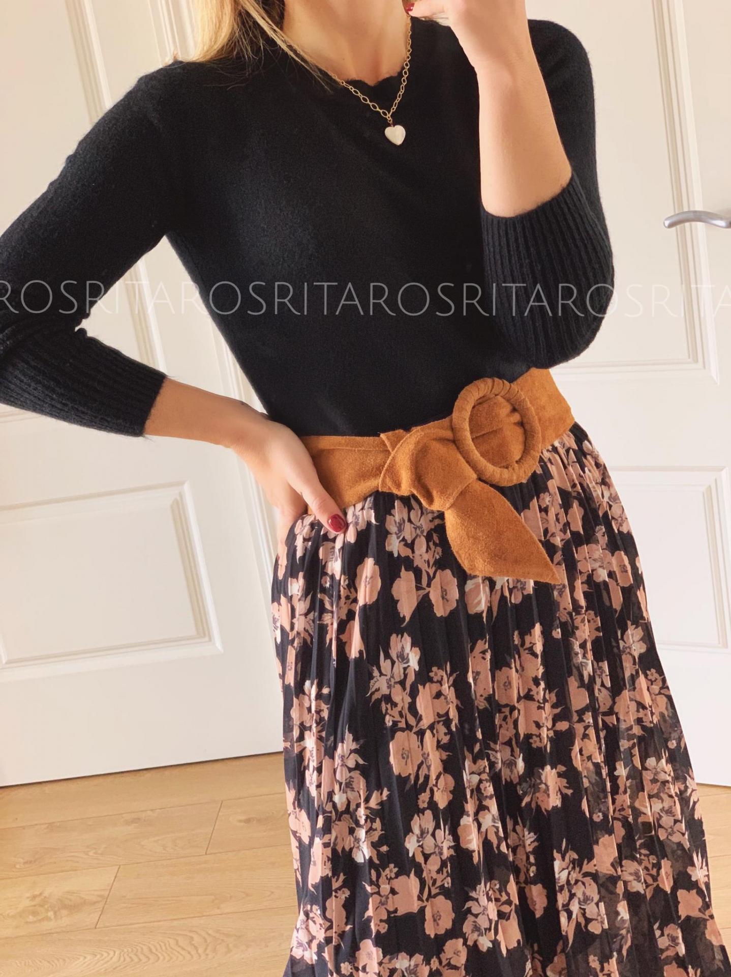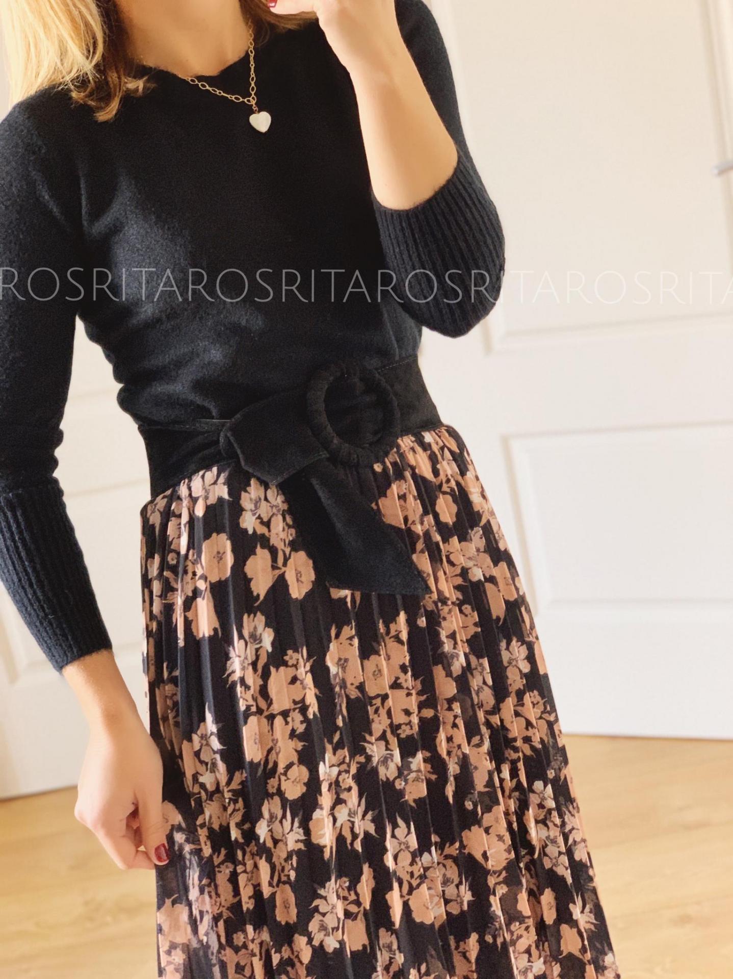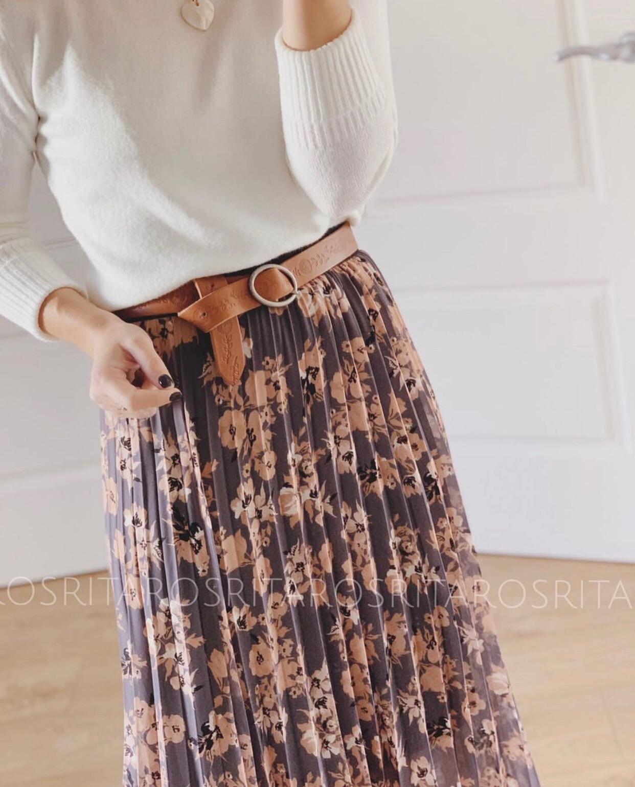 Falda plisada midi estampada de mini flores con cintura con goma elástica.