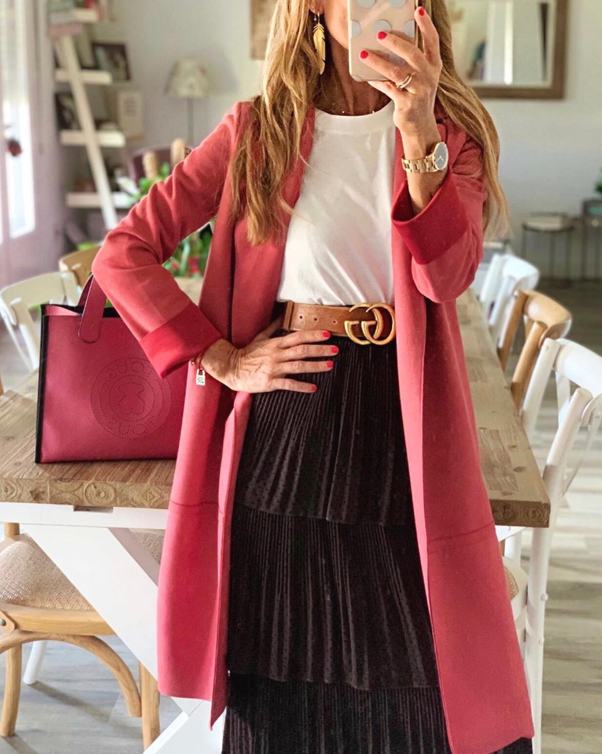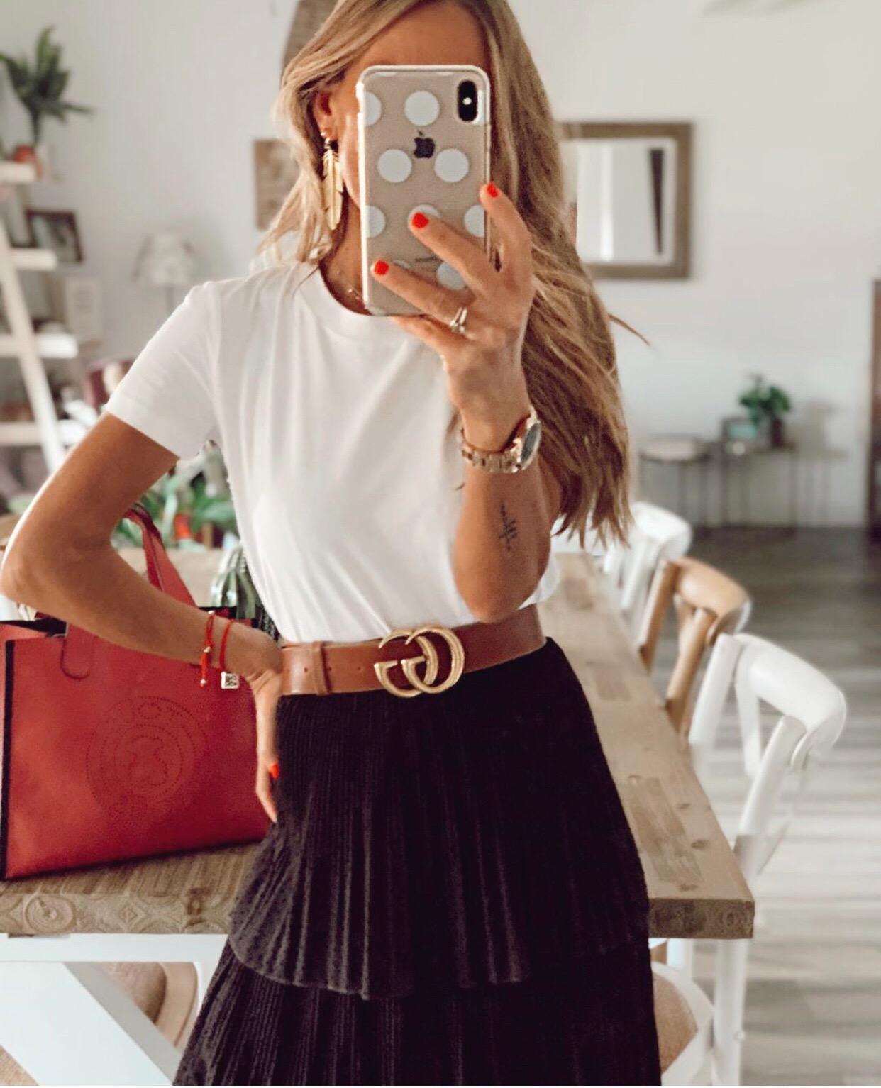 Falda midi con volantes y mini lunares estampados con cintura con goma elástica.