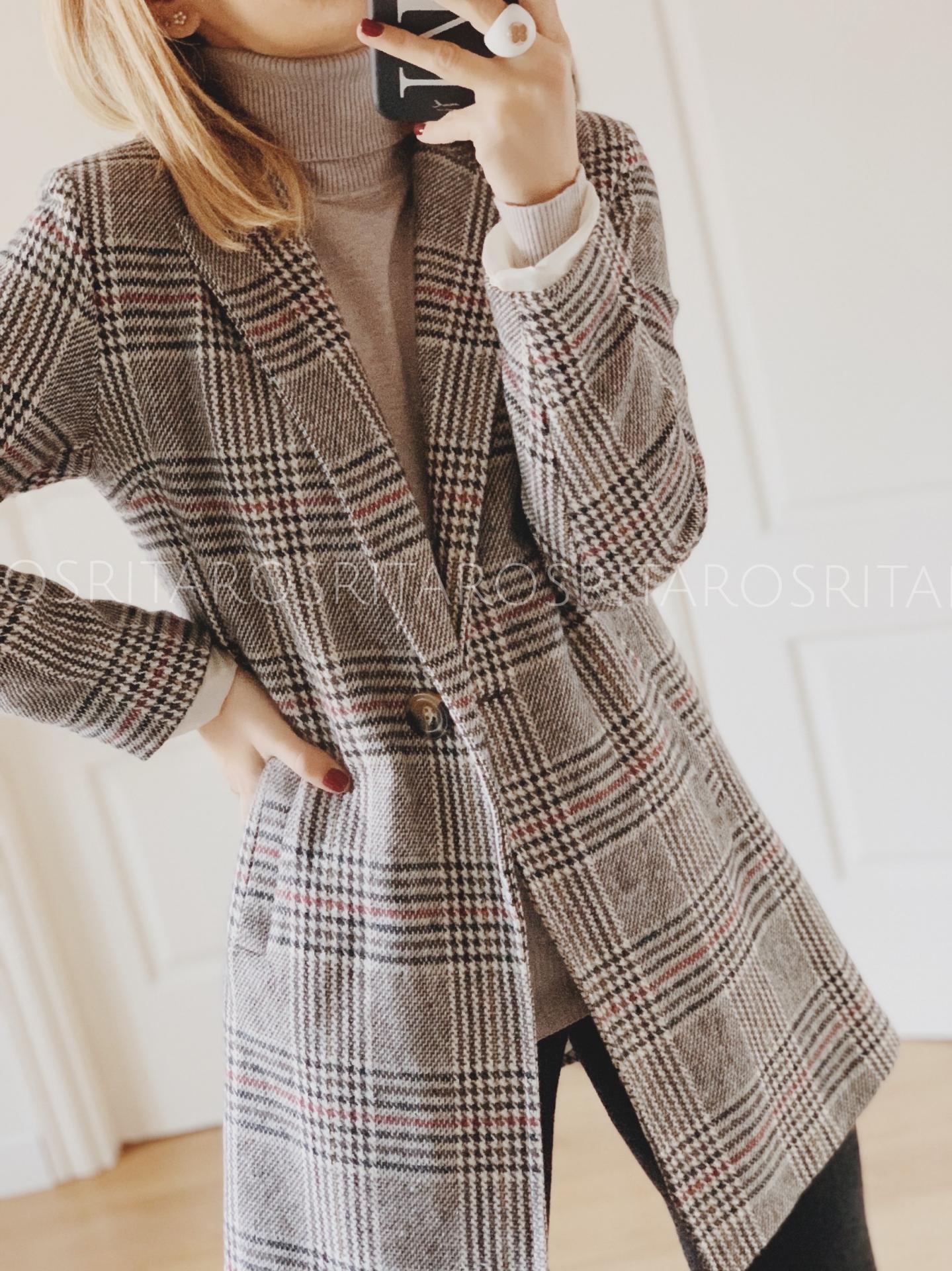 Abrigo de corte recto con cuello y solapa con un estampado de cuadros precioso.