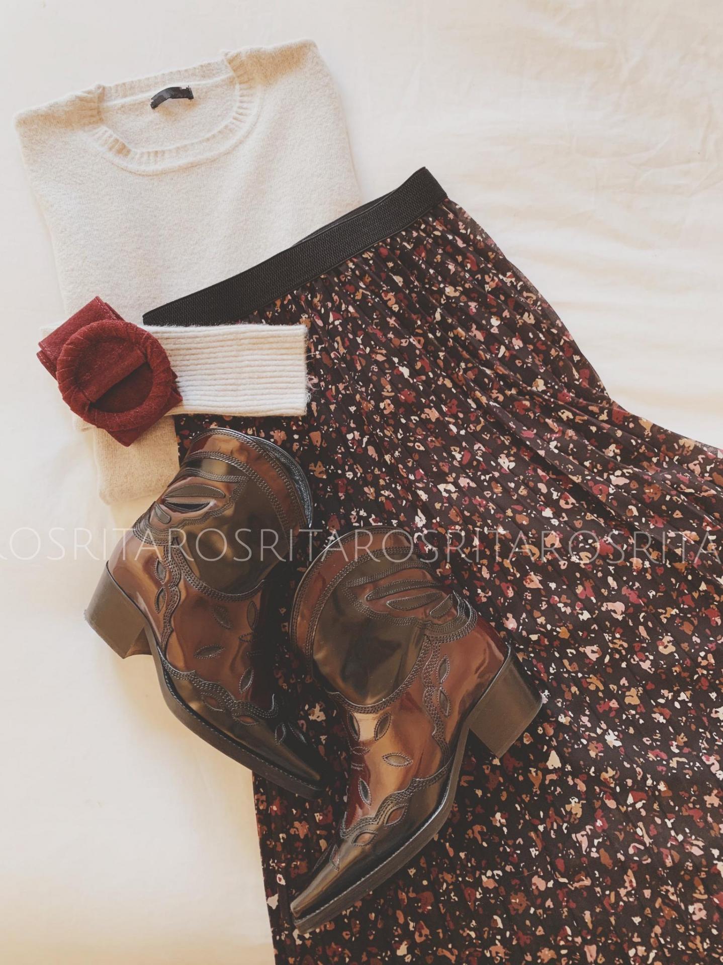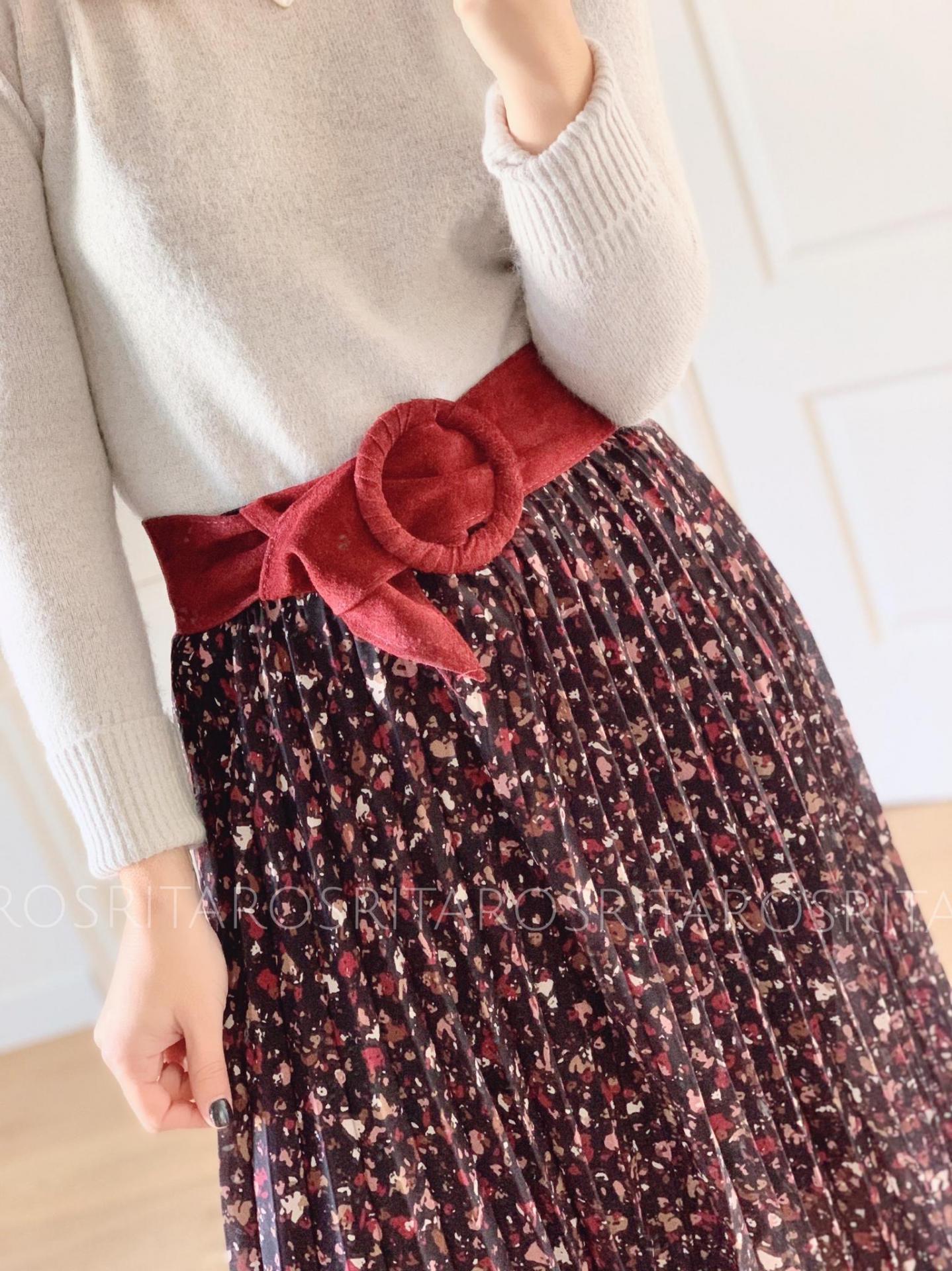 Falda plisada midi estampada con cintura con goma elástica. Súper cómoda y ligera, te encantará.