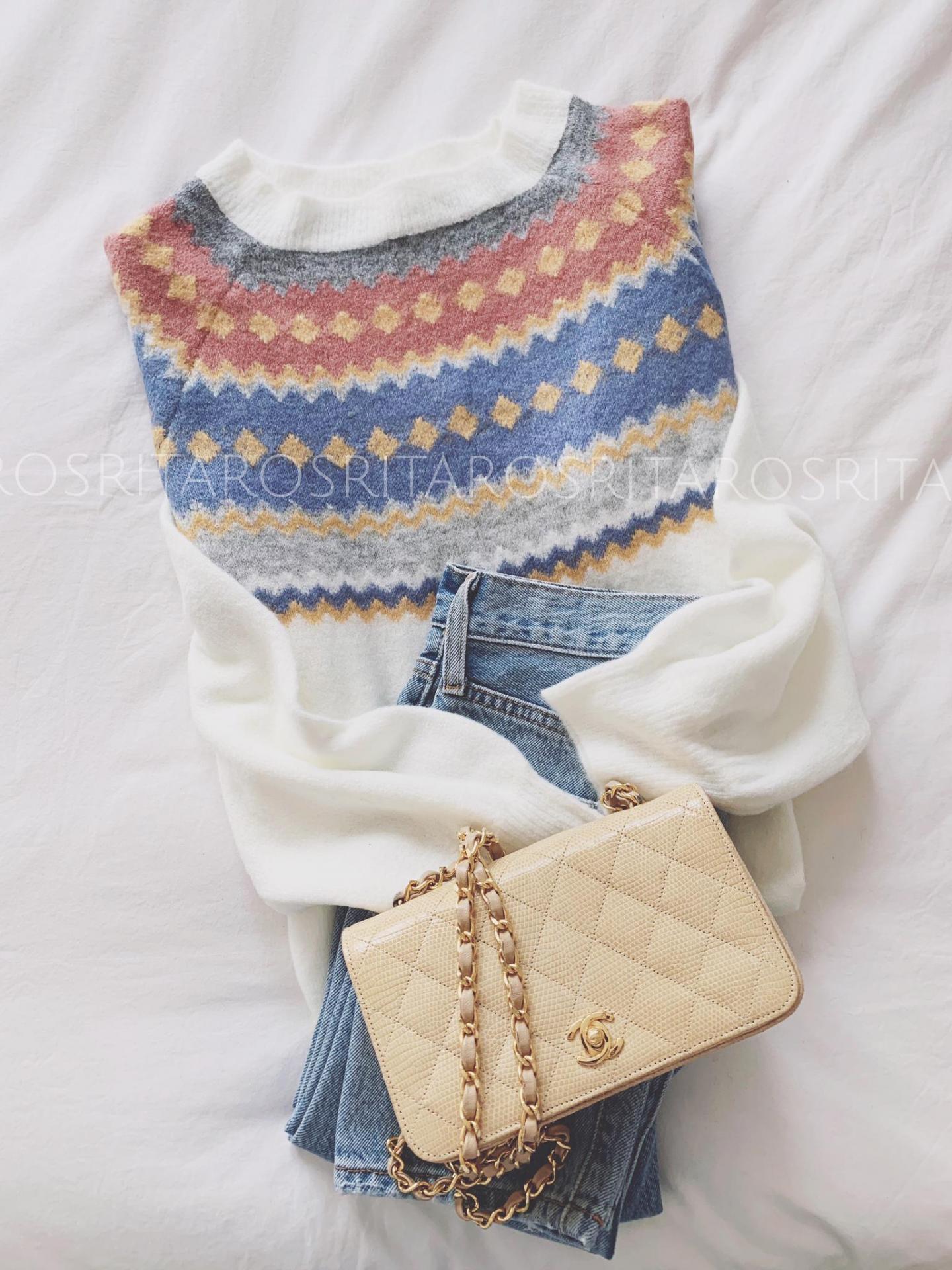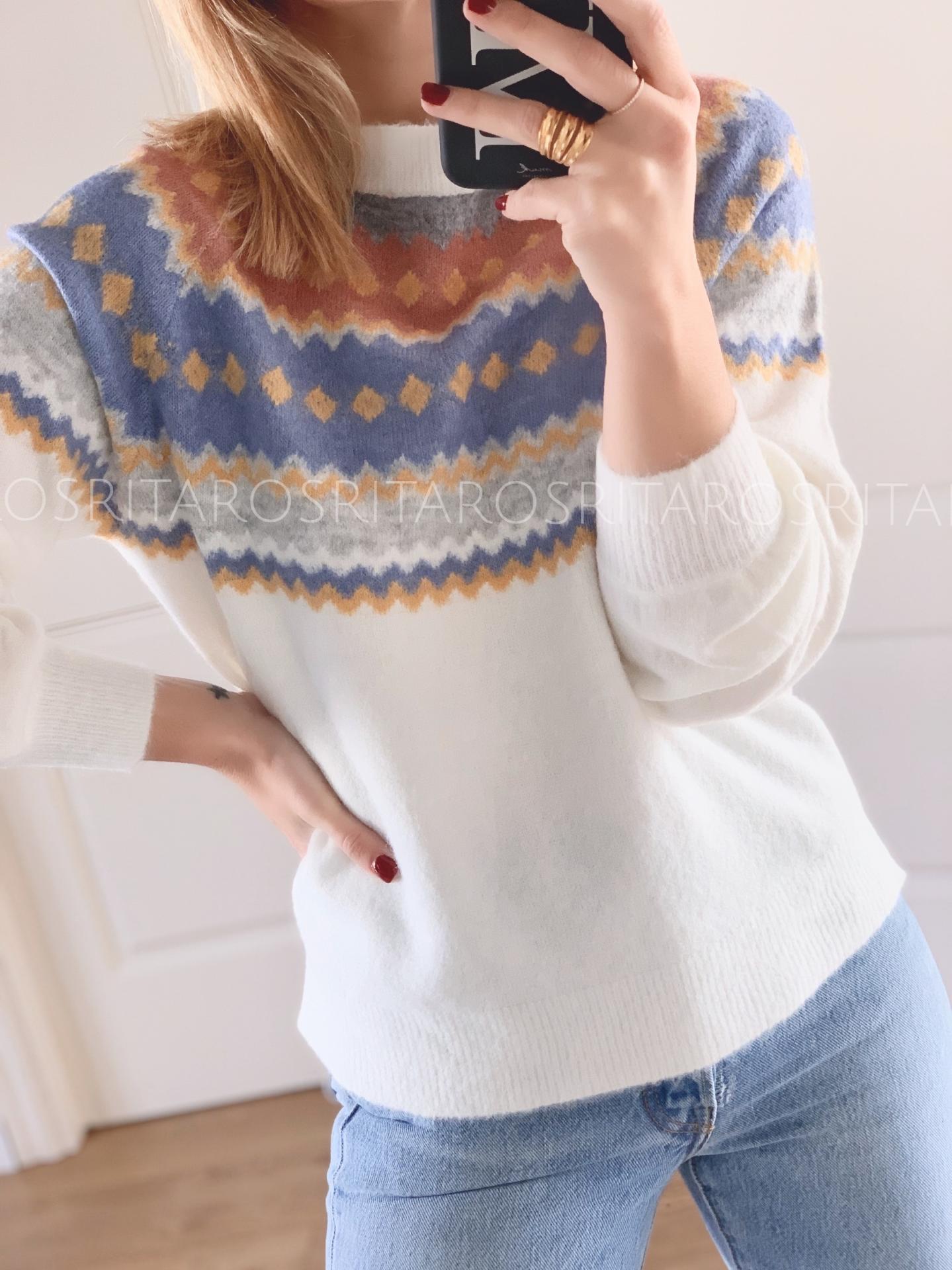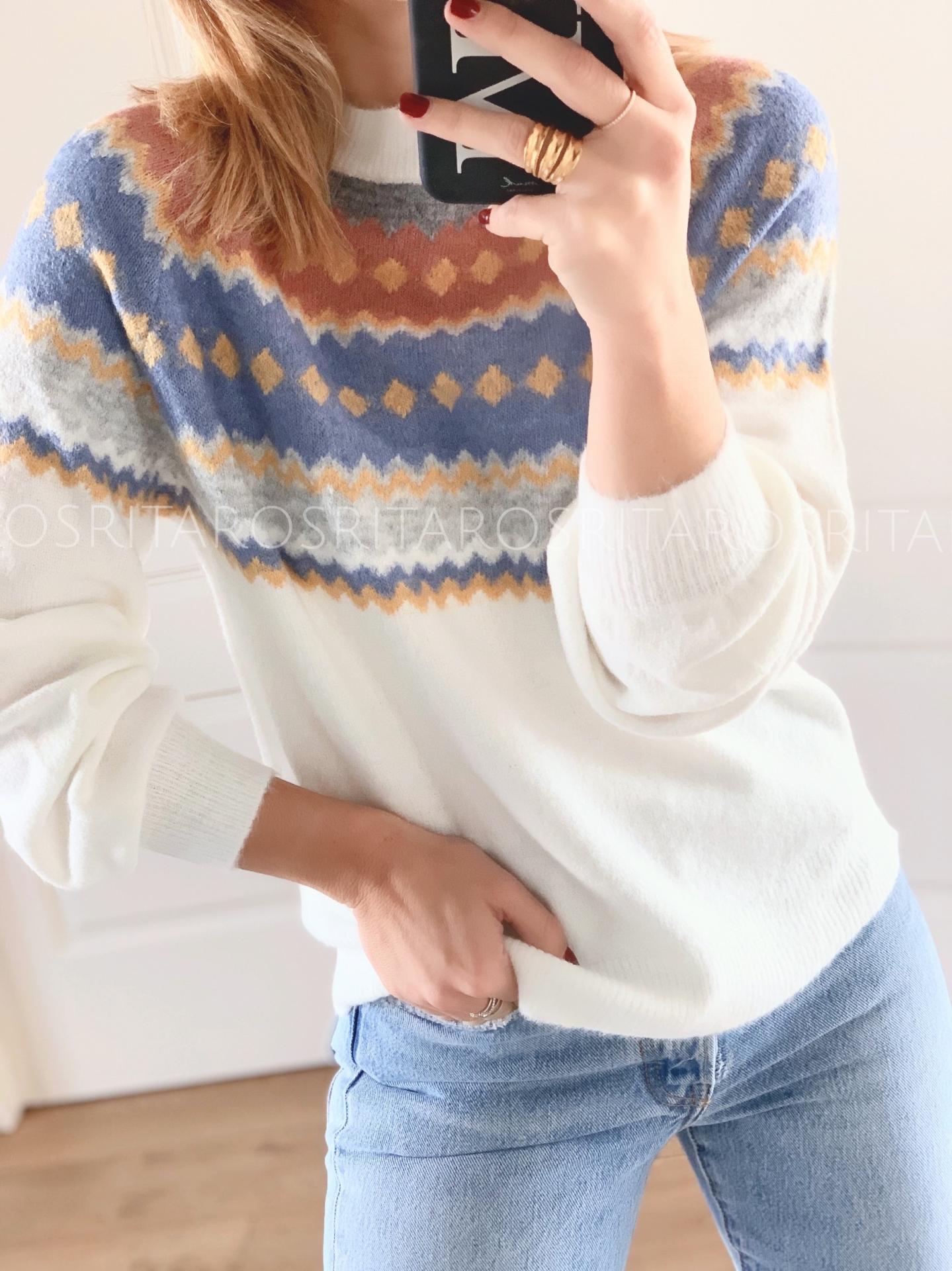 Jersey de punto de manga larga y cuello redondo con un estampado precioso.