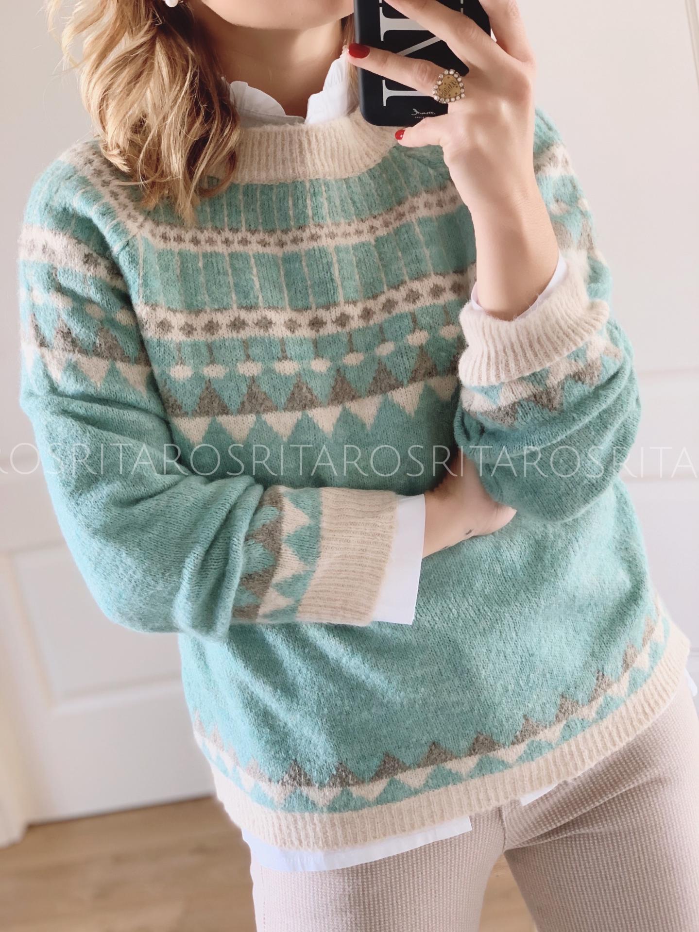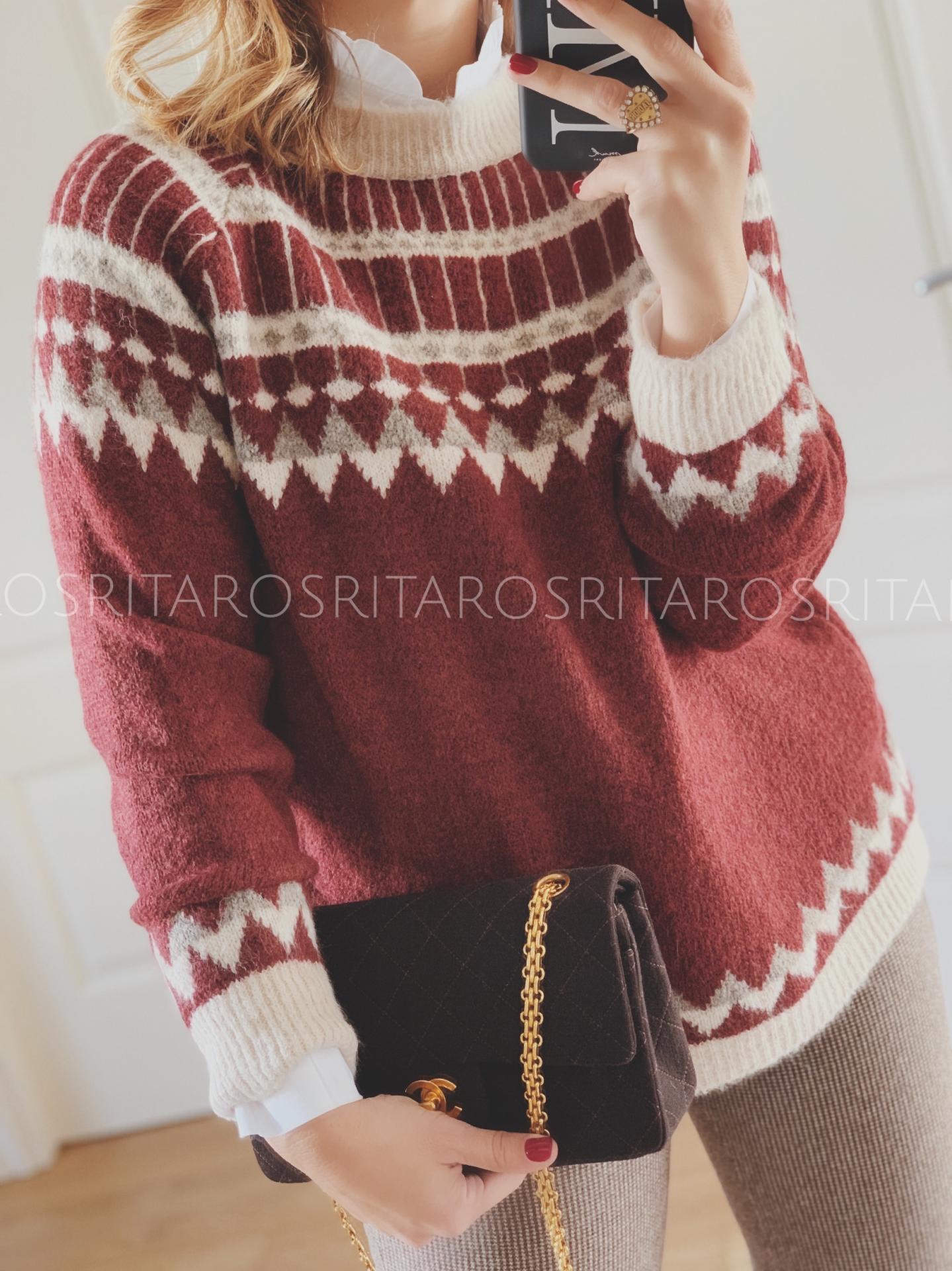Jersey de punto manga larga y cuello redondo estampado. Combínalo con nuestro pantalón de pana recto y te encantará el resultado.
