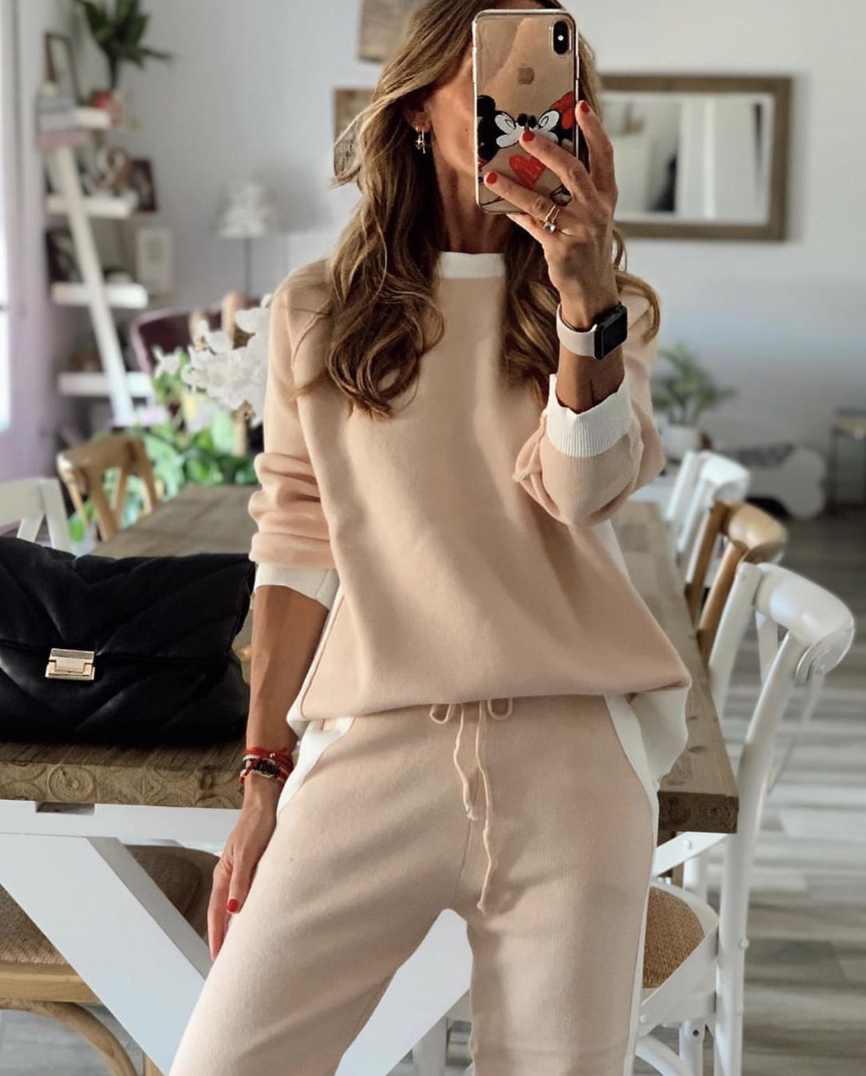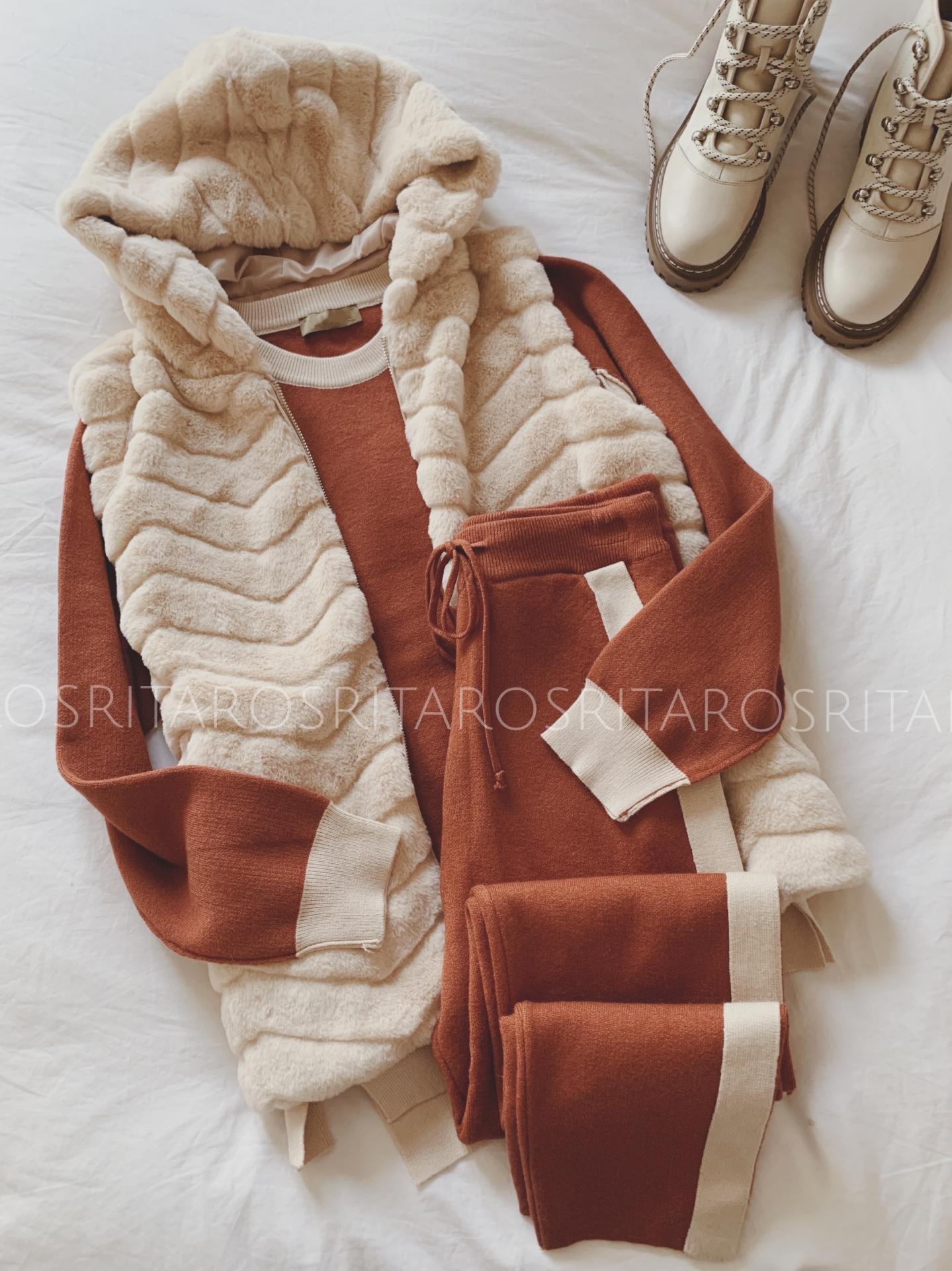 Una maravilla de Conjunto dos piezas con raya en blanco roto en los laterales.