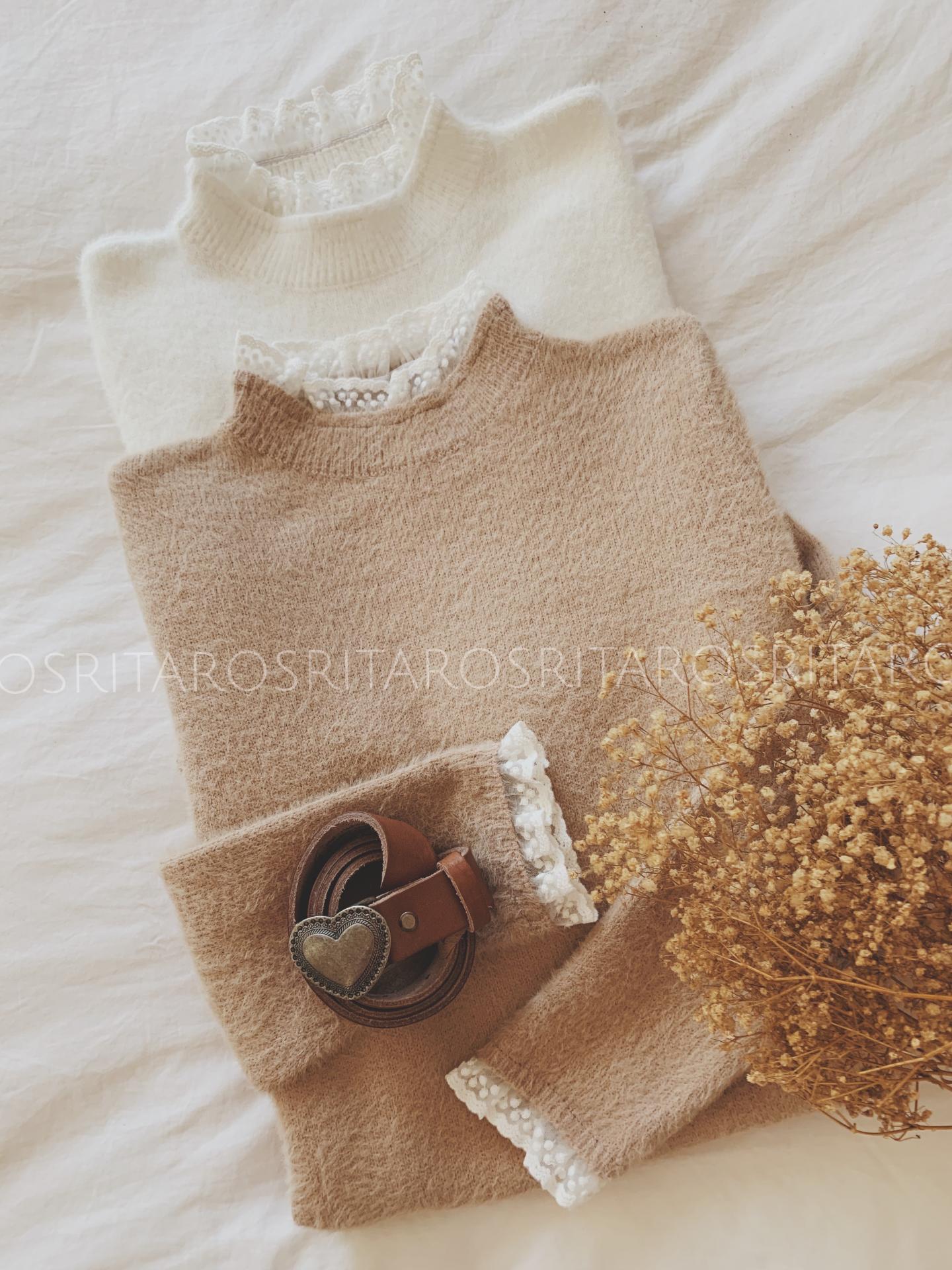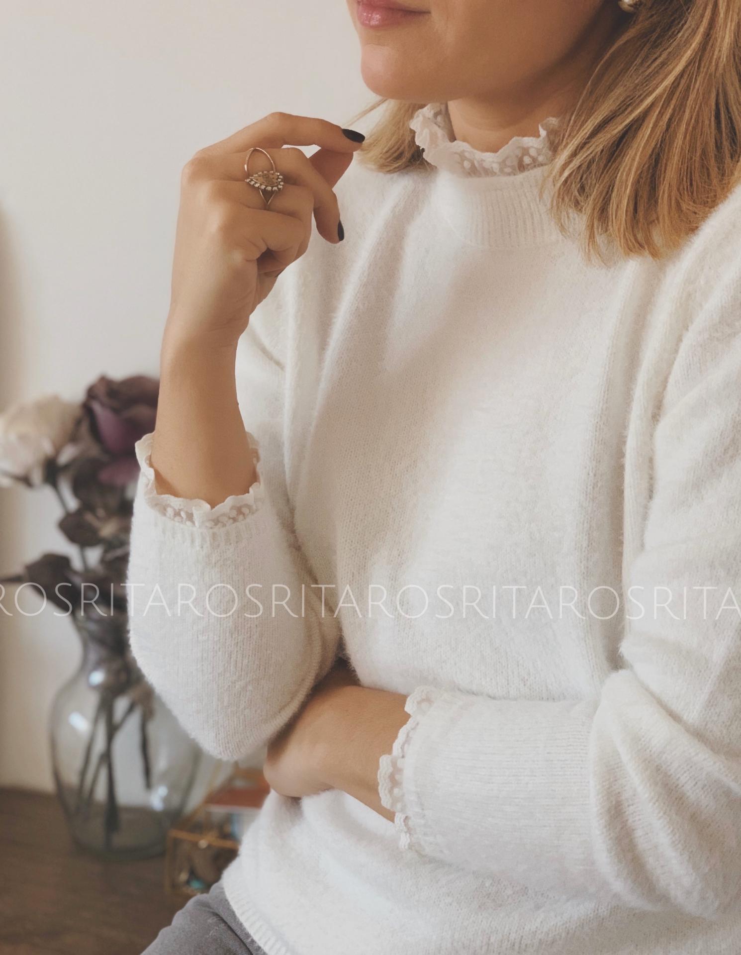 Nuevo Jersey con detalle de encaje en cuello y mangas.
