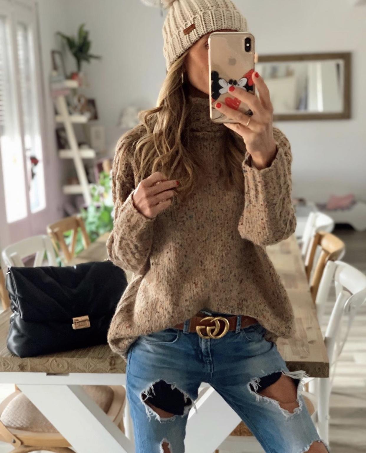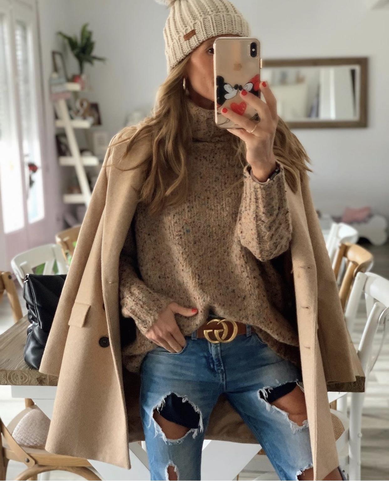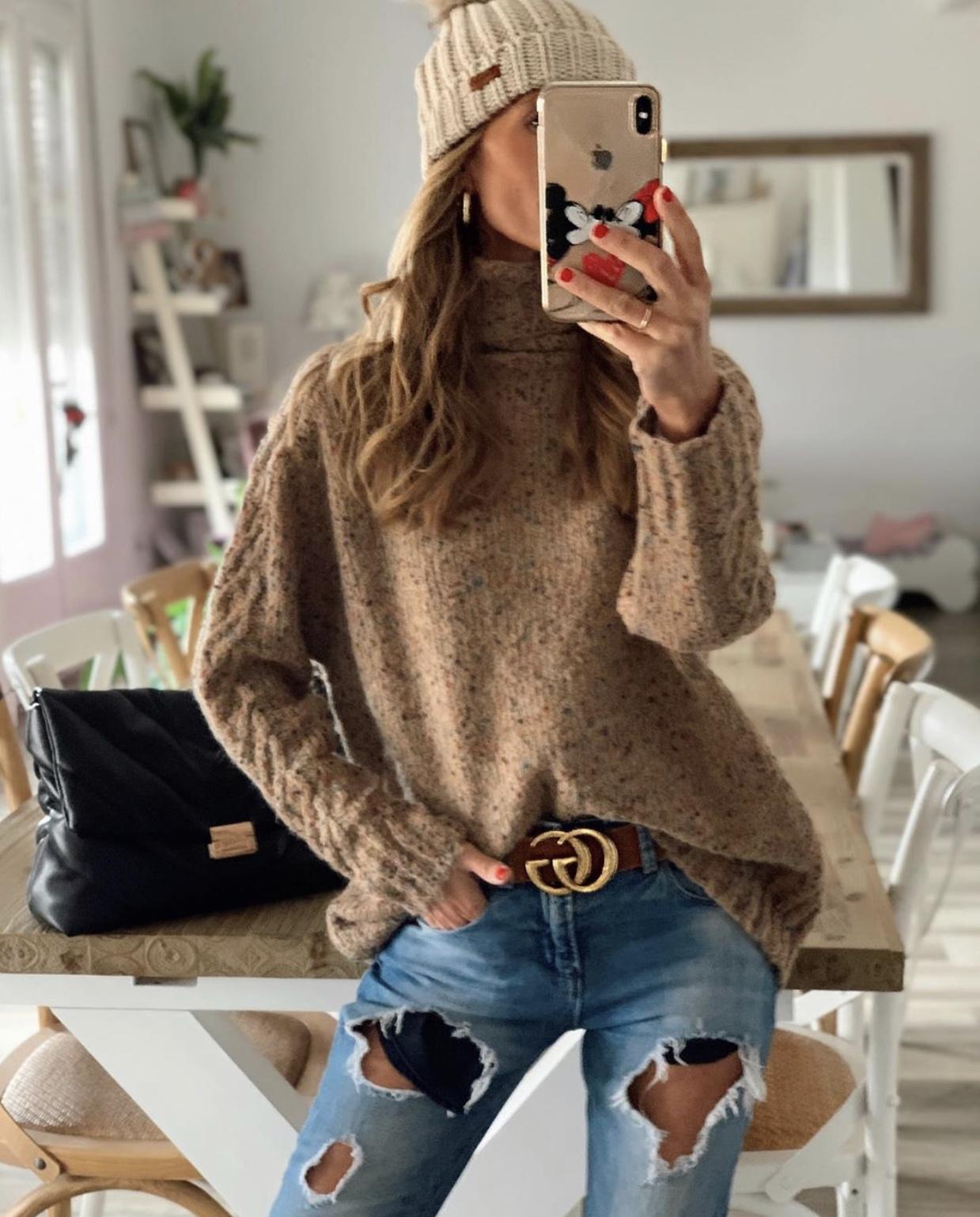 Una monada de maxi Jersey con motitas de colores, tejido grueso y cuello alto.