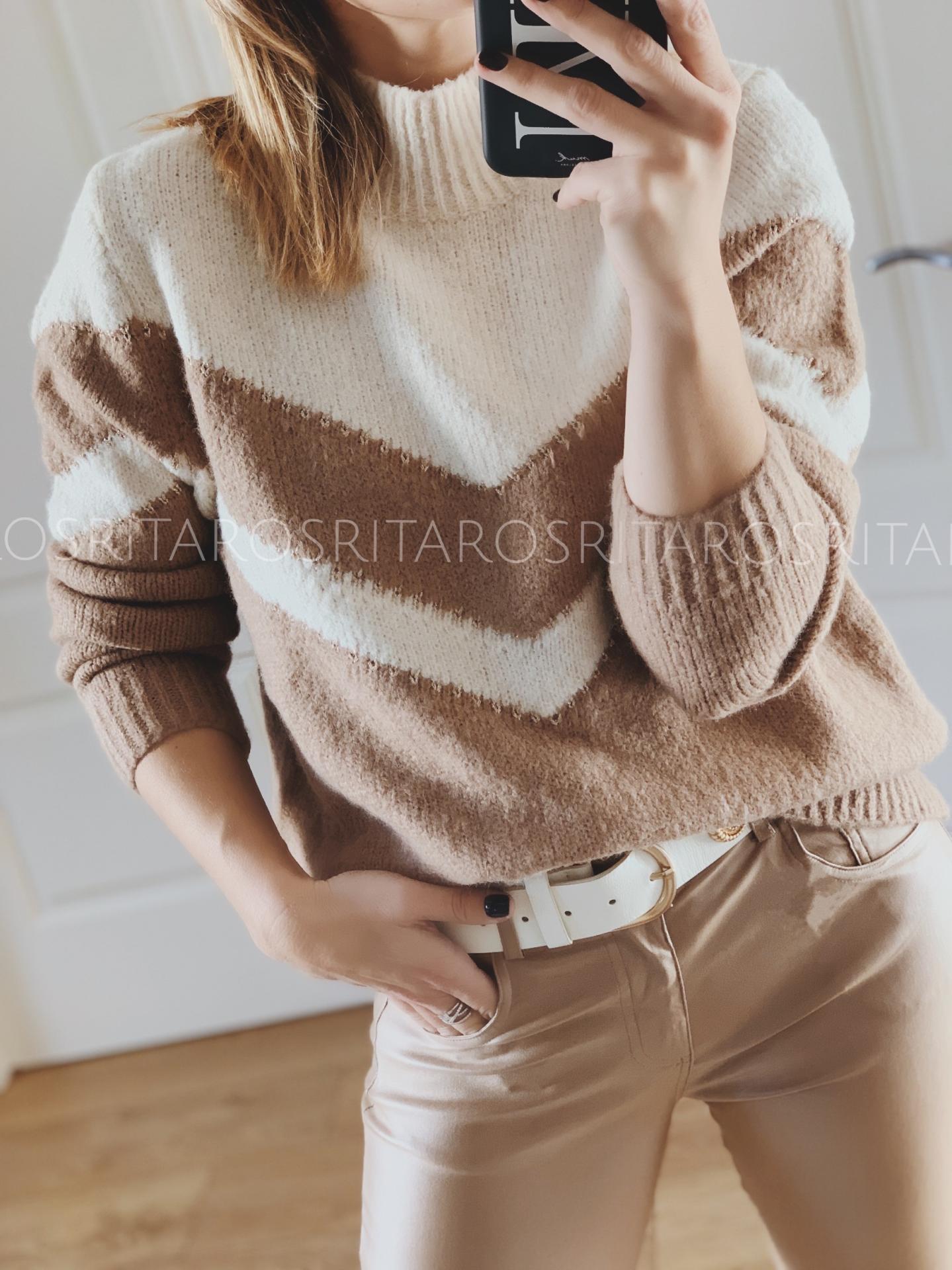 Jersey de punto de manga larga y cuello subido. Disponible en talla única.