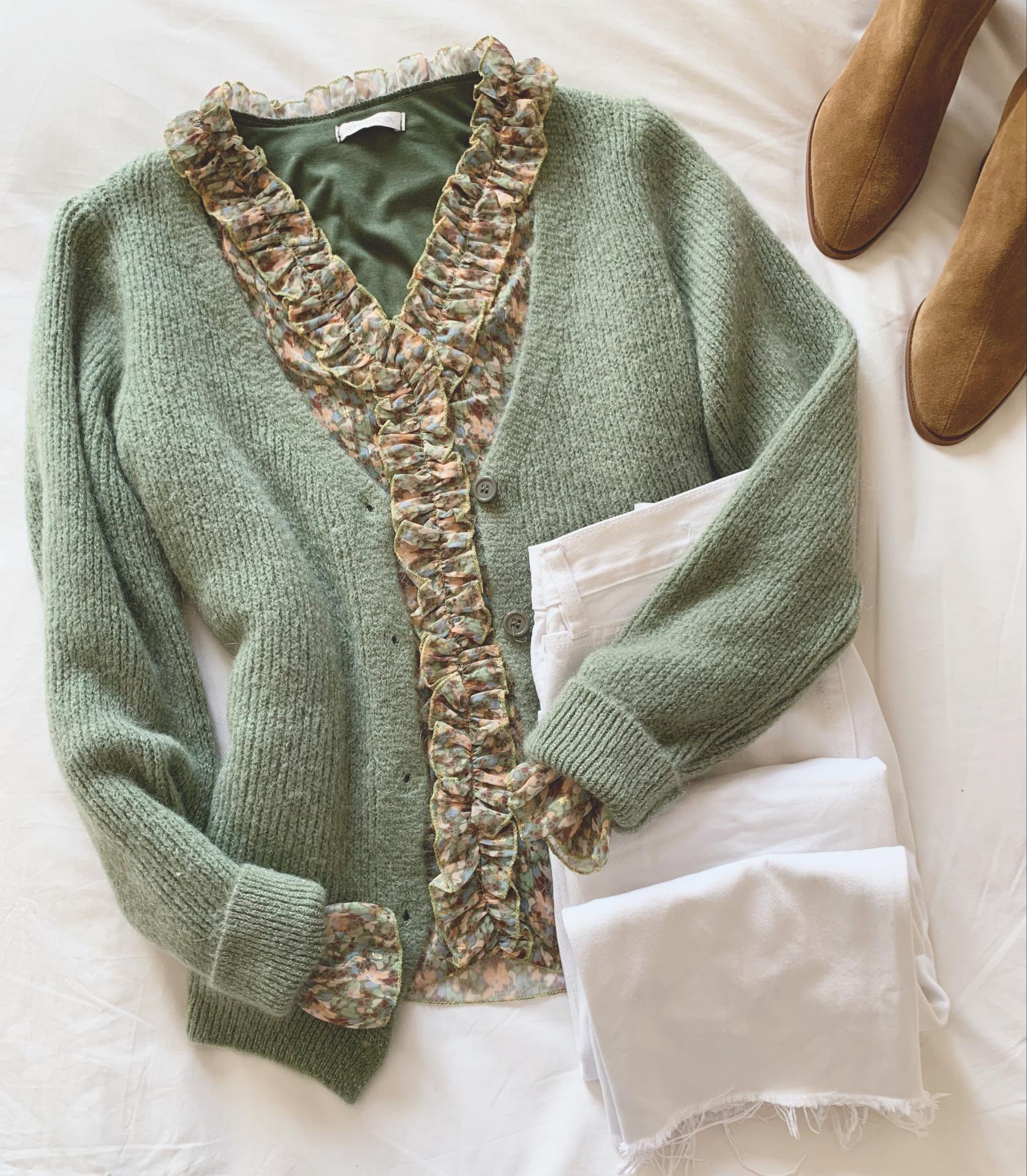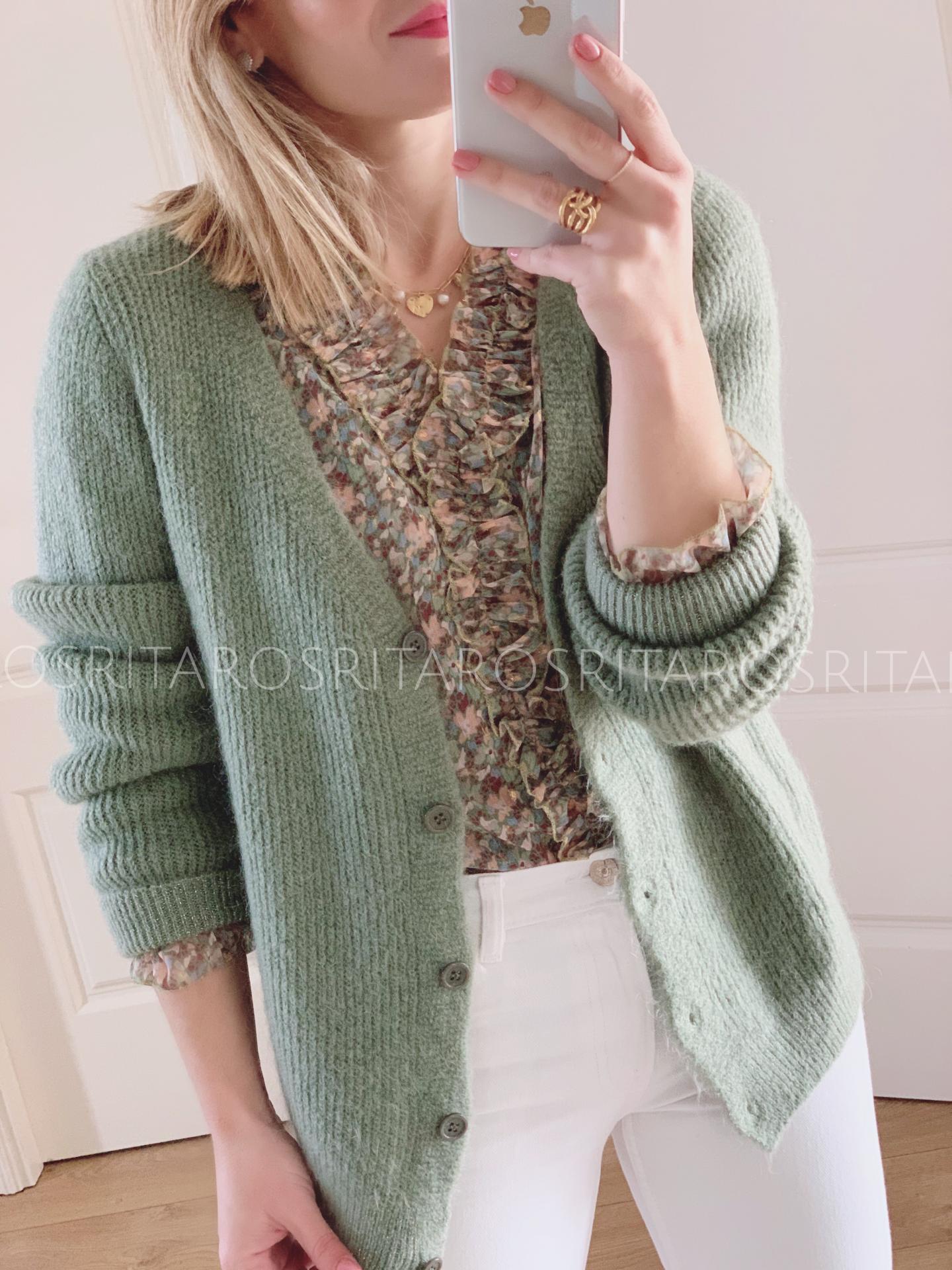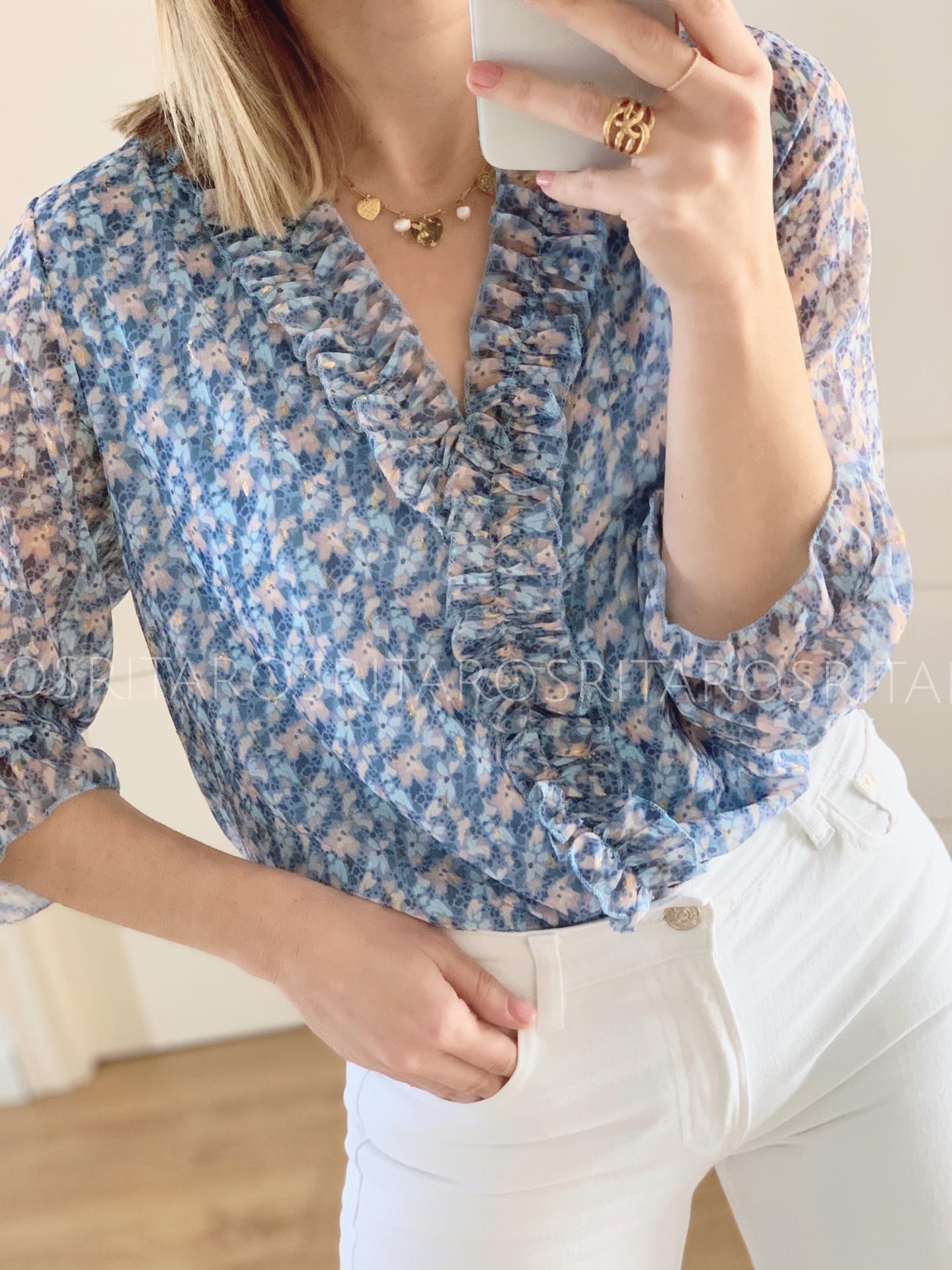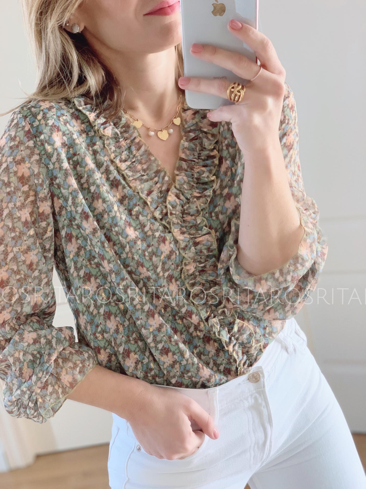Nueva Blusa de gasa en escote pico y volantitos en el escote.