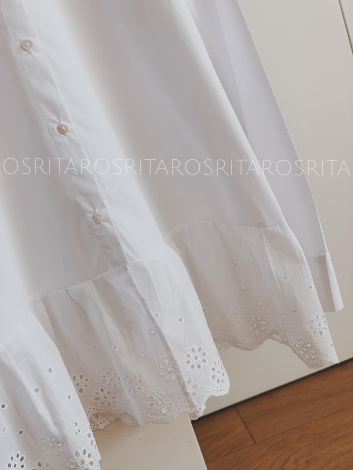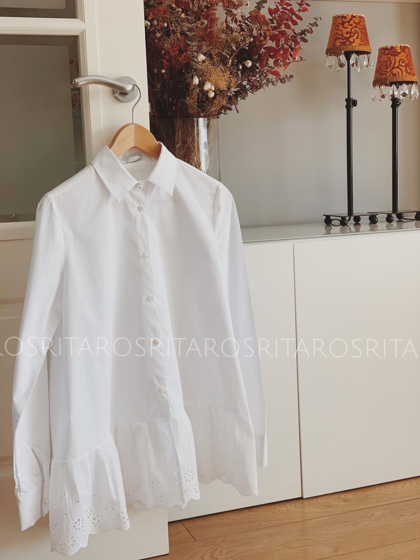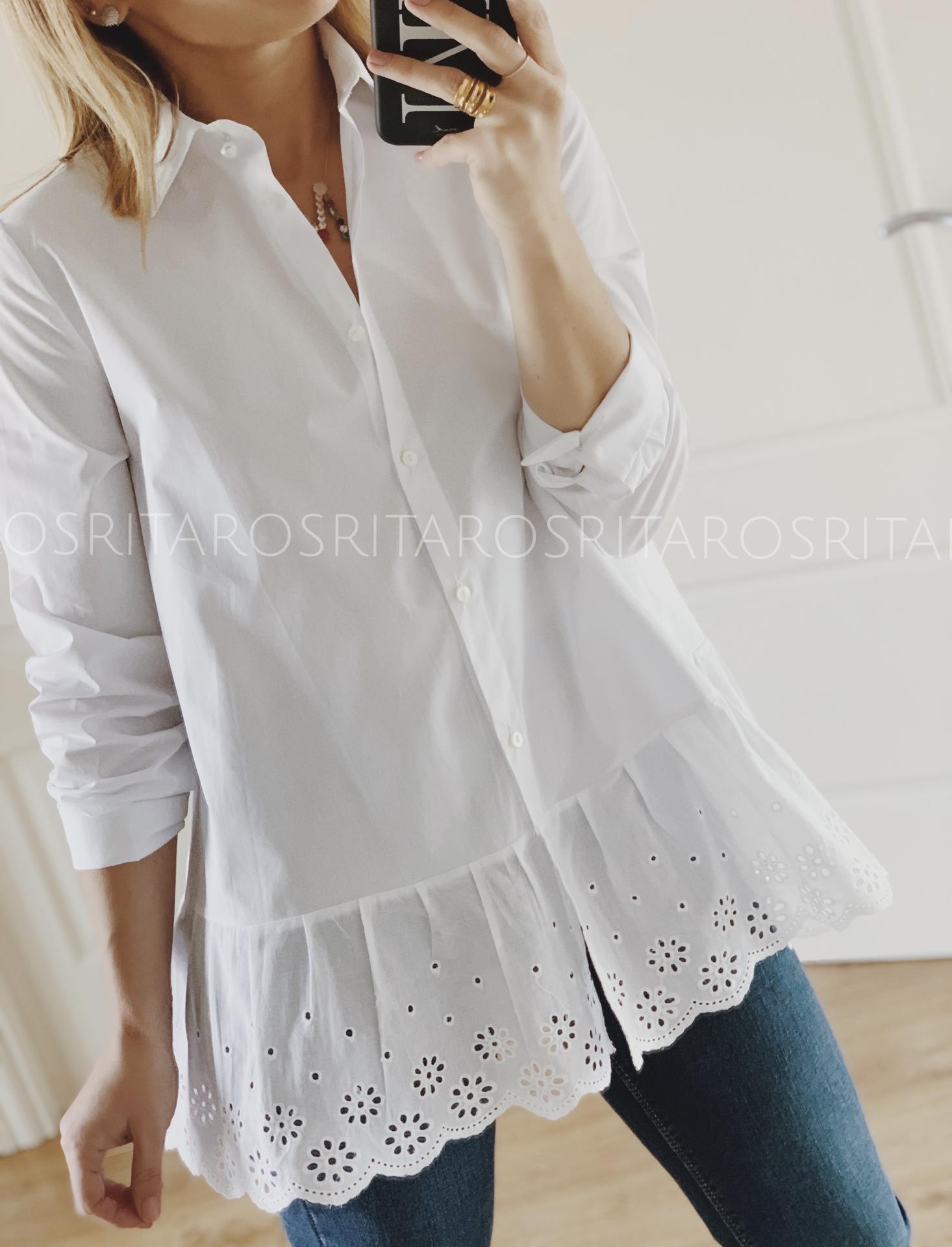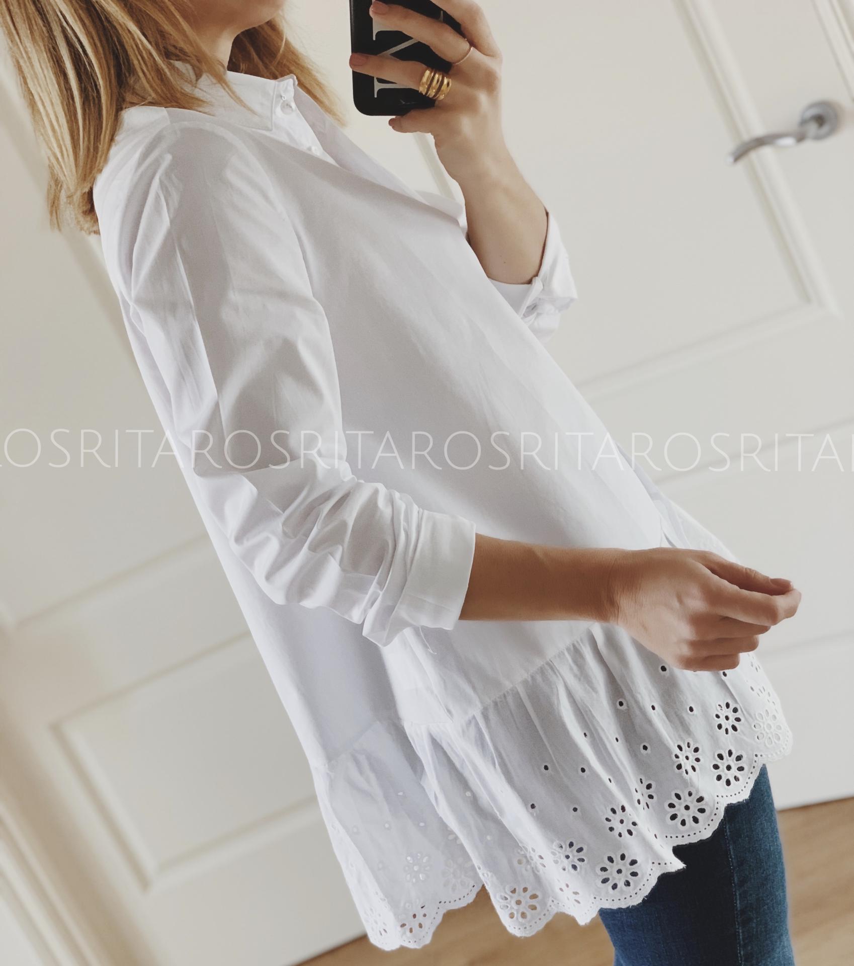 Preciosa camisa de Popelín con detalles bordados en el bajo y ligeramente acampanada.
