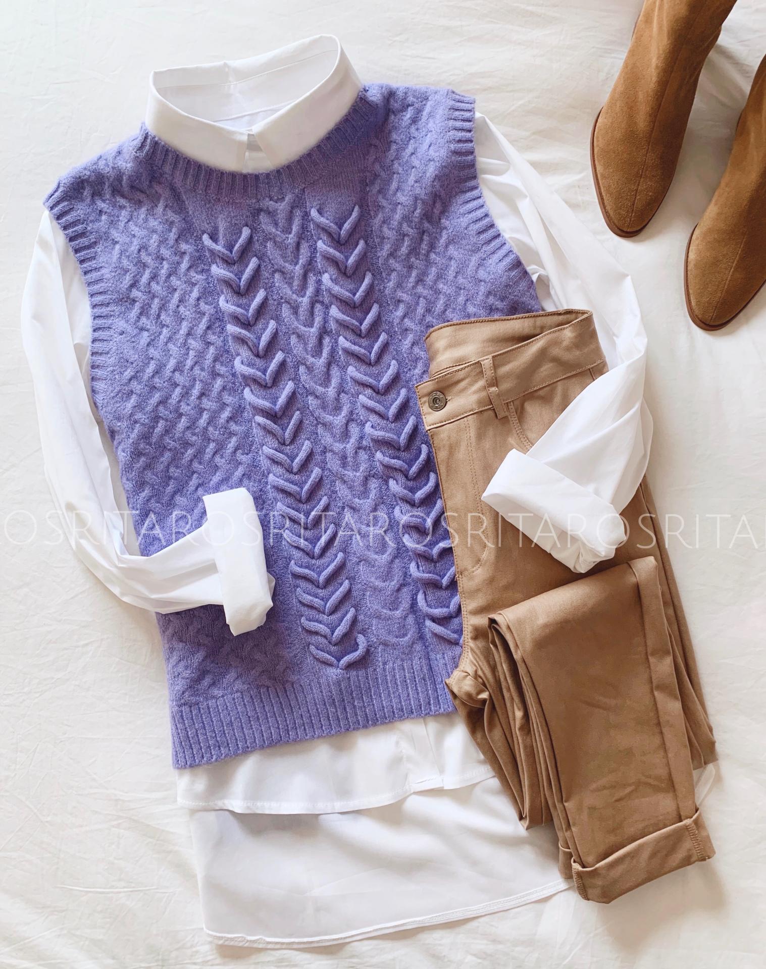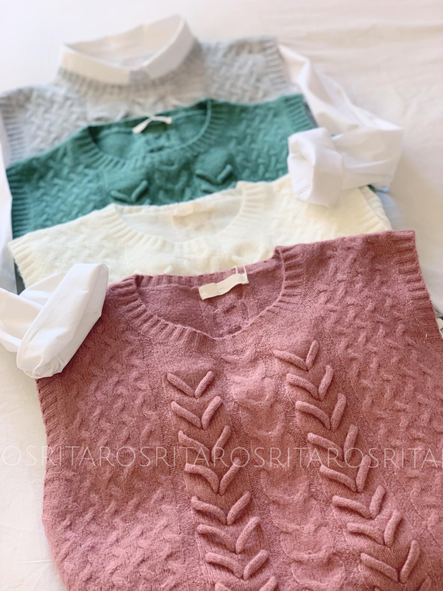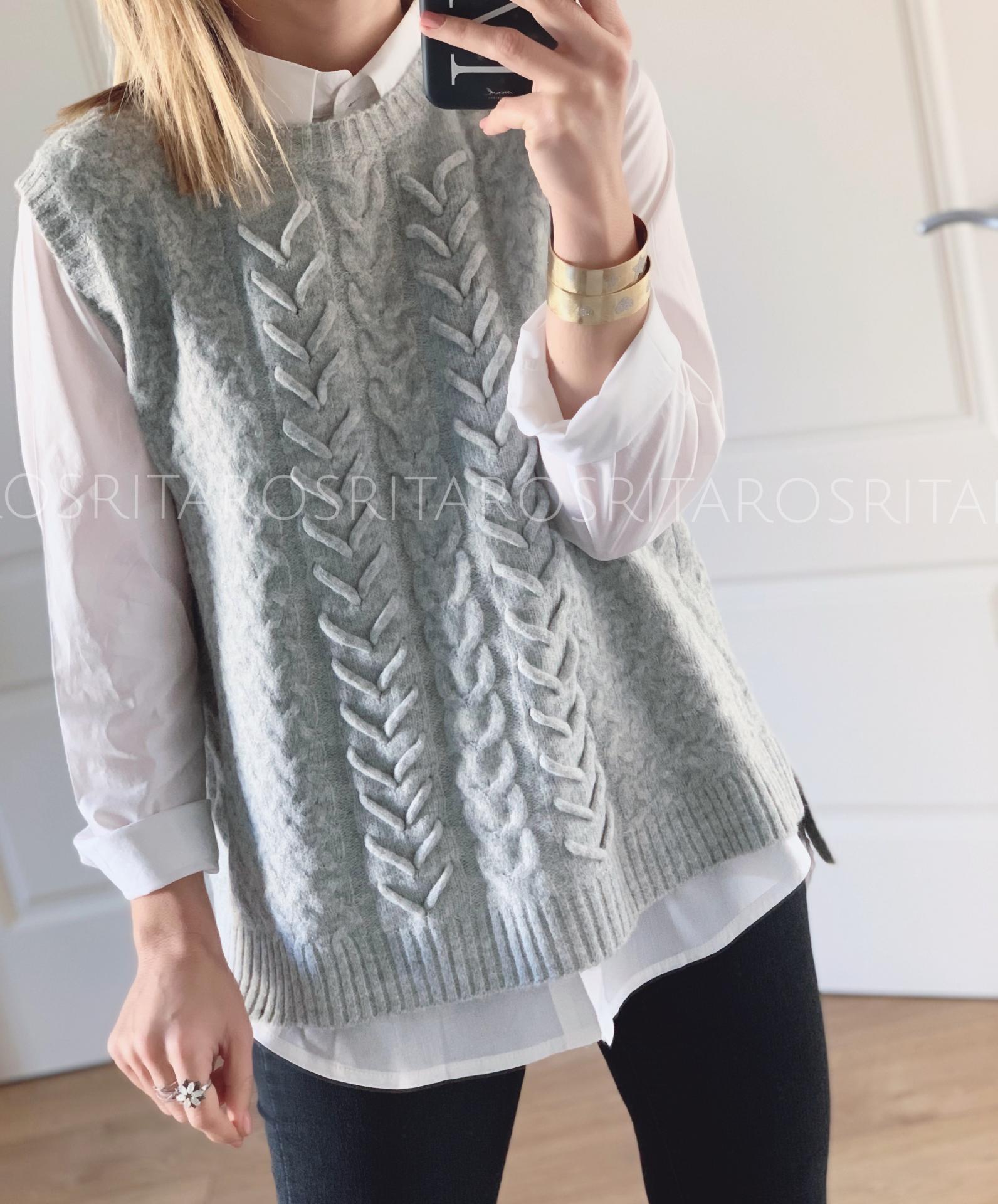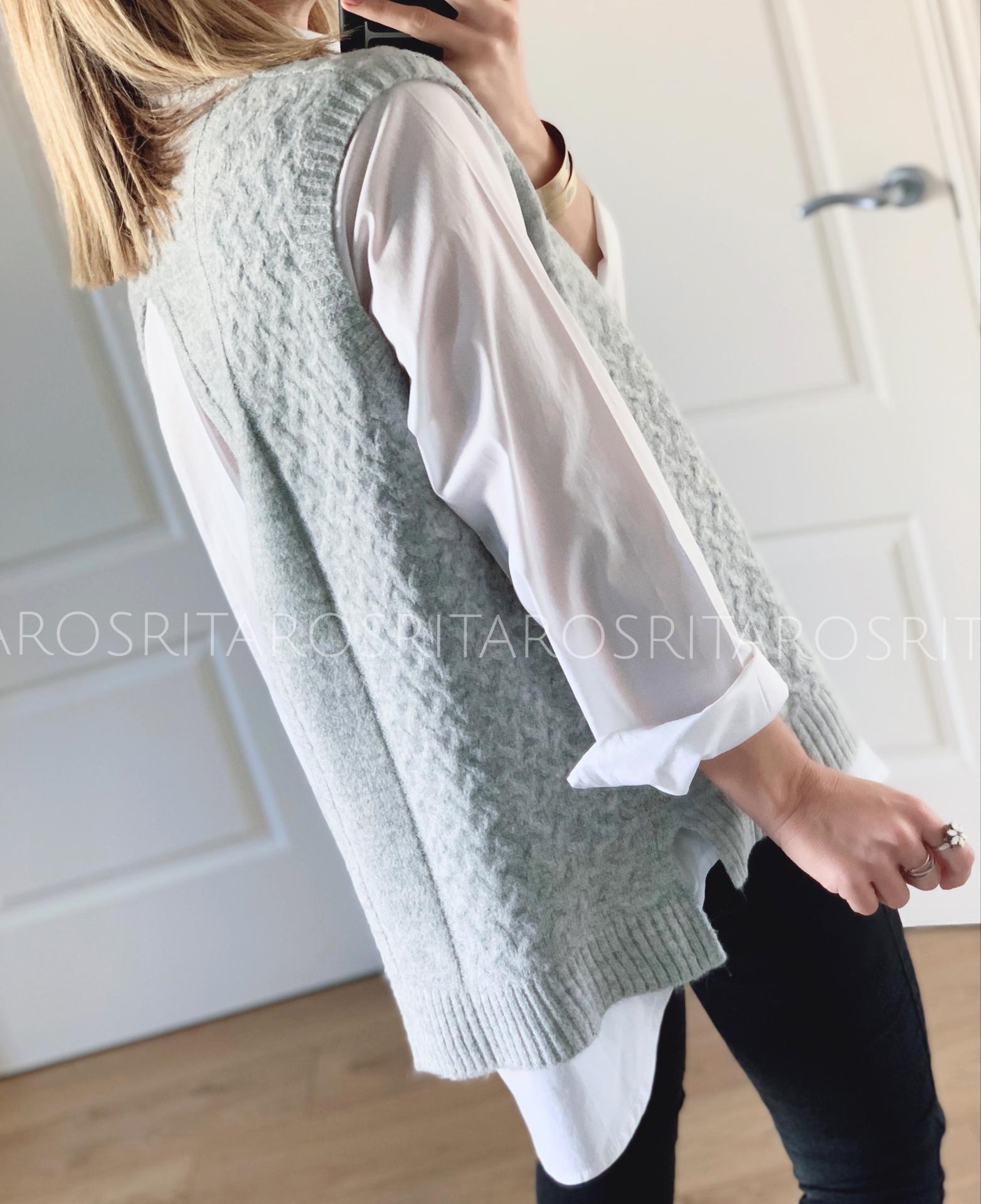 Nuevo Chaleco de punto con un tejido precioso, de cuello redondo y abertura en la parte trasera.
