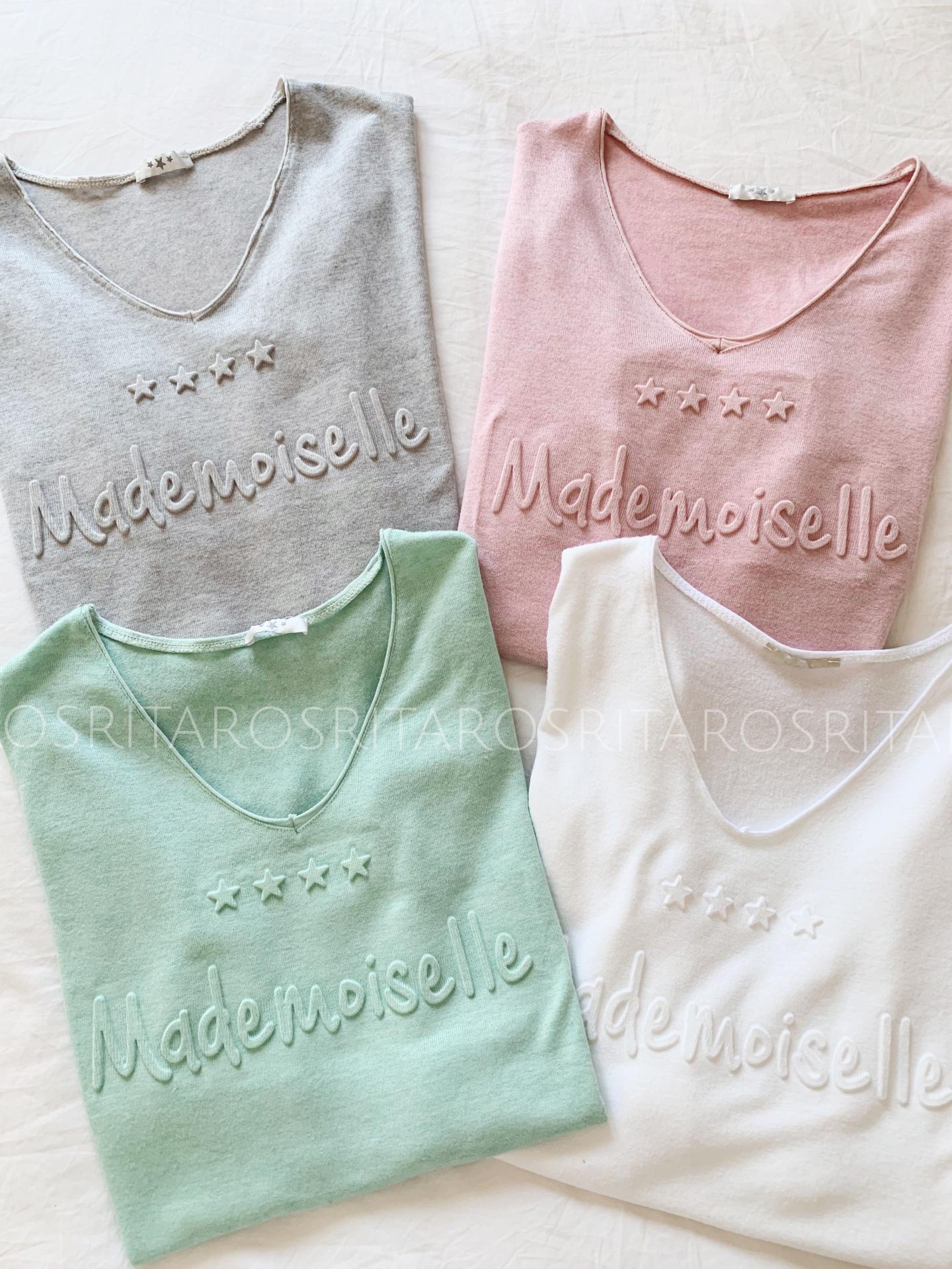 Nuevo Jersey fino con escote pico y letras impresas con relieve.