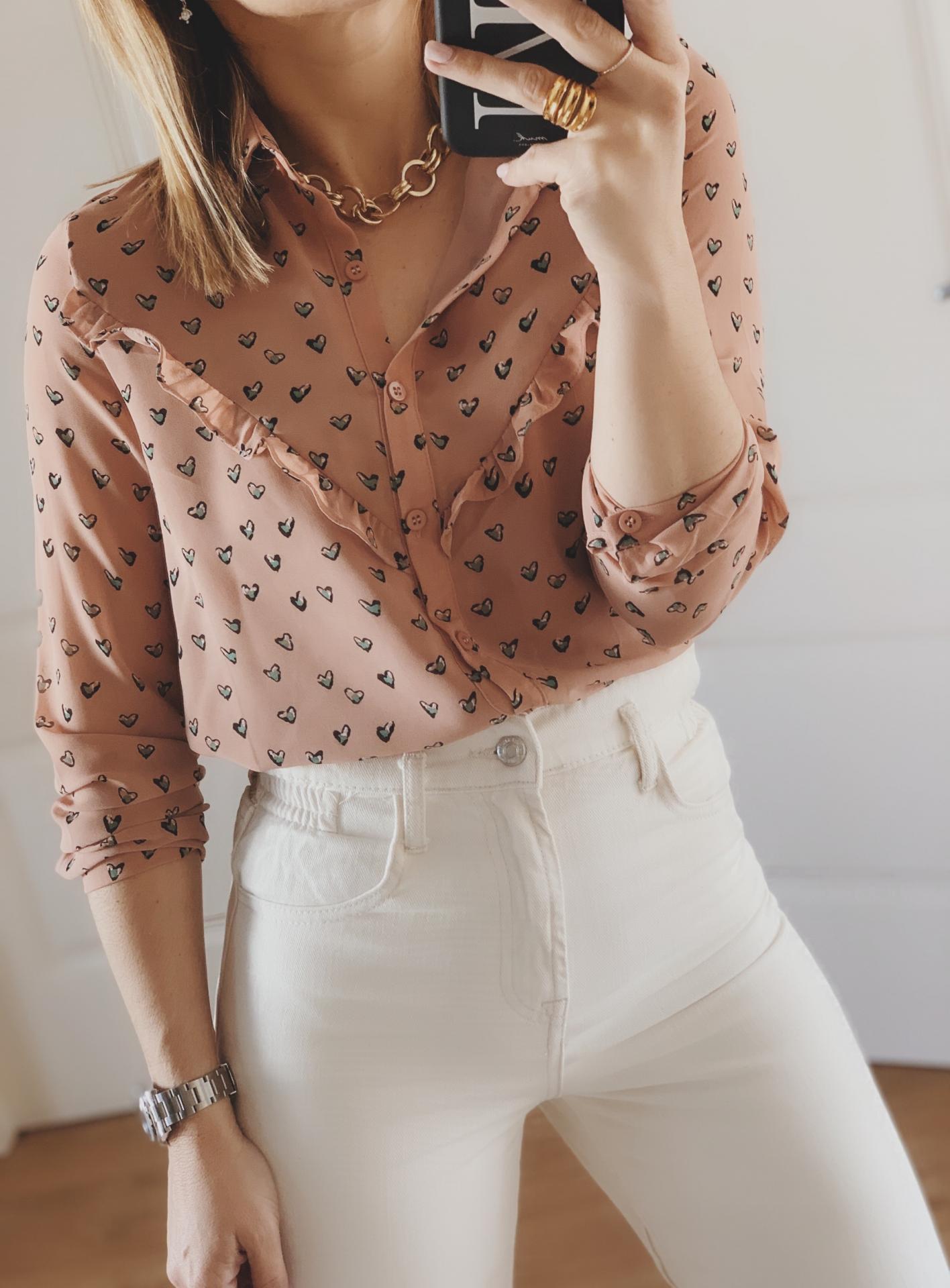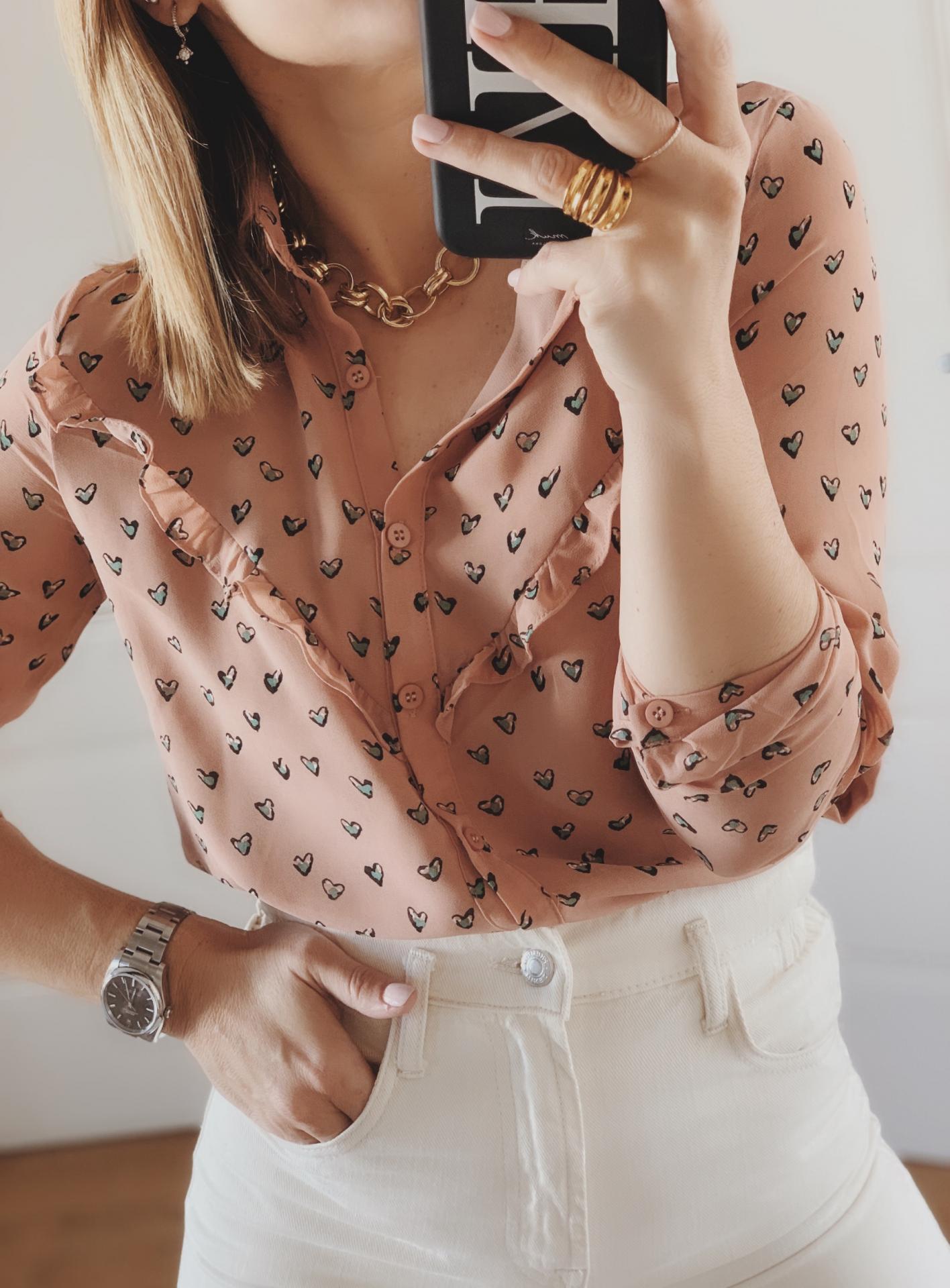 Nueva blusita de gasa en color maquillaje y detalle de corazones en el tejido.