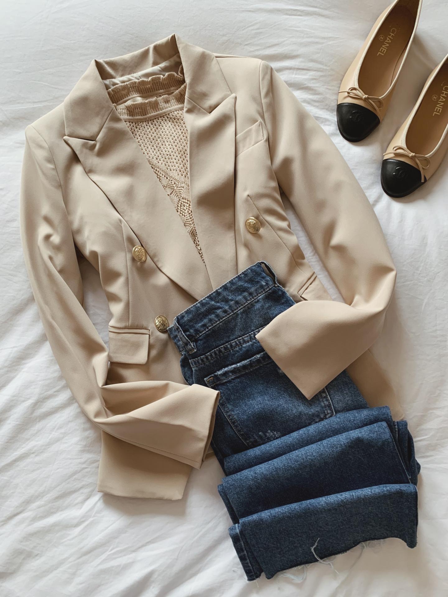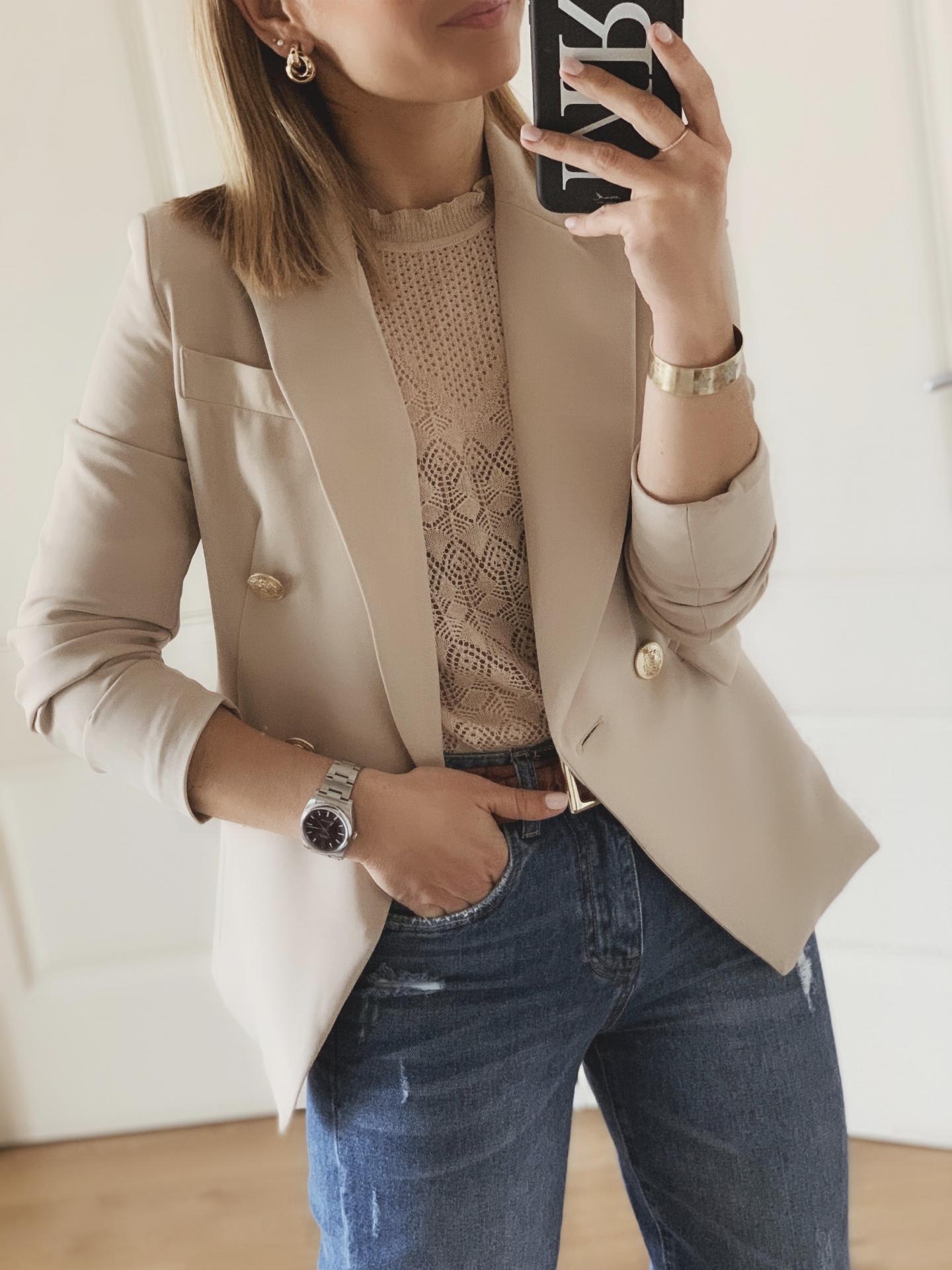 Nueva Blazer con un tejido súper elegante y un corte súper femenino.