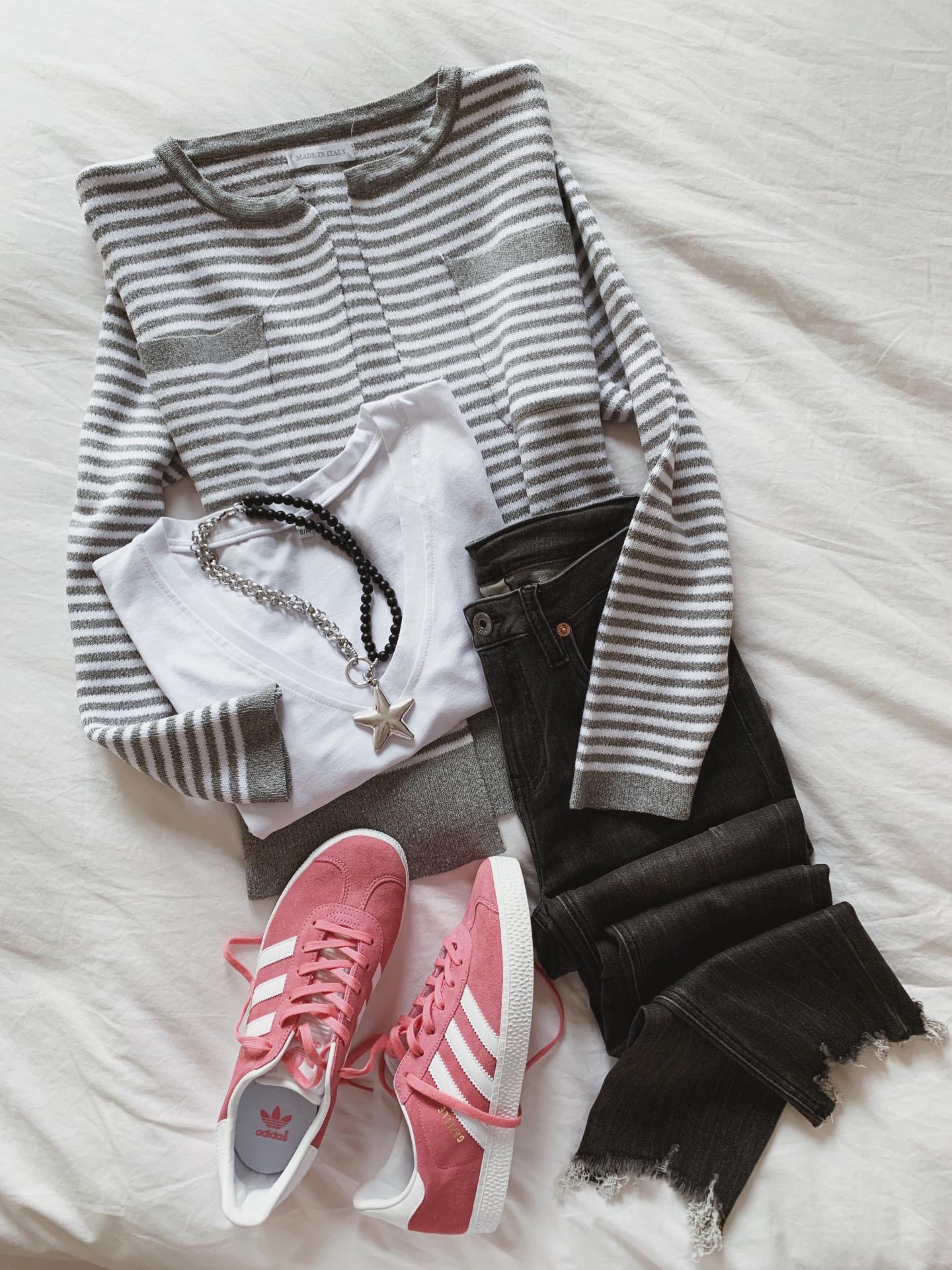 Nueva Chaqueta de punto en azul marino y blanco y de corte cuadrado.