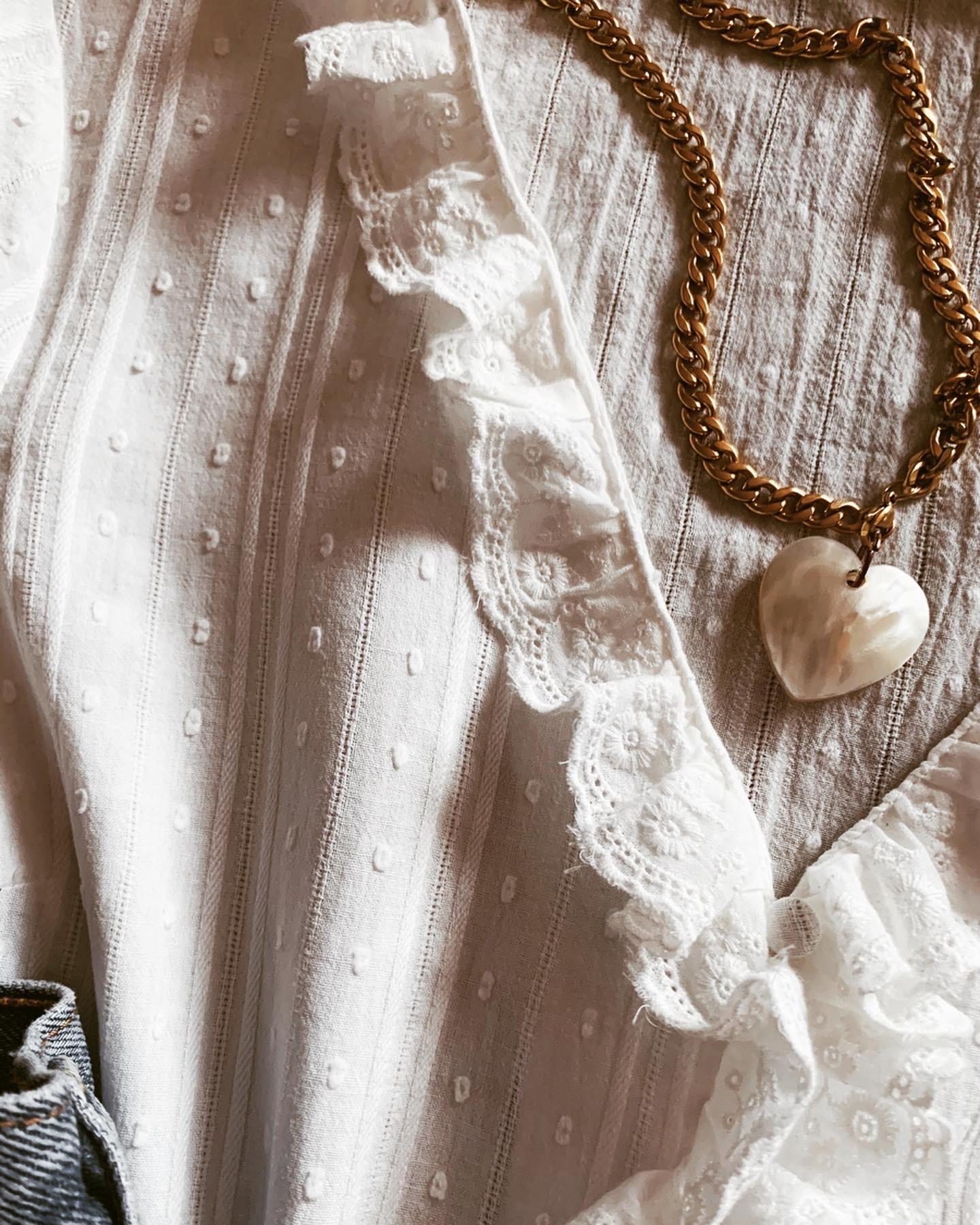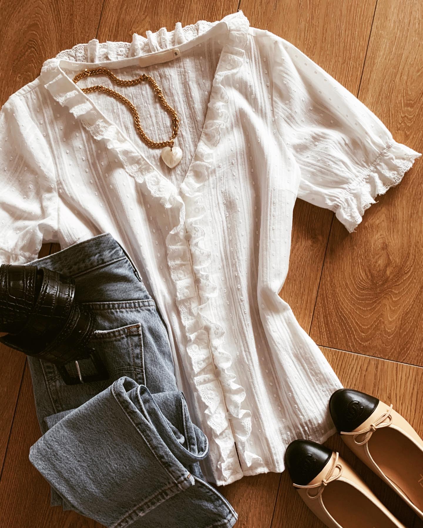 Nueva blusa toda bordada y Manga abullonada con escote de pico y detalle de volantes.