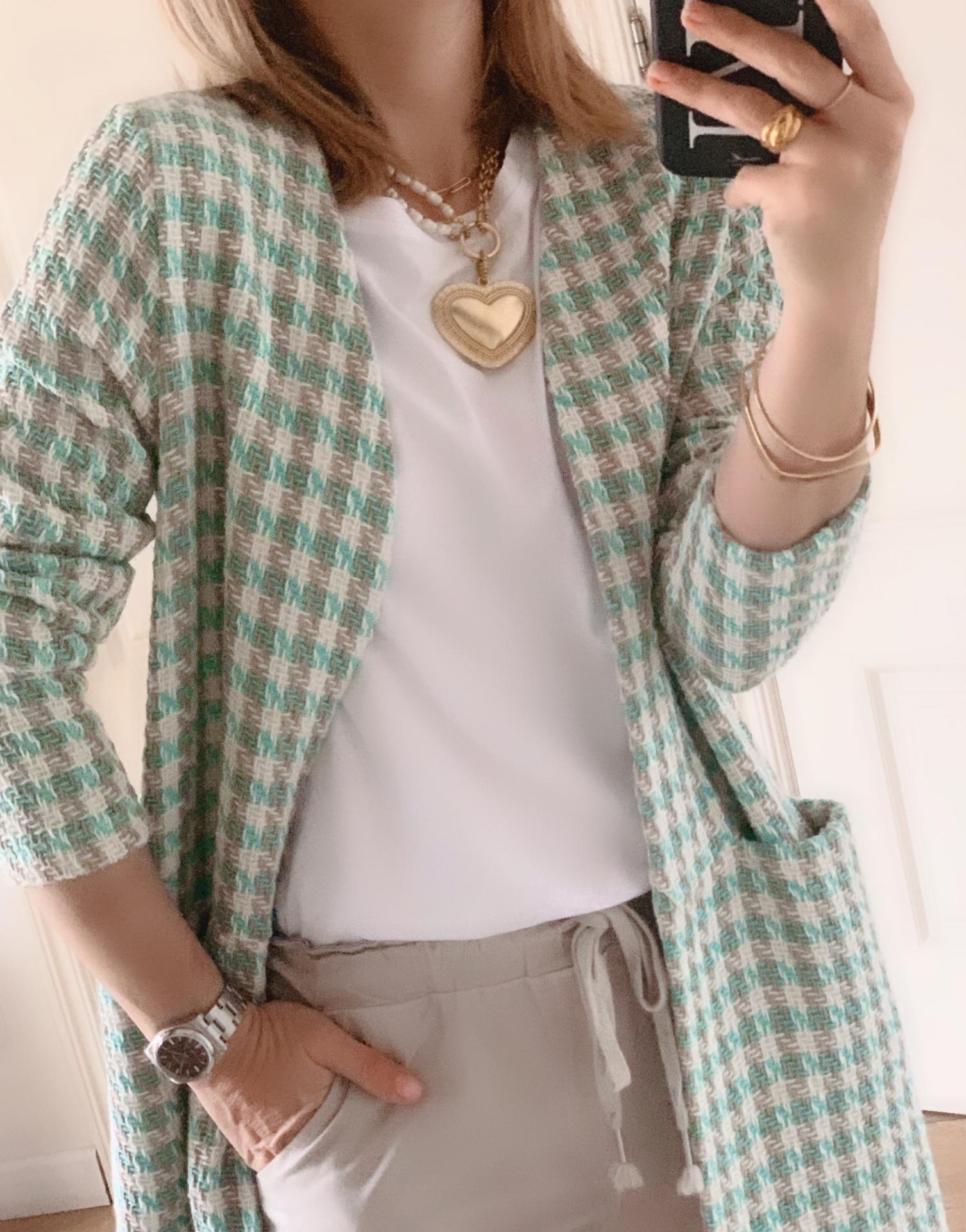 Nueva Levita en tweed con bolsillos en la parte de delante y sin forro para combinar con una camiseta o un lencero.