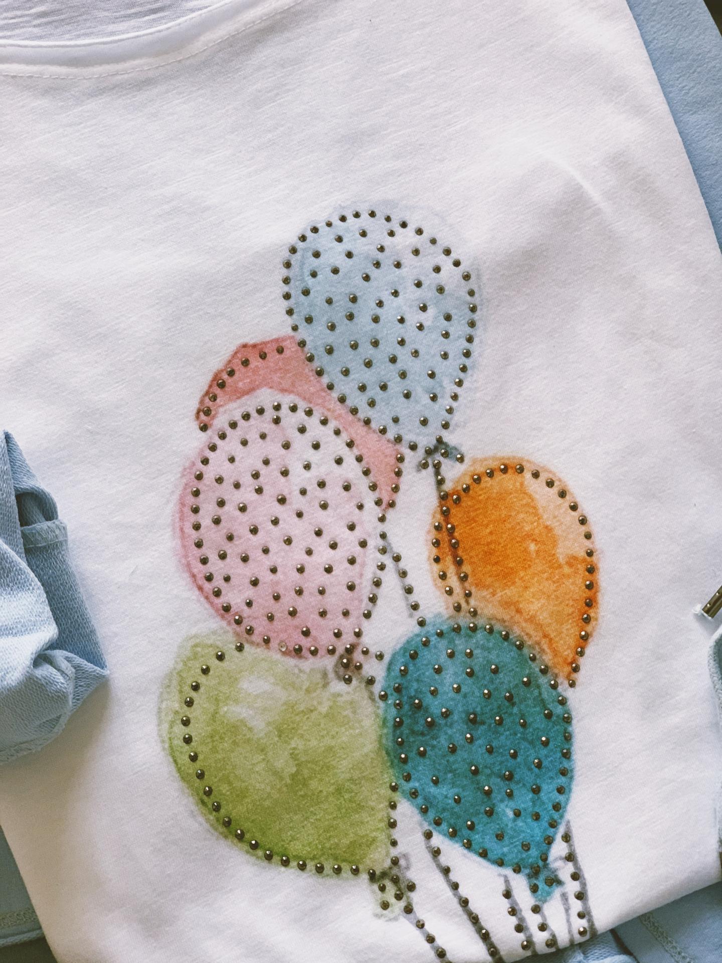 Nueva camiseta de manga corta ligeramente acampanada con dibujo impreso de calaveras y brillantes.