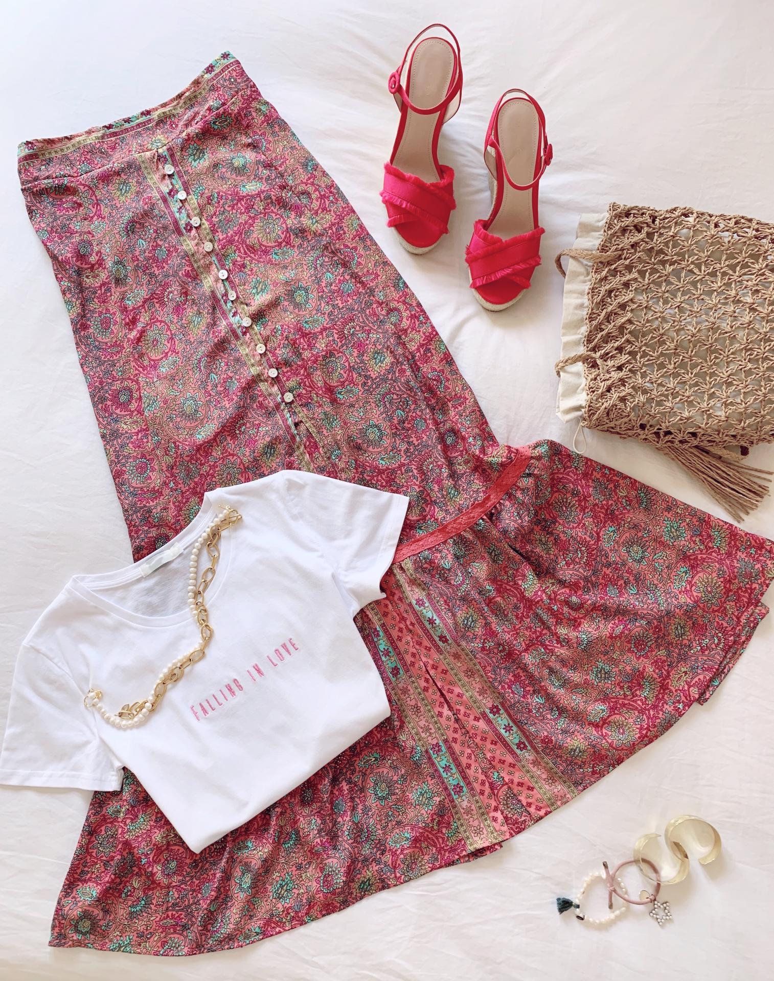 Nueva falda en seda con pala lisa en la cintura y goma en la parte de atrás.