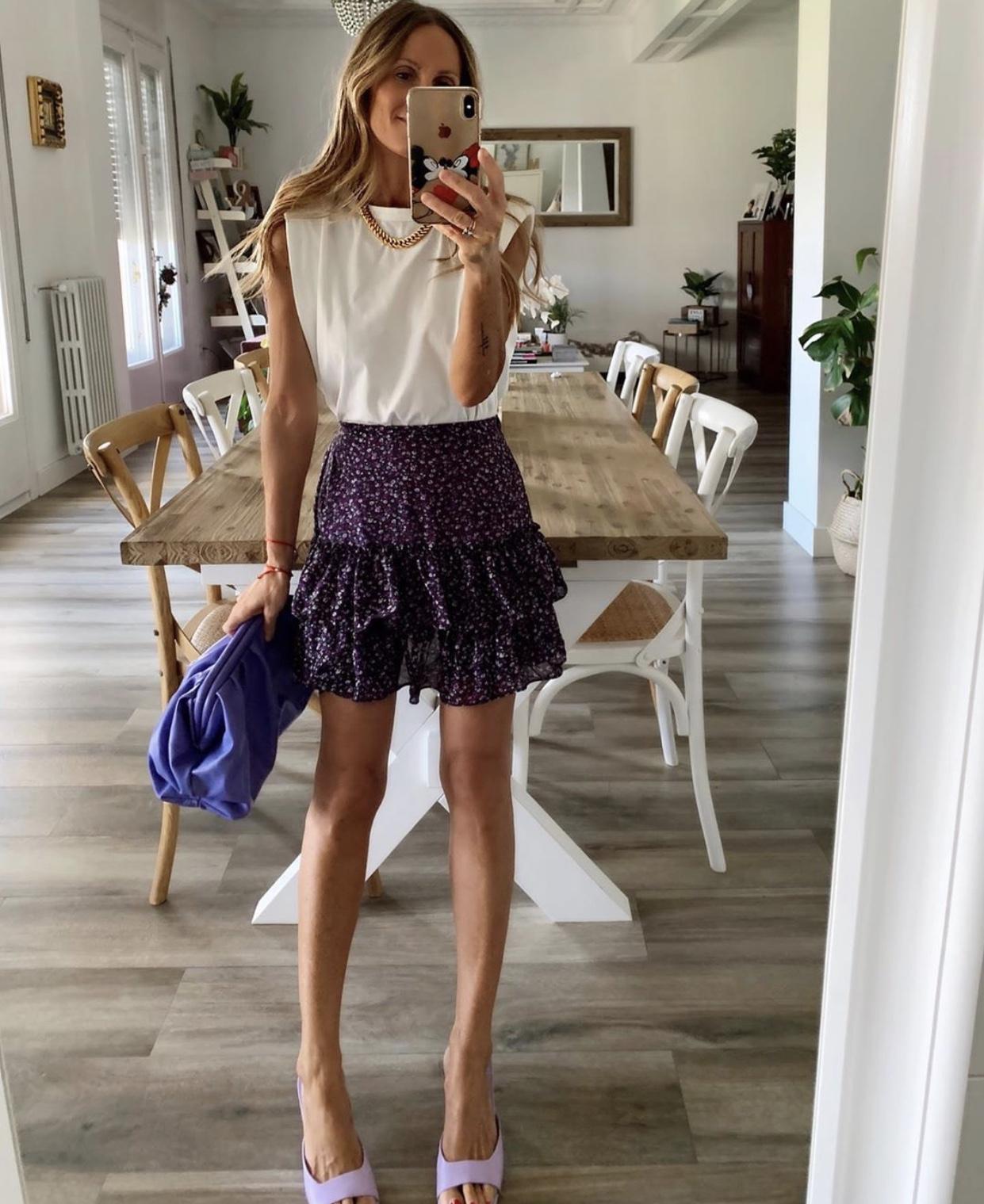 Nueva Falda de gasa con forro y dos volantes.