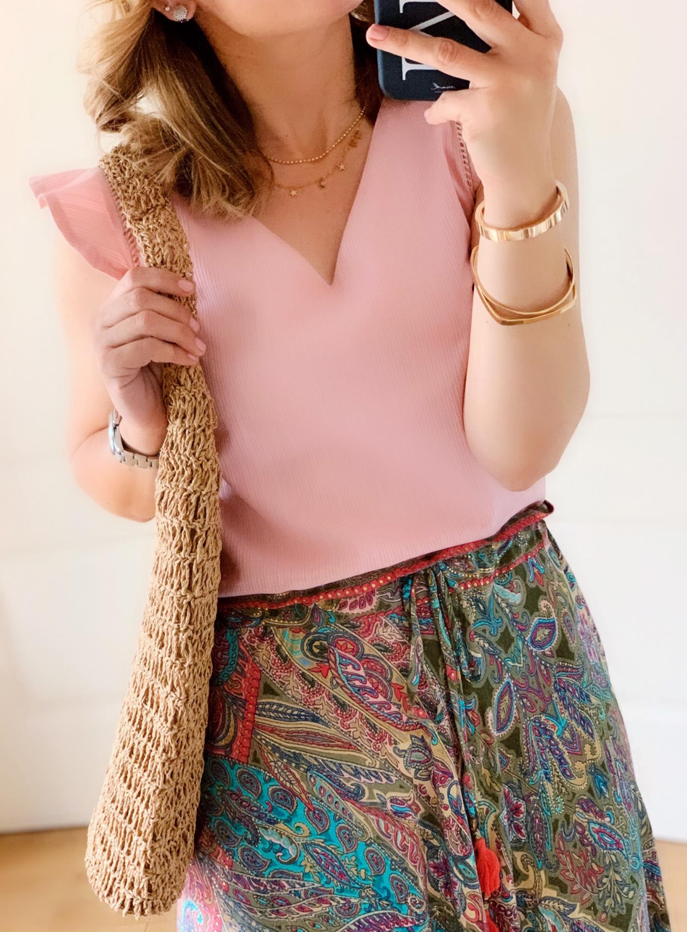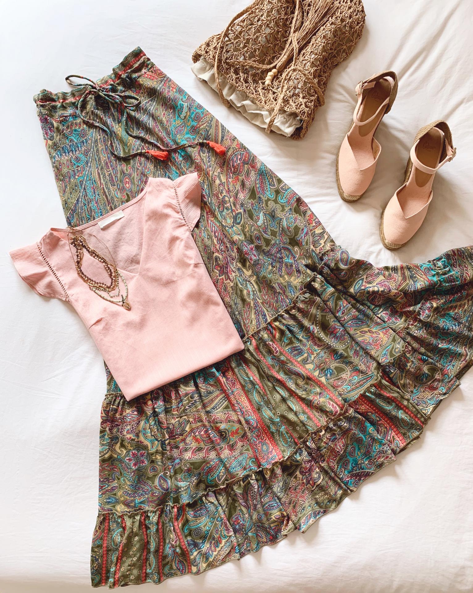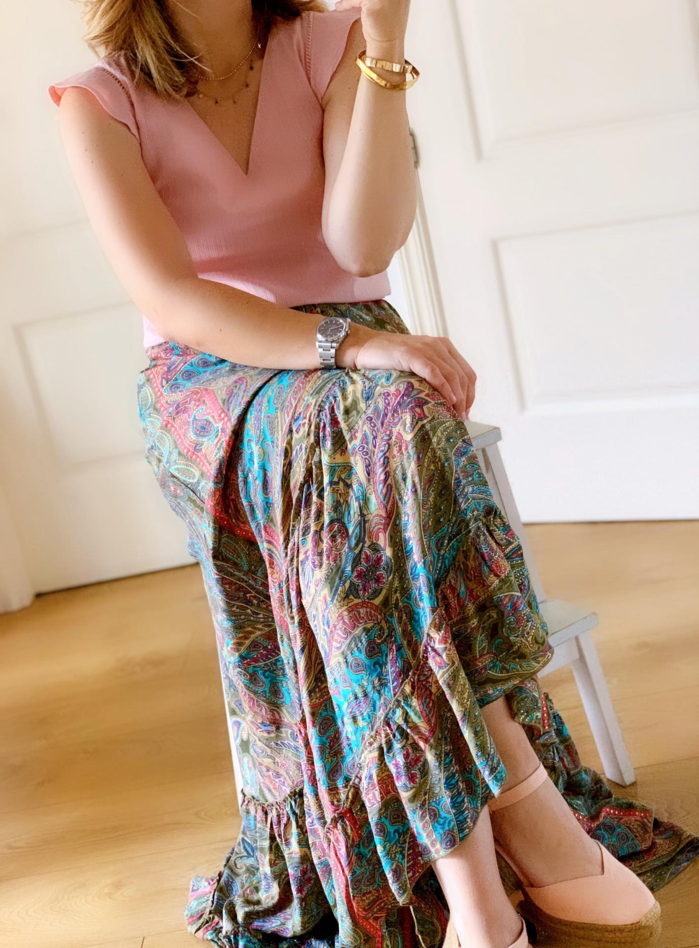 Nueva falda en seda con pala lisa en la cintura y goma en la parte de atrás.
