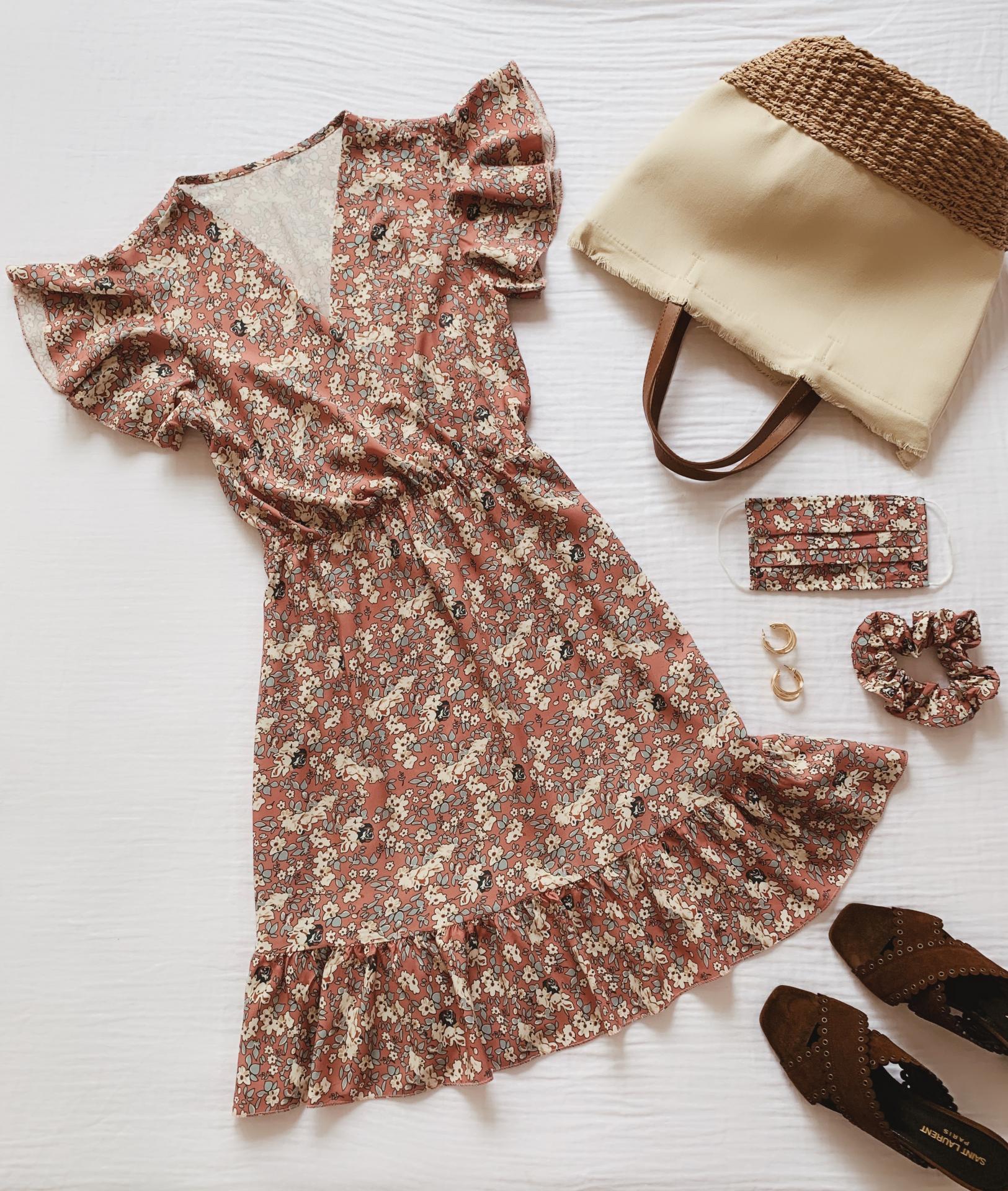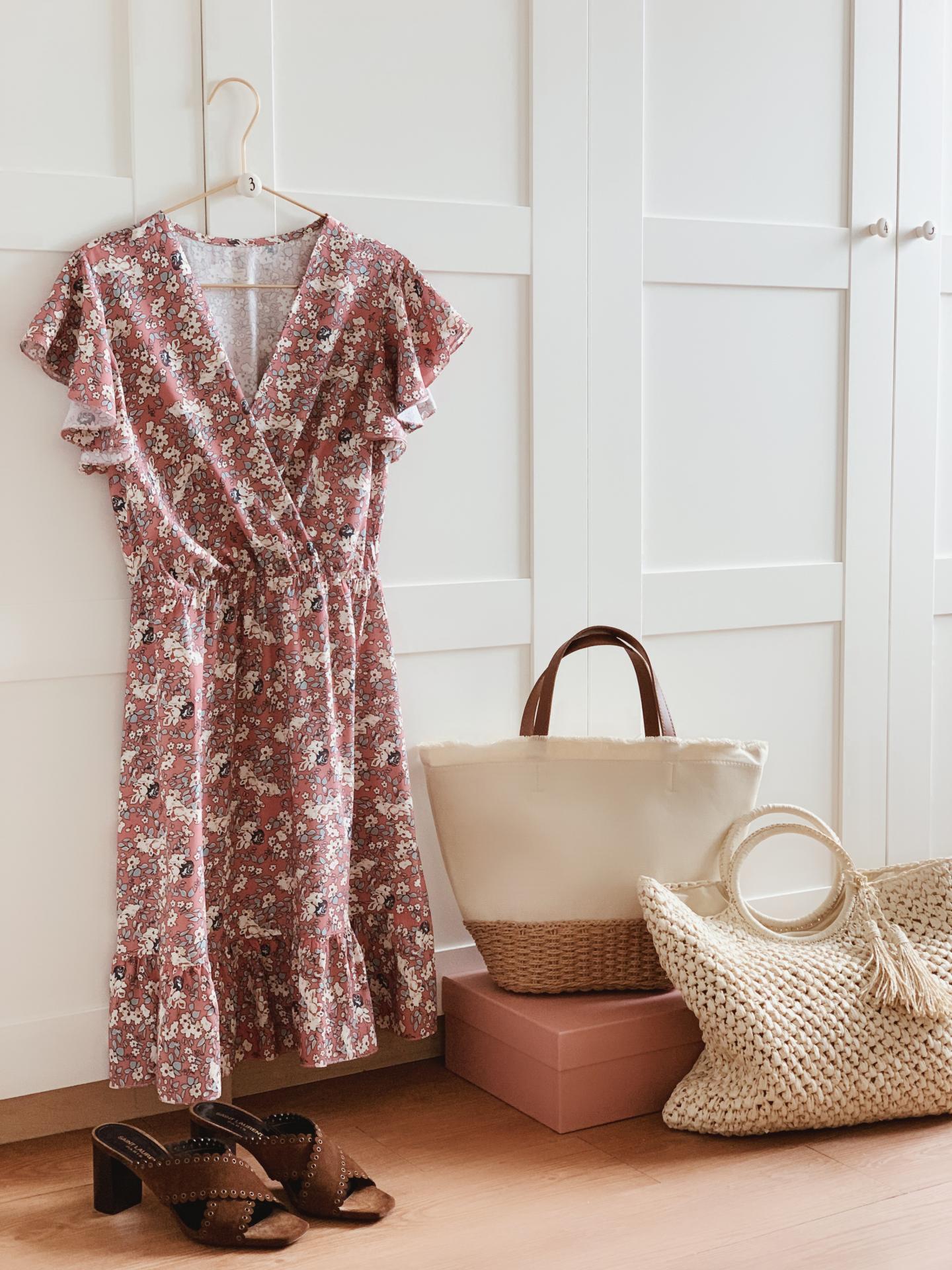 Escote cruzado con goma en la cintura y detalle de volante en las mangas en la parte de abajo.