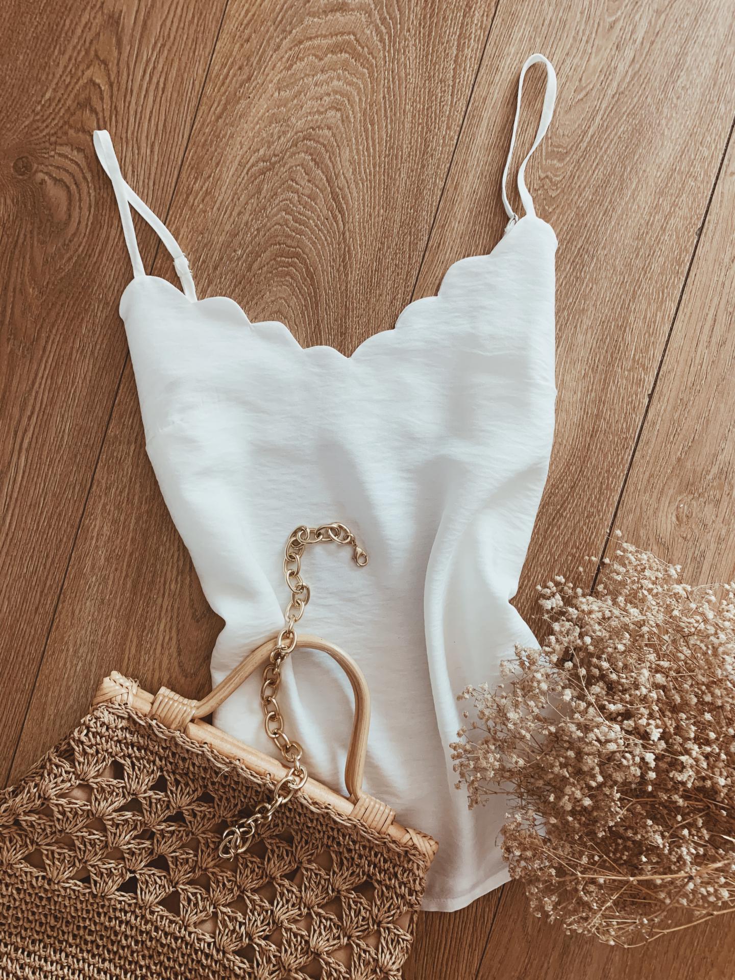 Nuevo top con ondas en el escote y tirante regulable.