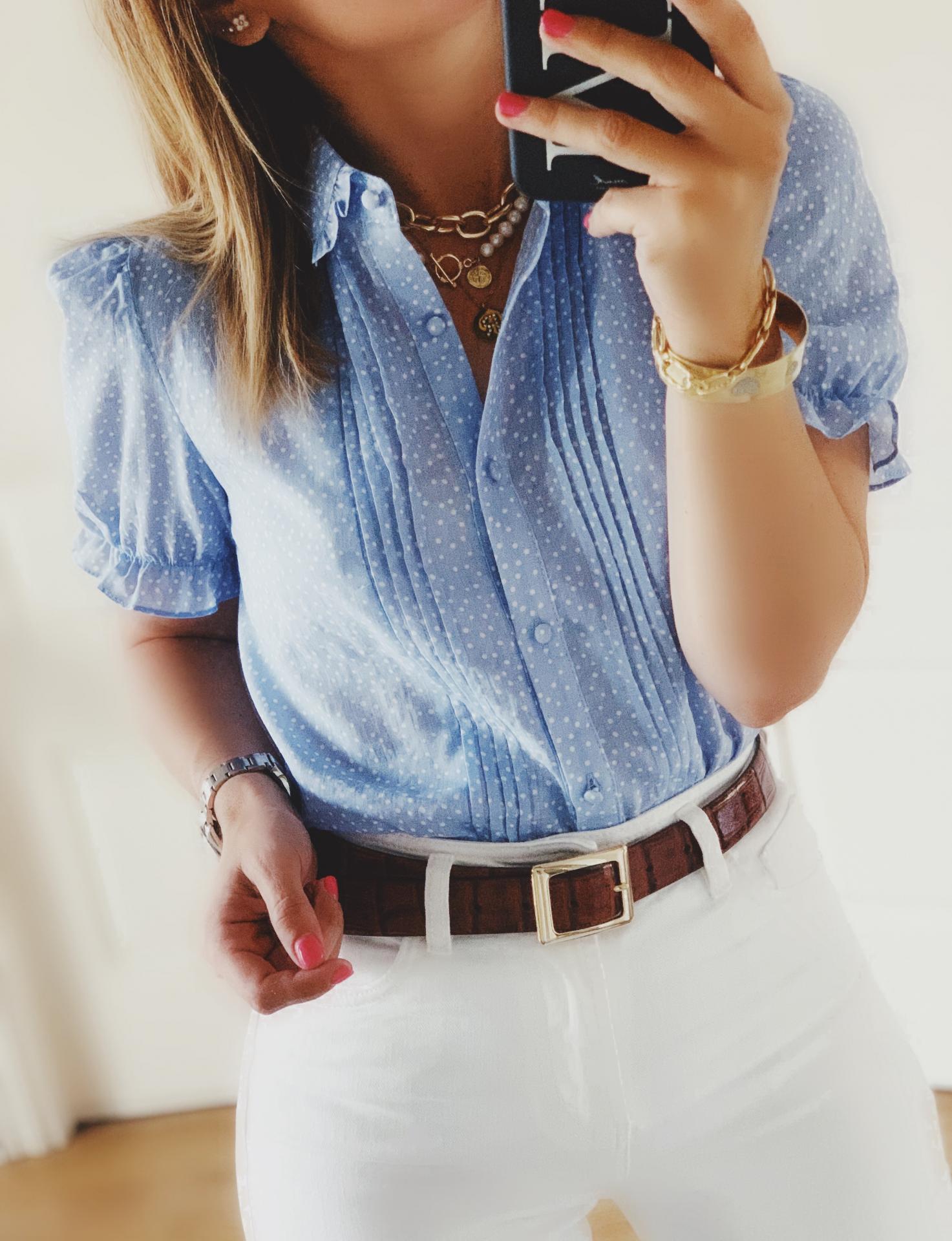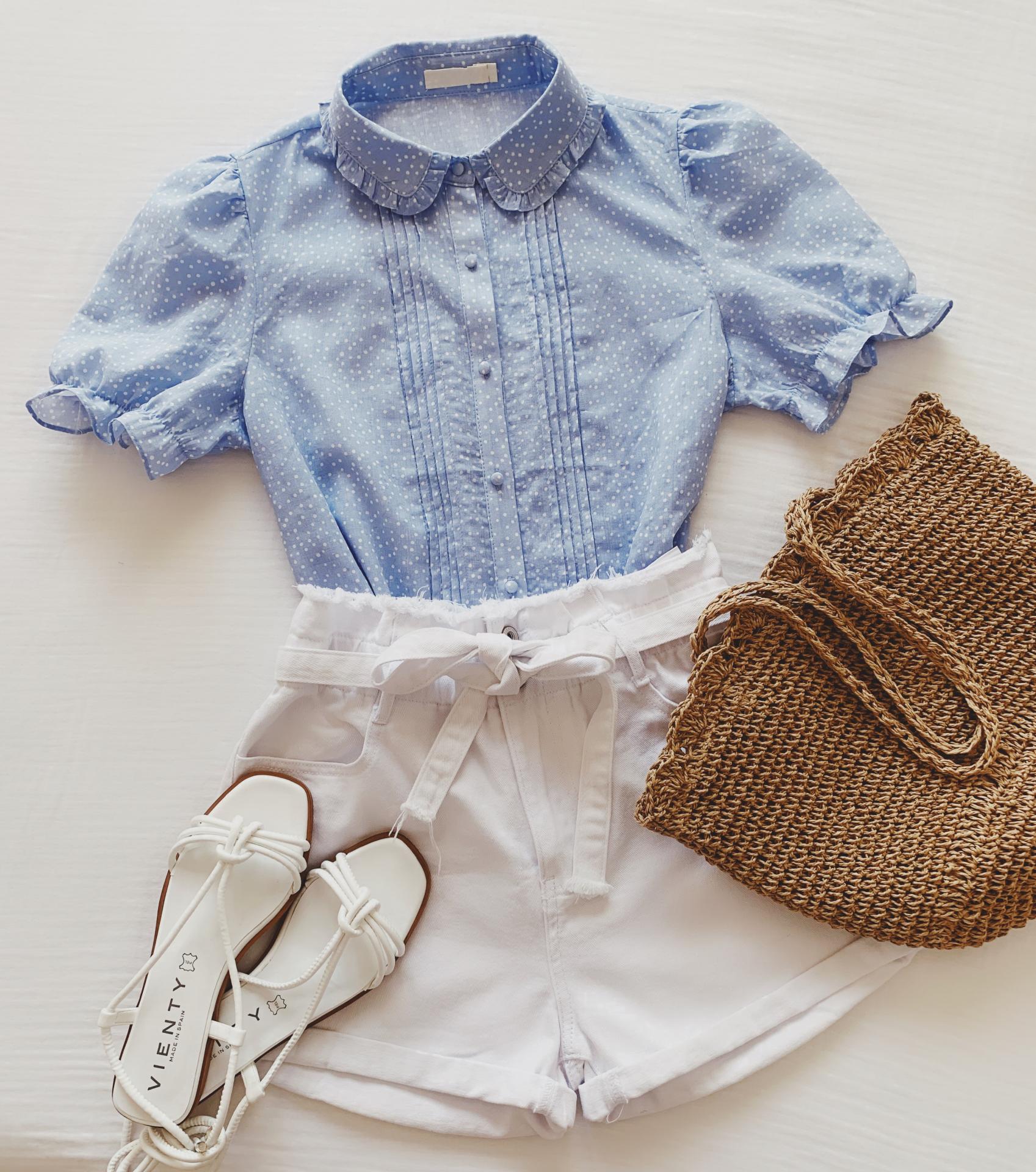 Nueva blusita en azul cielo con cuello bebé y detalle de volantitos.