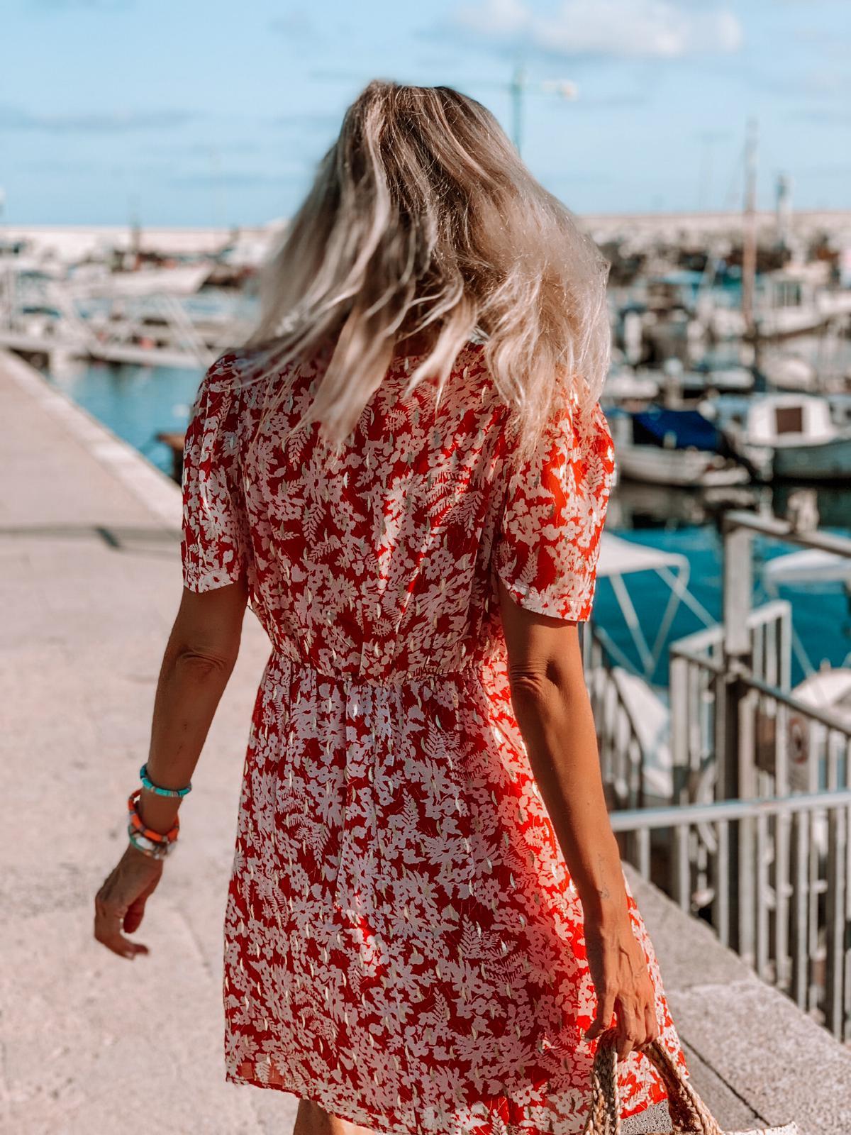 Nuevo vestido en gasa con forro con escote cruzado y goma en la cintura.
