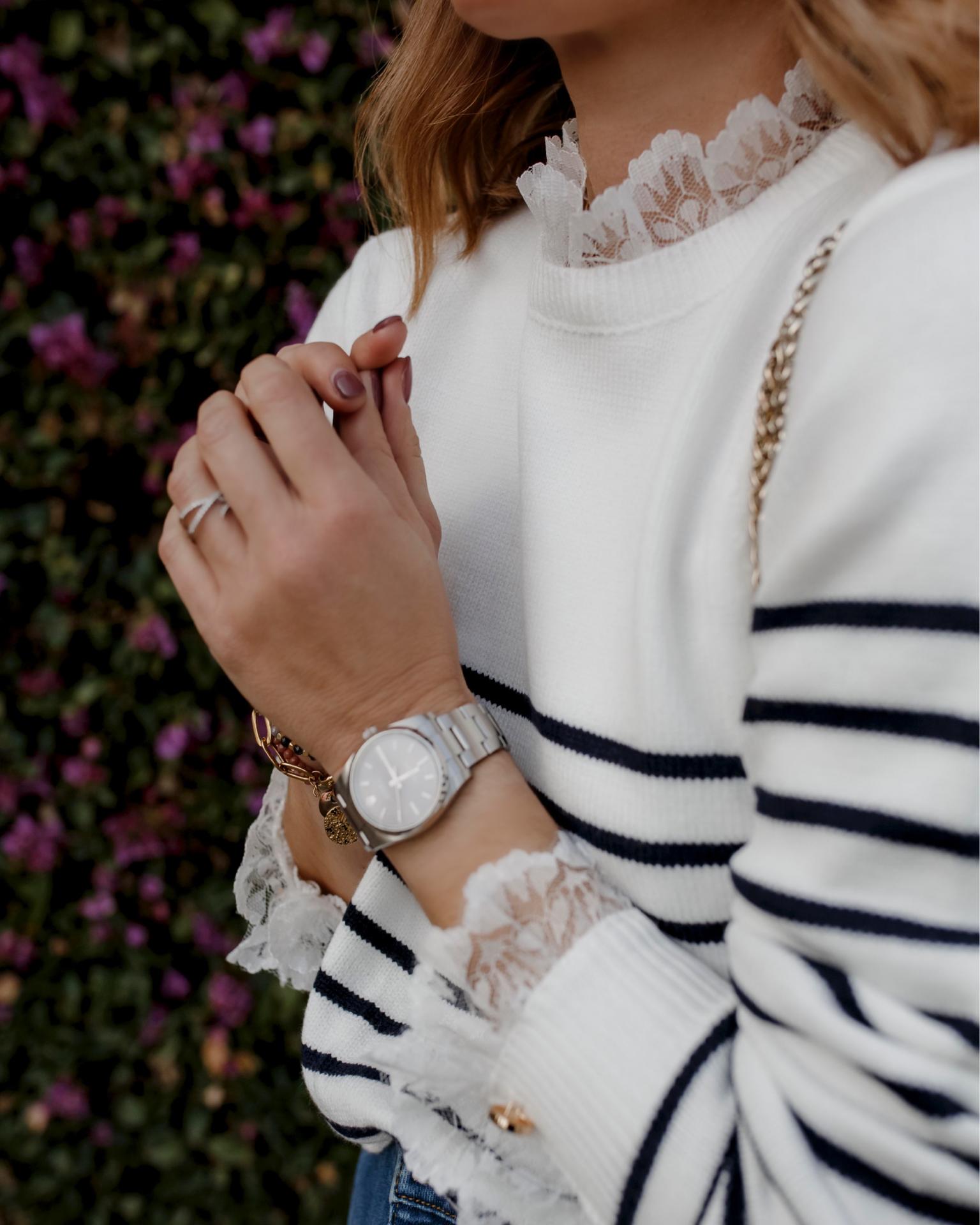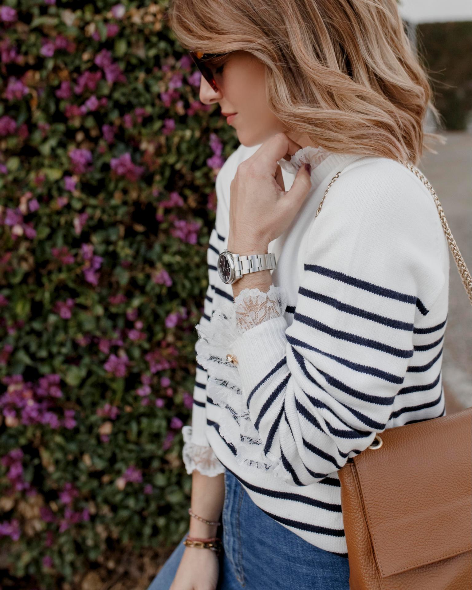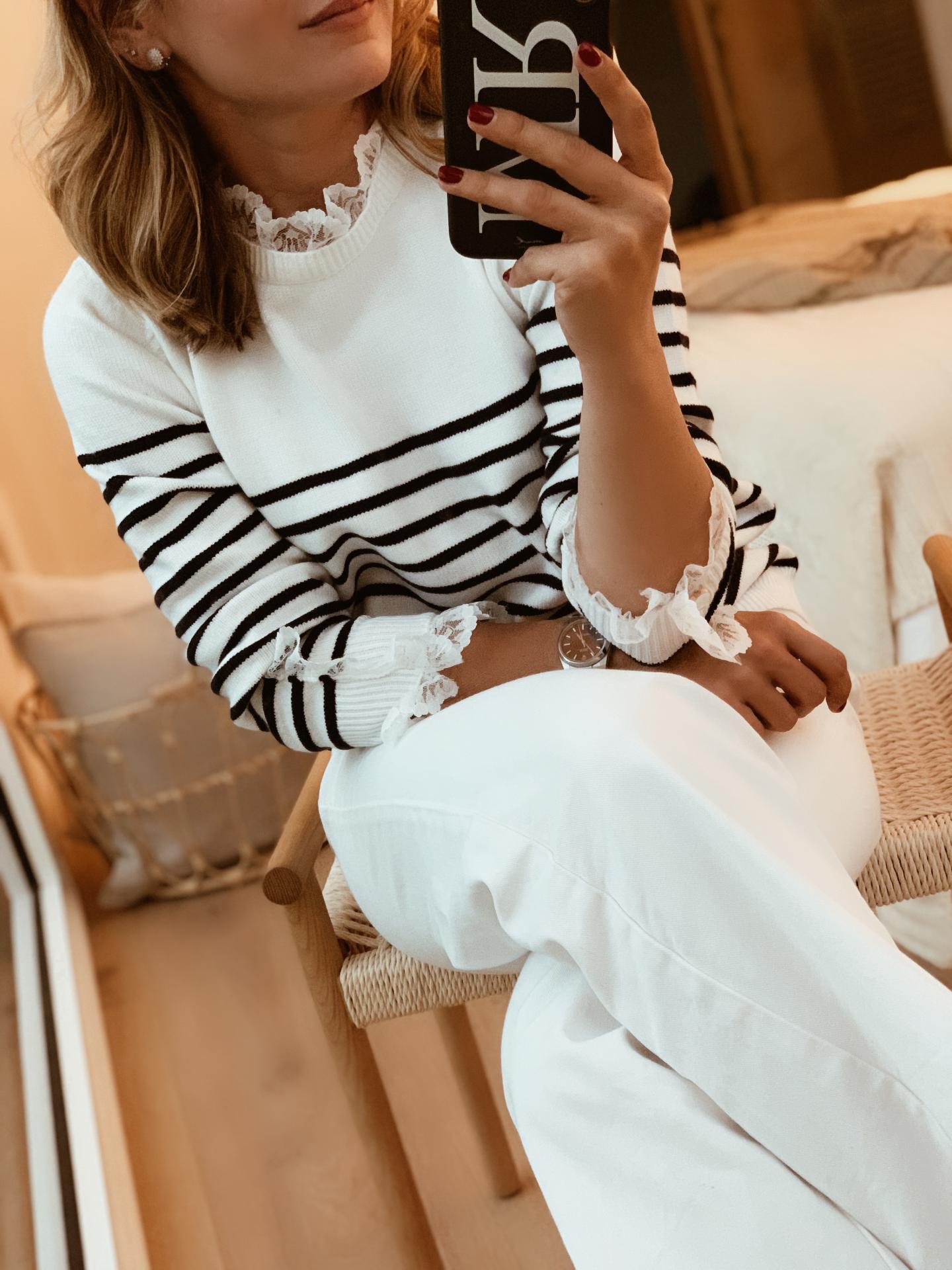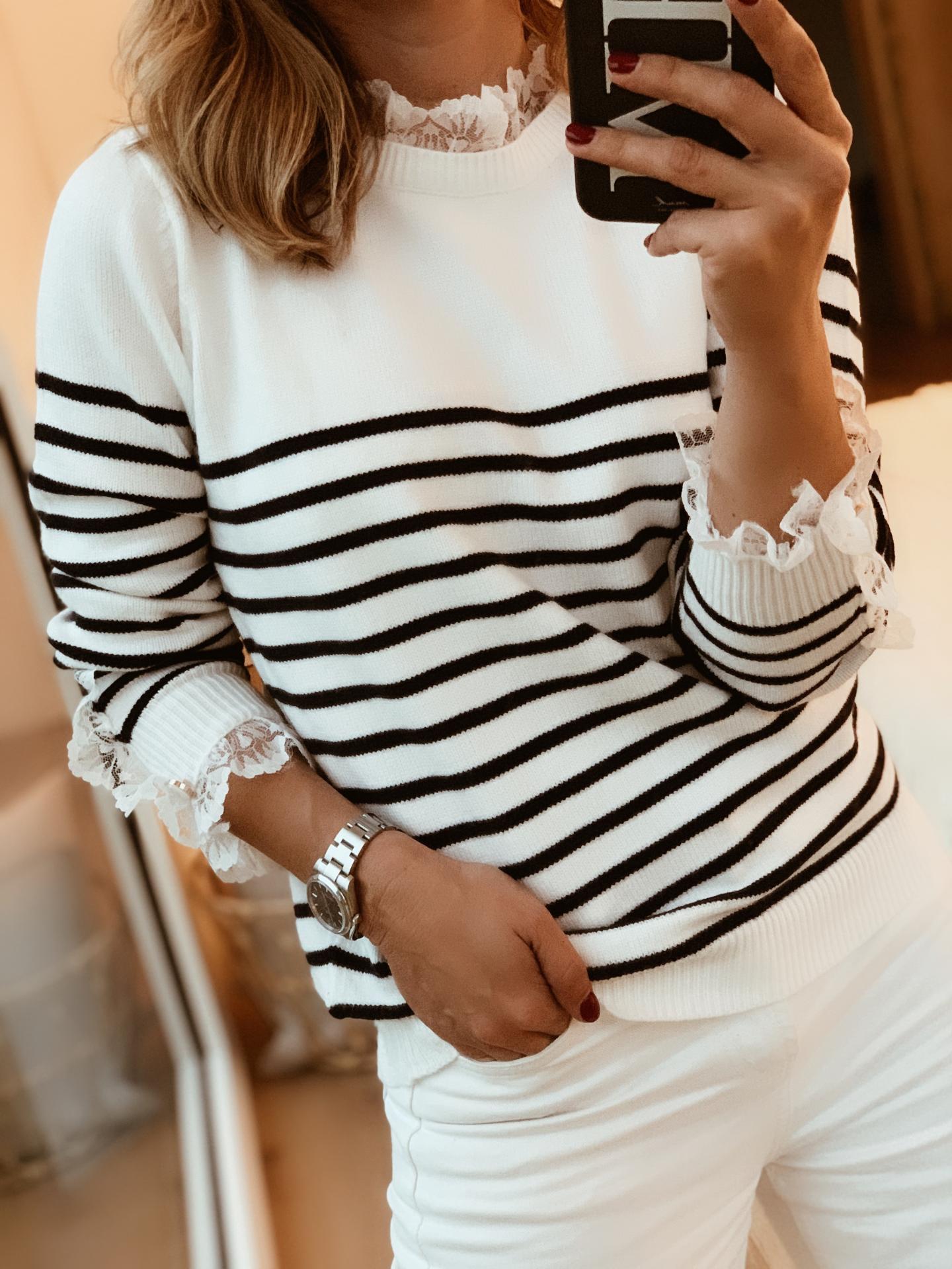 Nuevo Jersey Navy a rayas en azul marino y blanco roto.