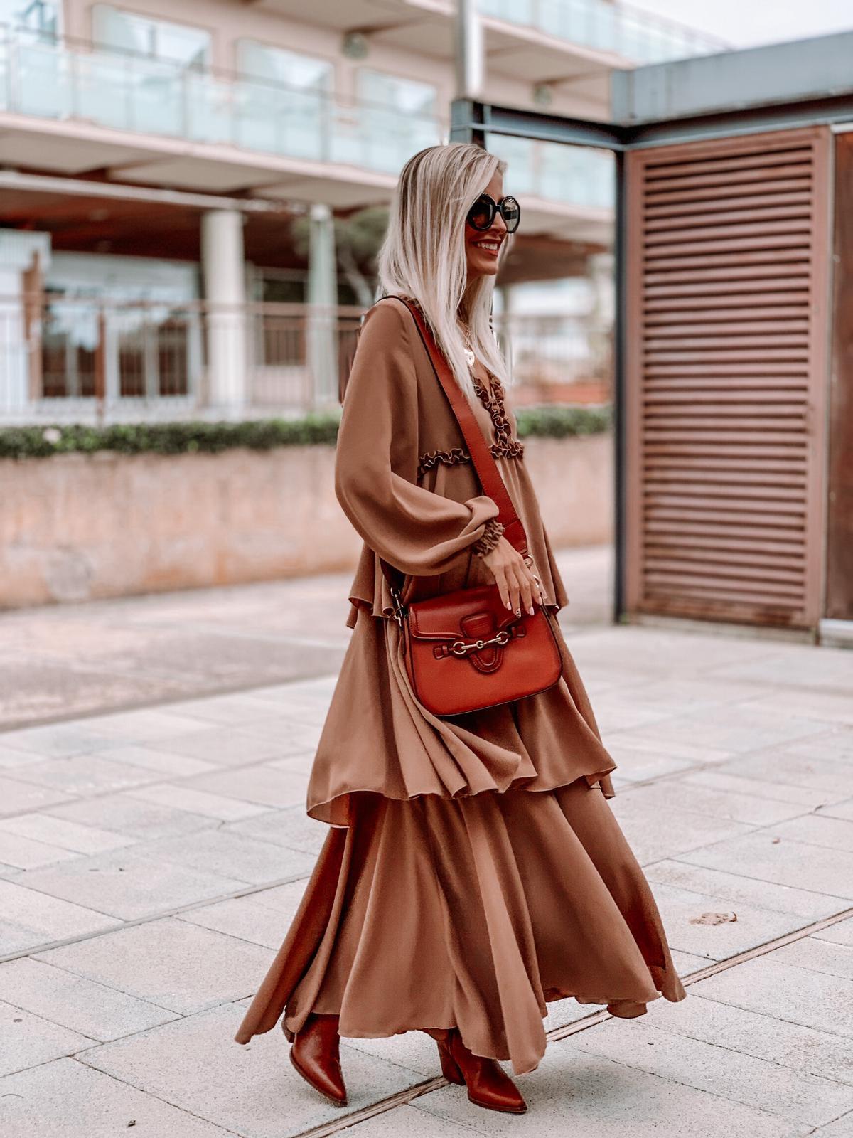 Bonito maxi vestido con detalle de volantes.