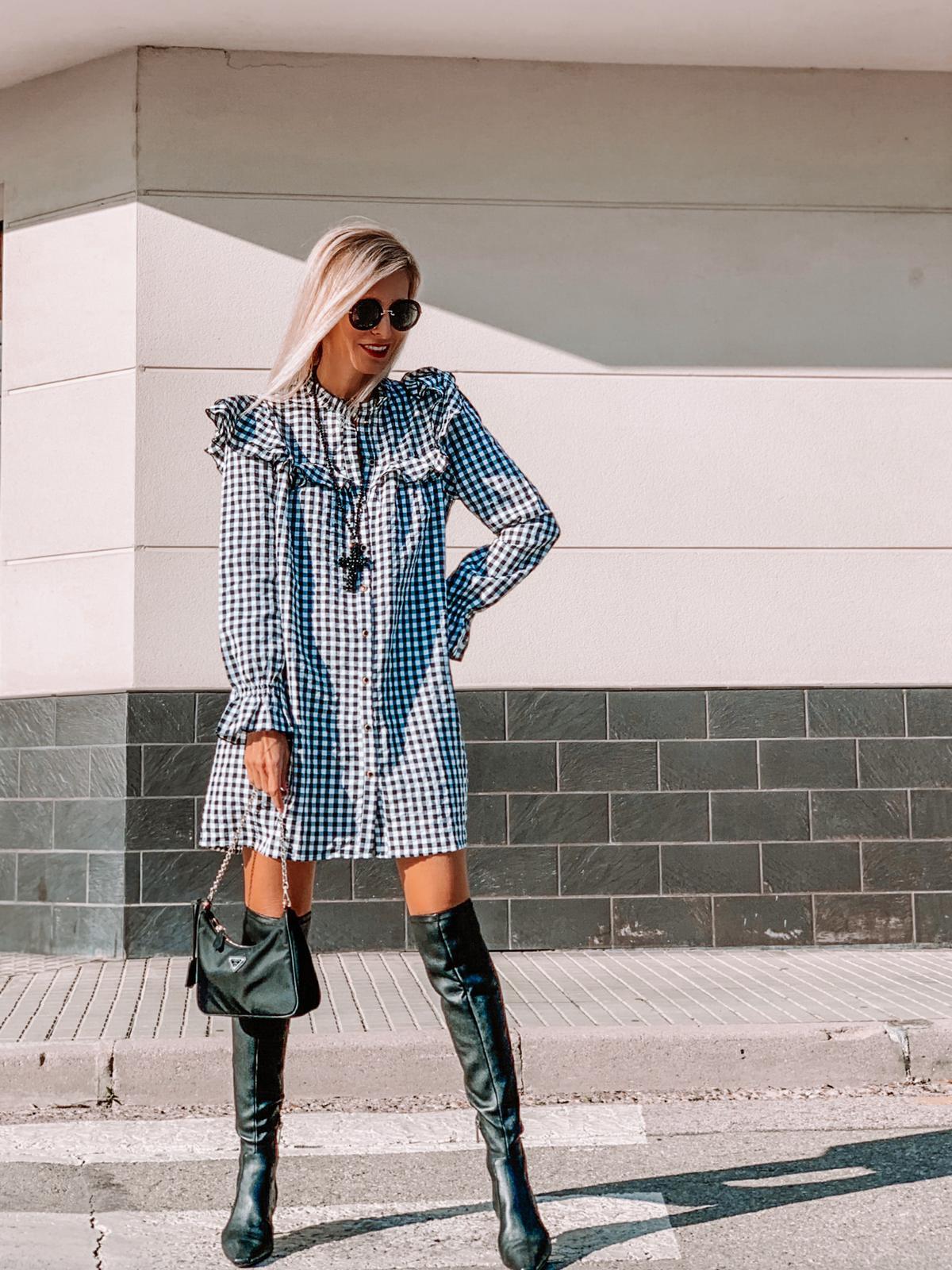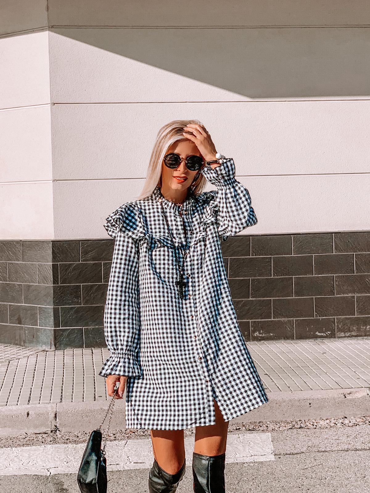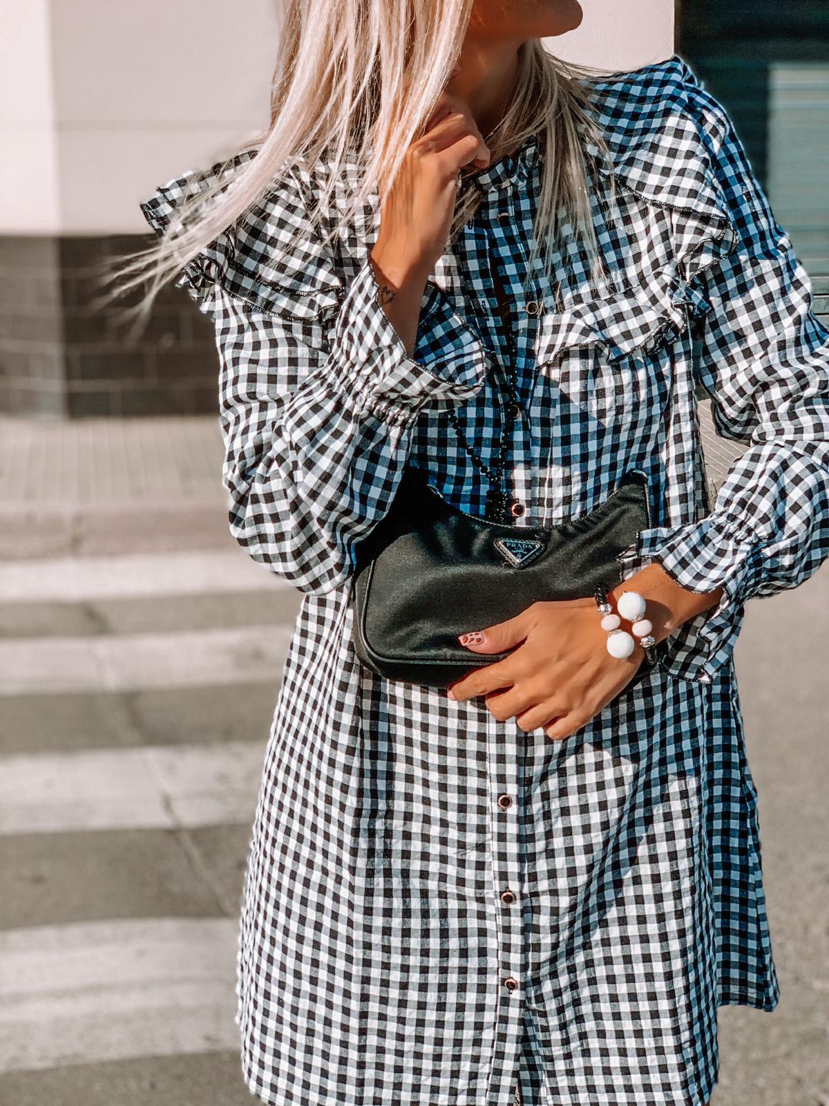 Nuevo vestido camisero con estampado vichy con volantes en cuello y mangas.