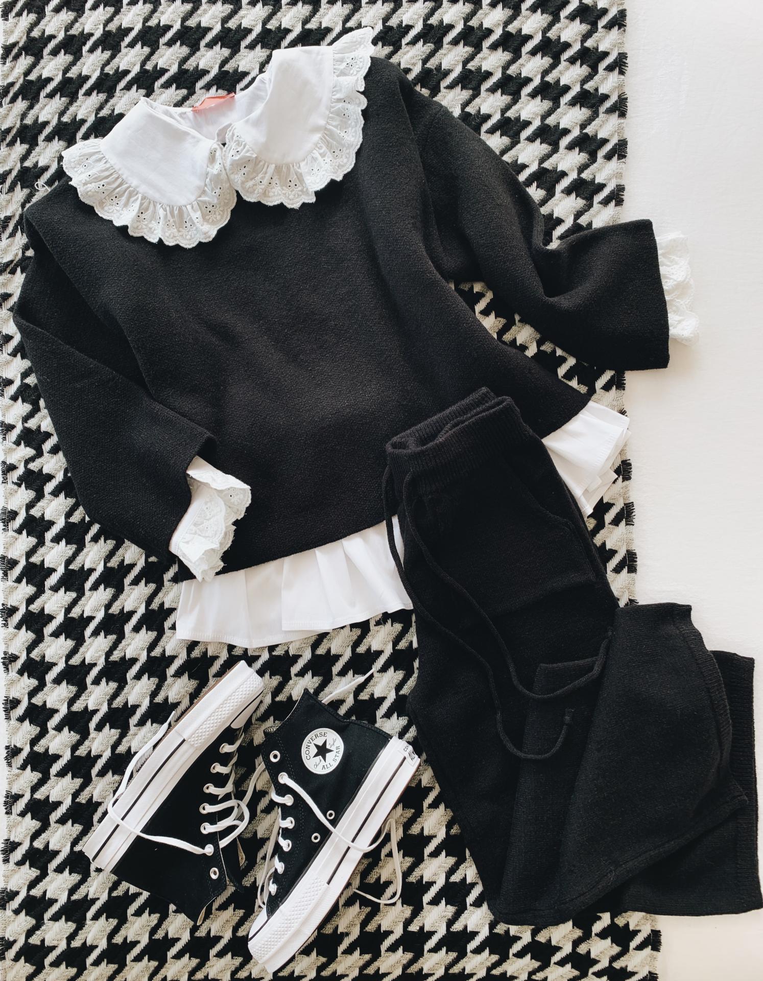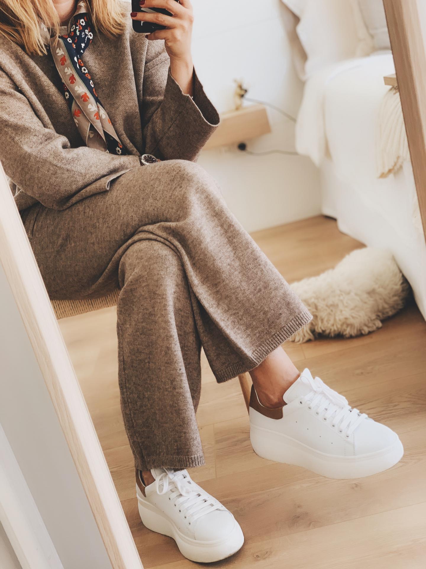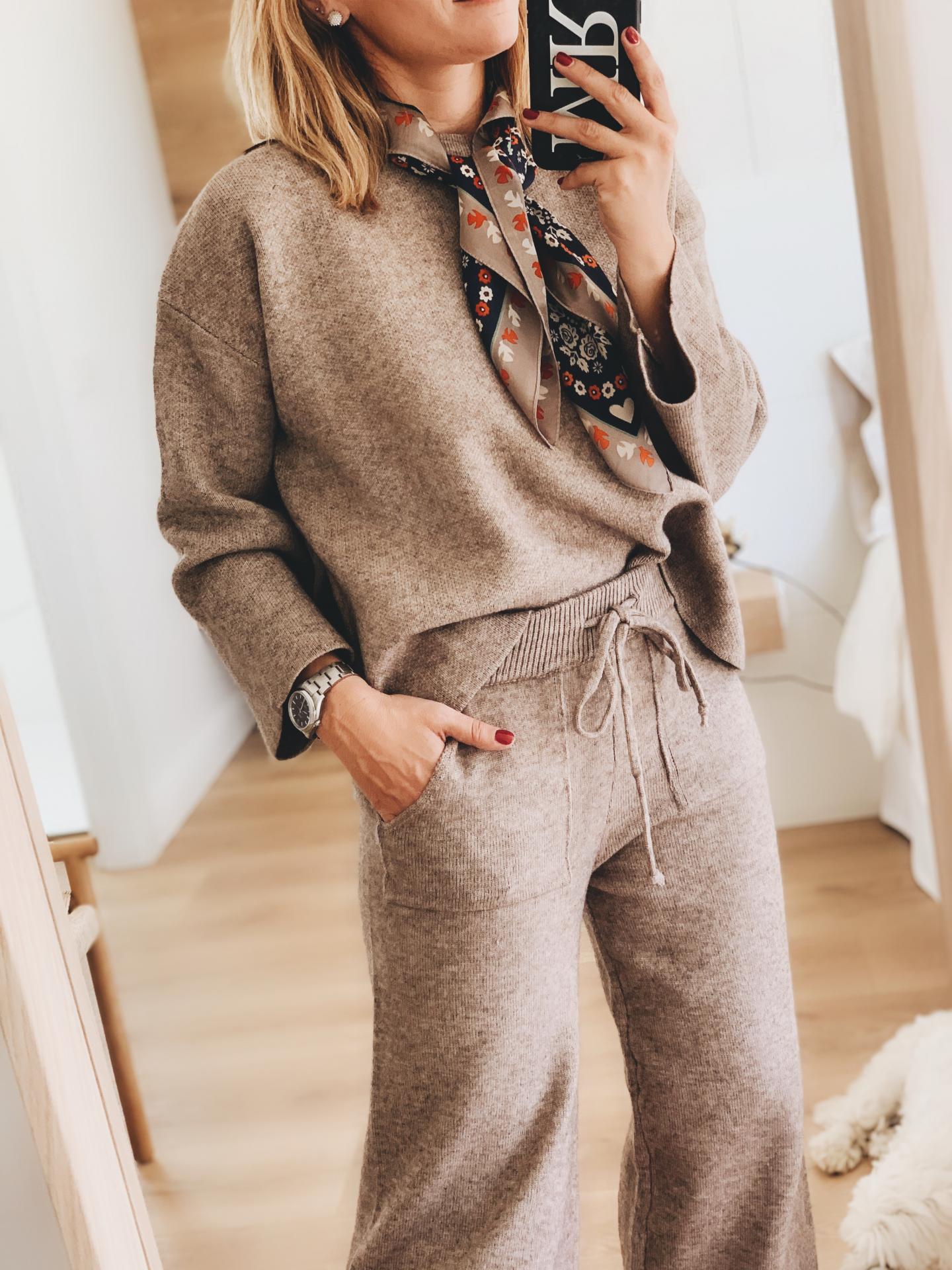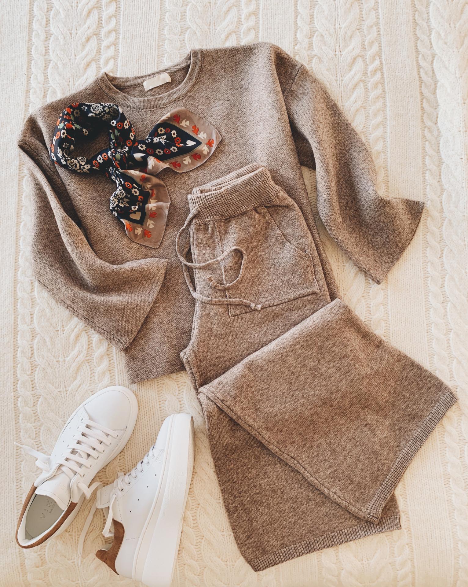 Nuevo conjunto de punto. Jersey de cuello redondo y manga ligeramente acampanada.