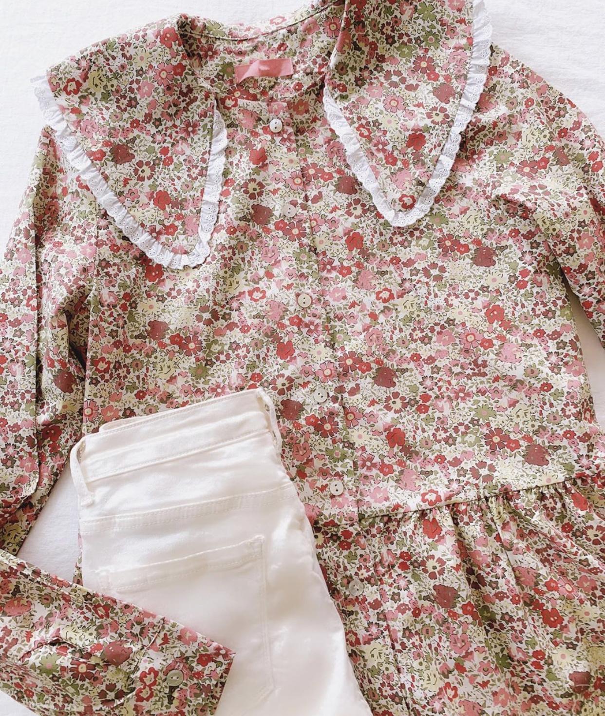 Nueva blusa con estampado floral y cuello bobo con puntillas.