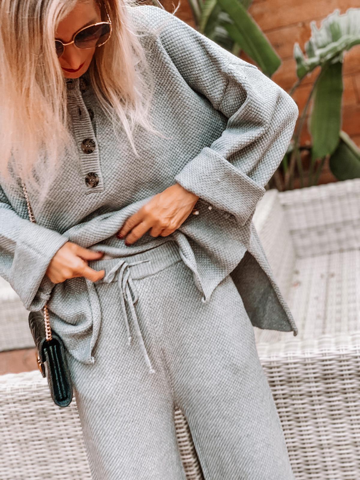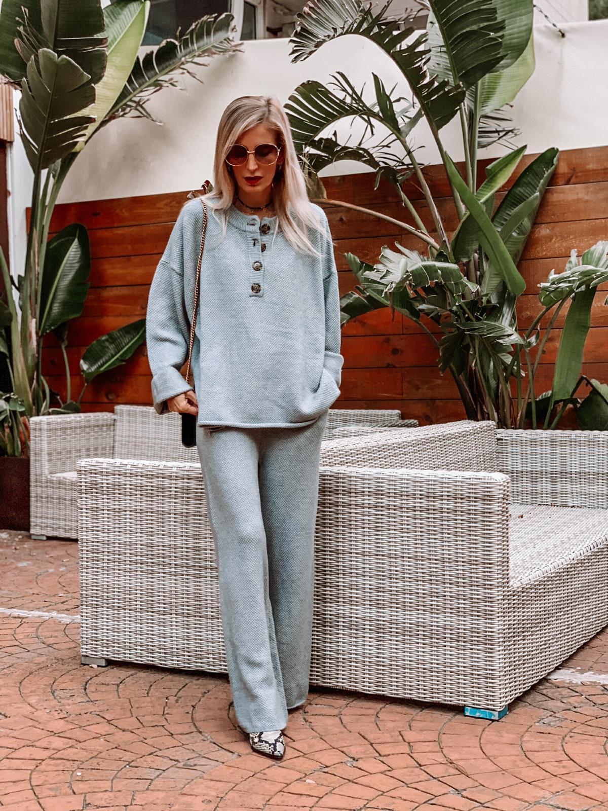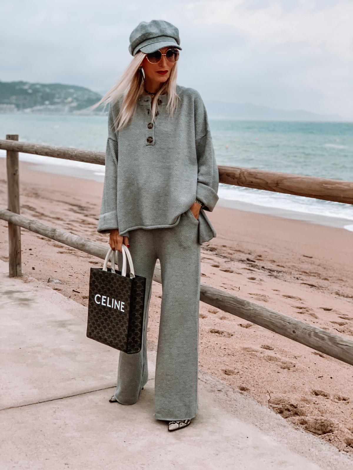 Pantalón a conjunto de cintura elástica corte acampanado.