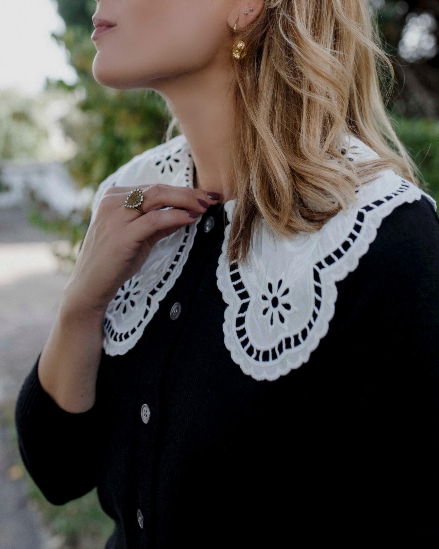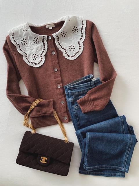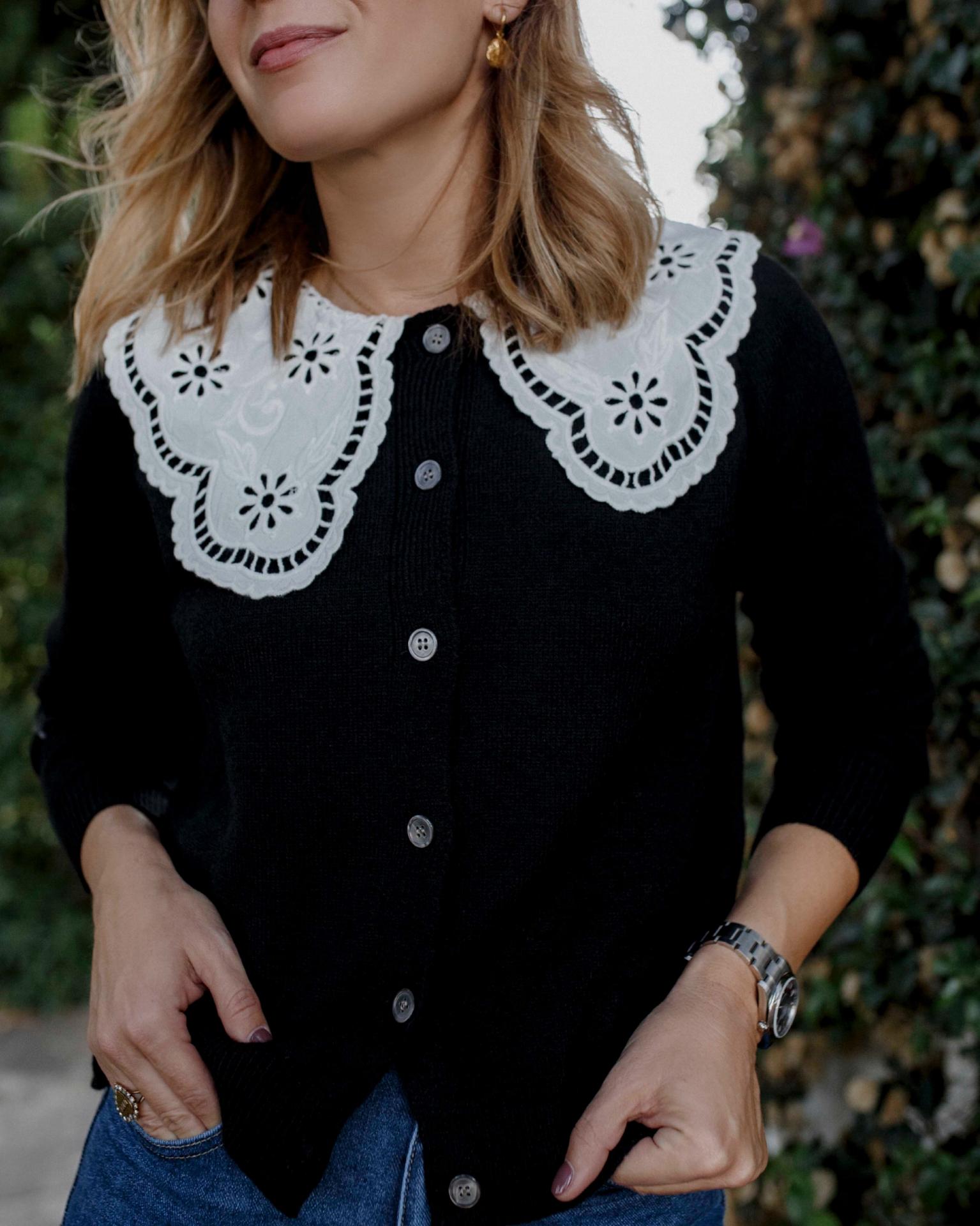 Chaquetita con botones frontales y cuello de voltanitos.