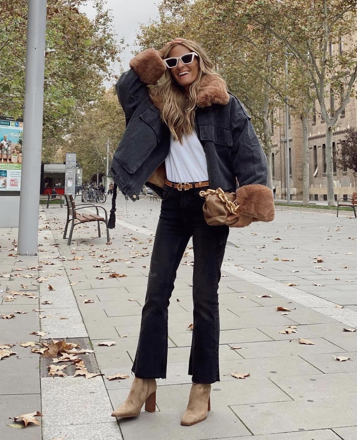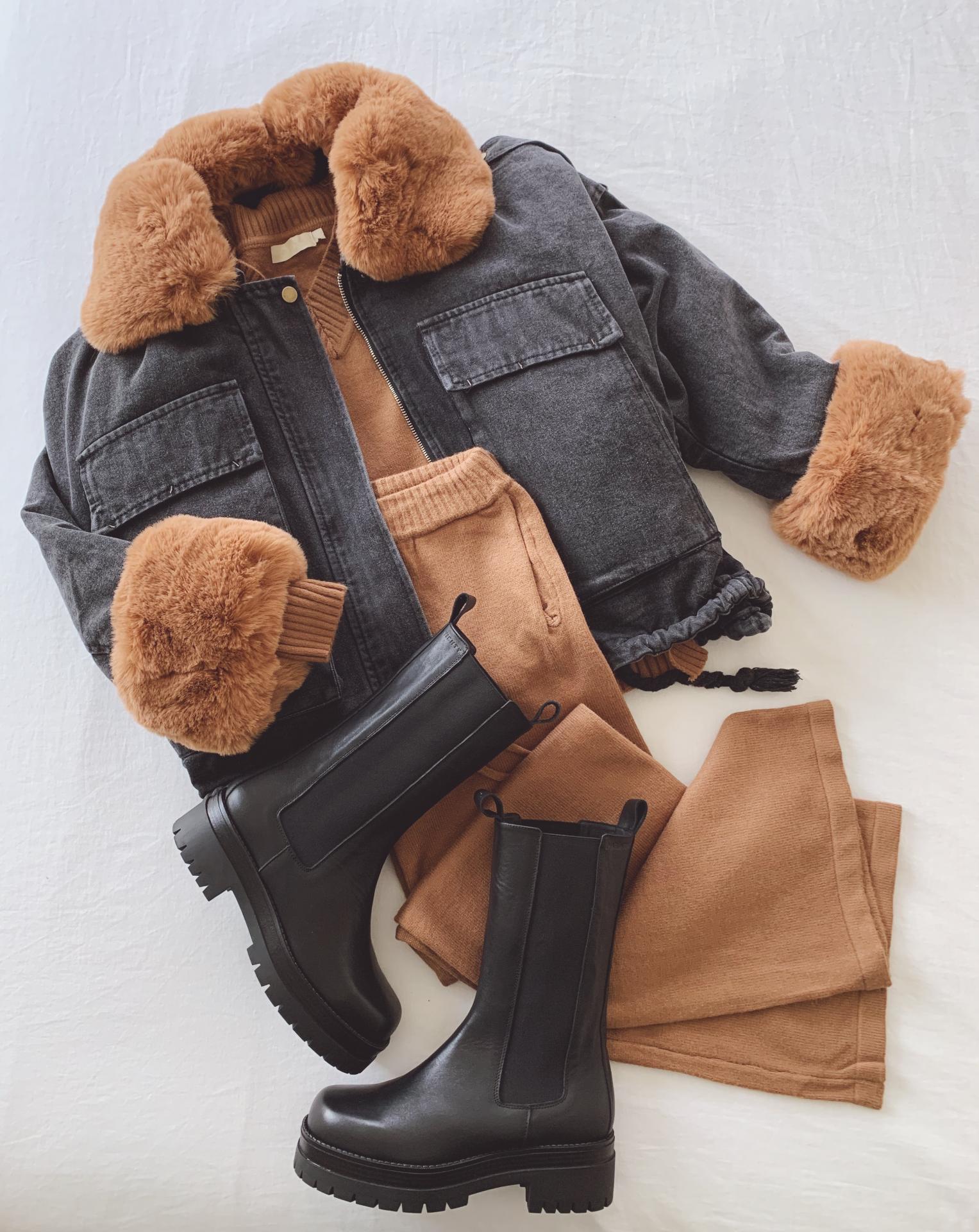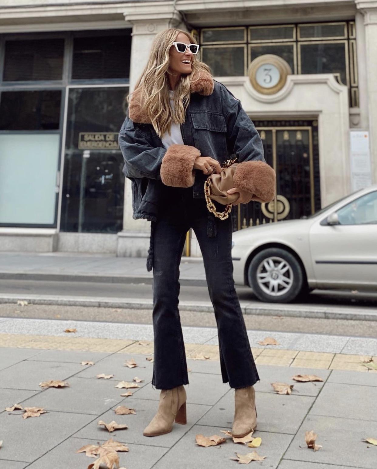 Nuevo abrigo en vaquero negro y con detalle de pelos en el cuello y puños.