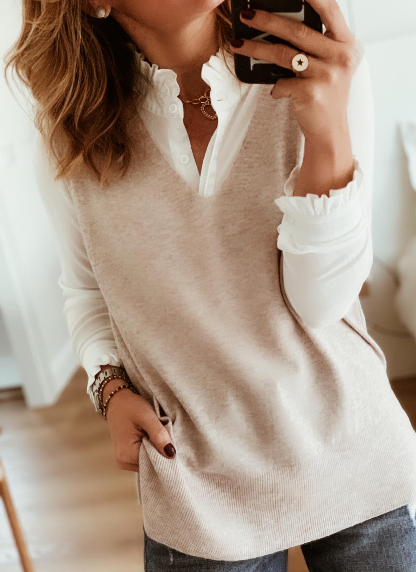 Nueva Chaleco de pico de punto suave y amoroso perfecto para combinar con blusas.