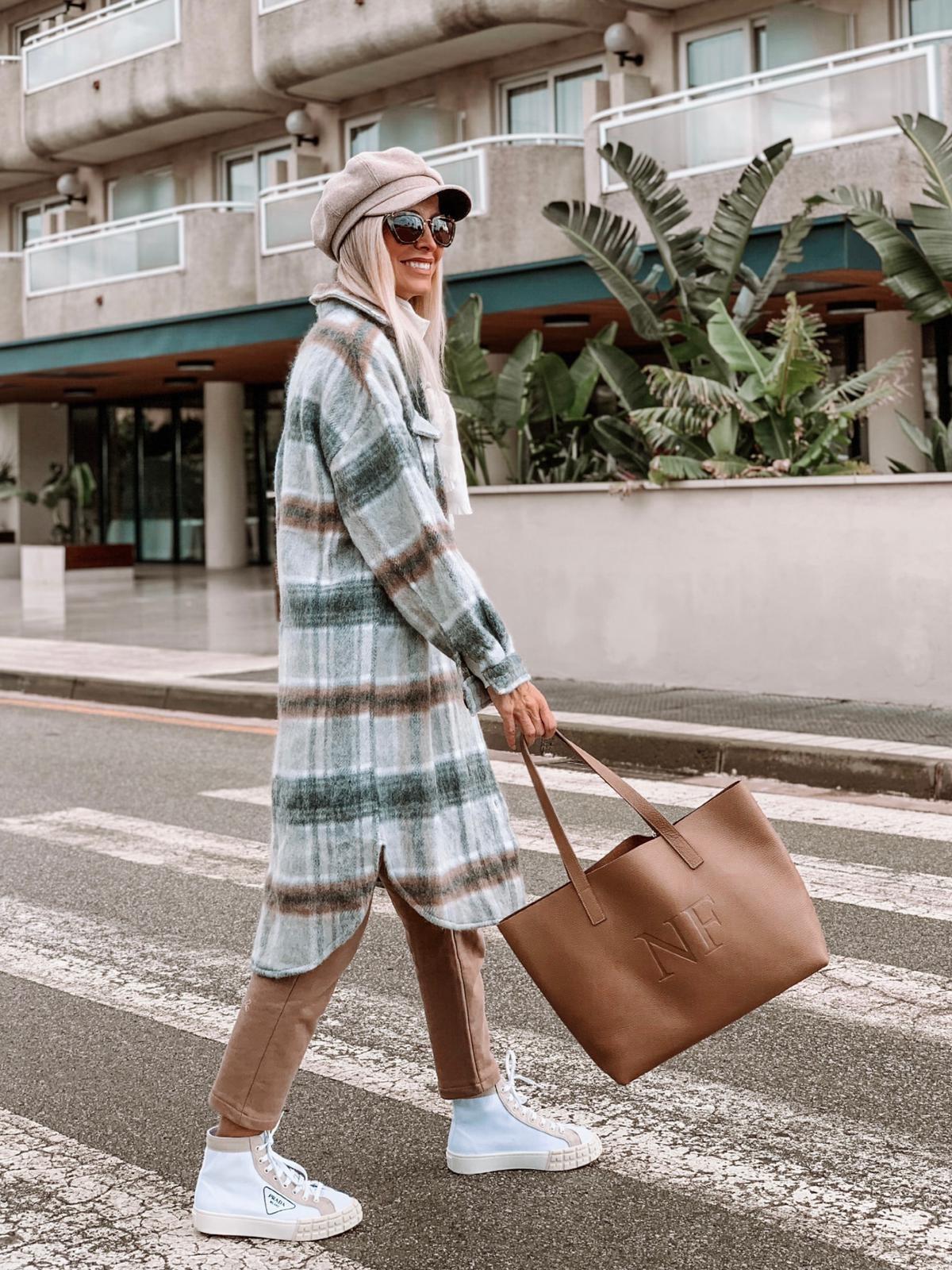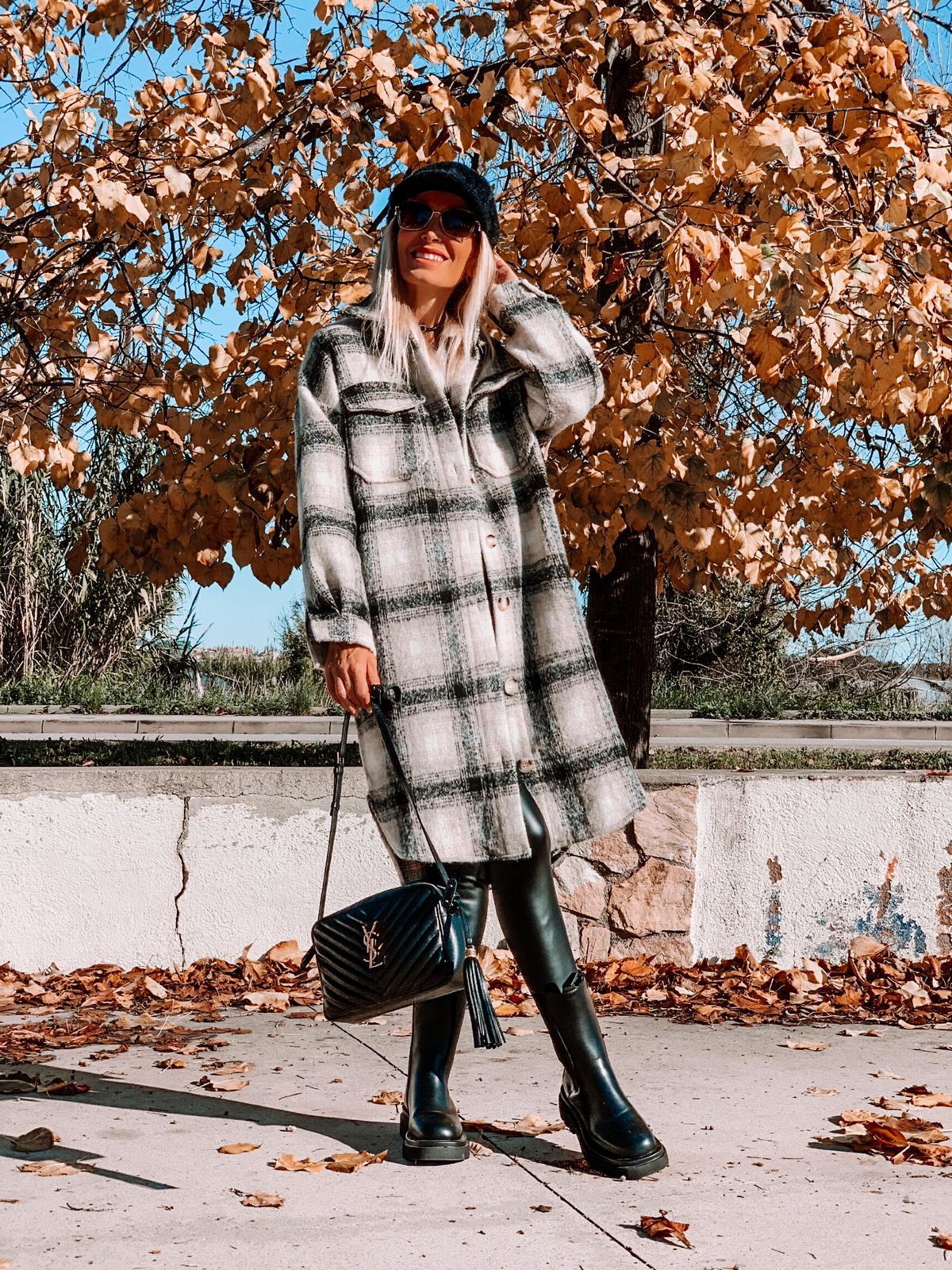 Nuevo abrigo Chantal en tonos gris y taupe, estampado en cuadros