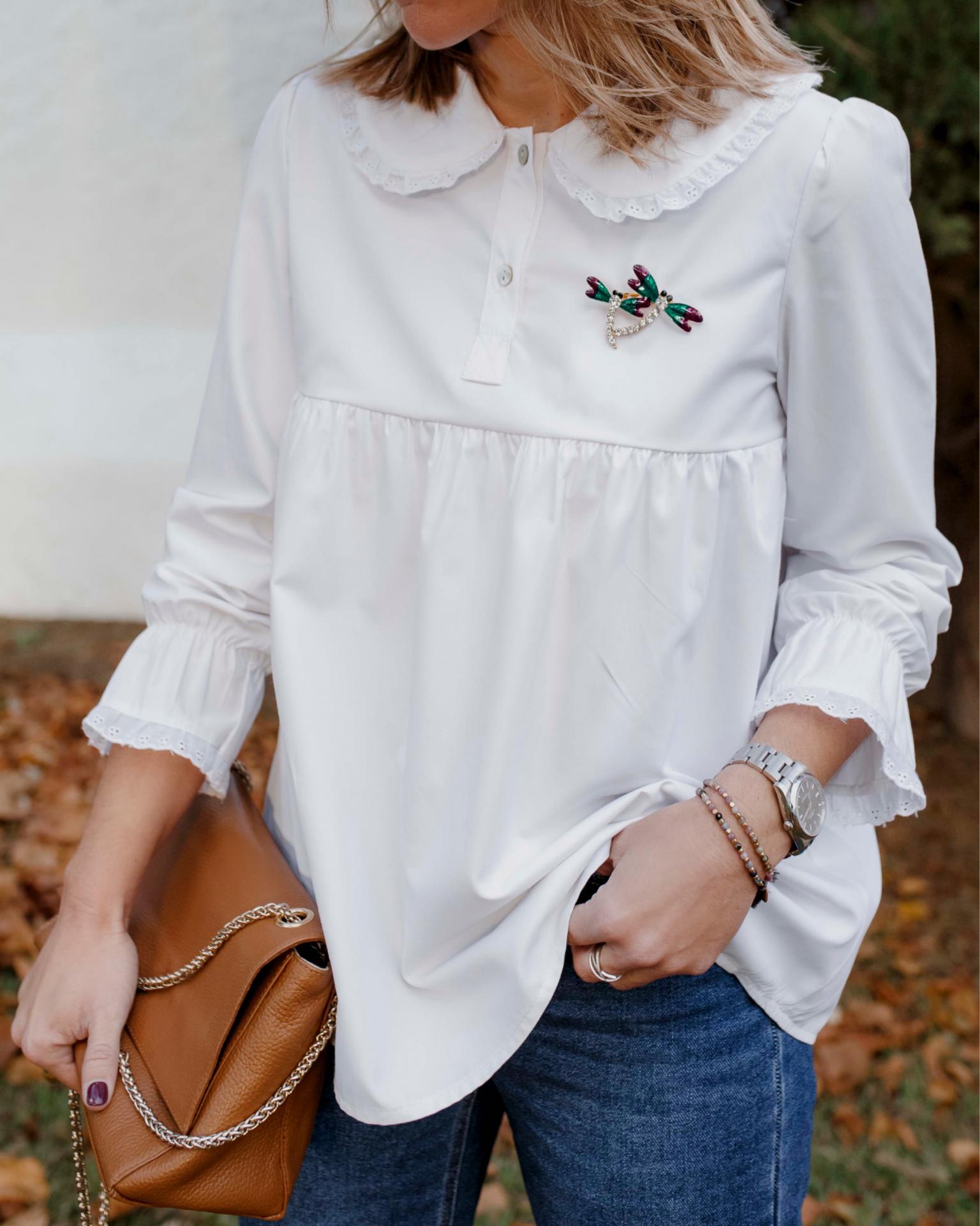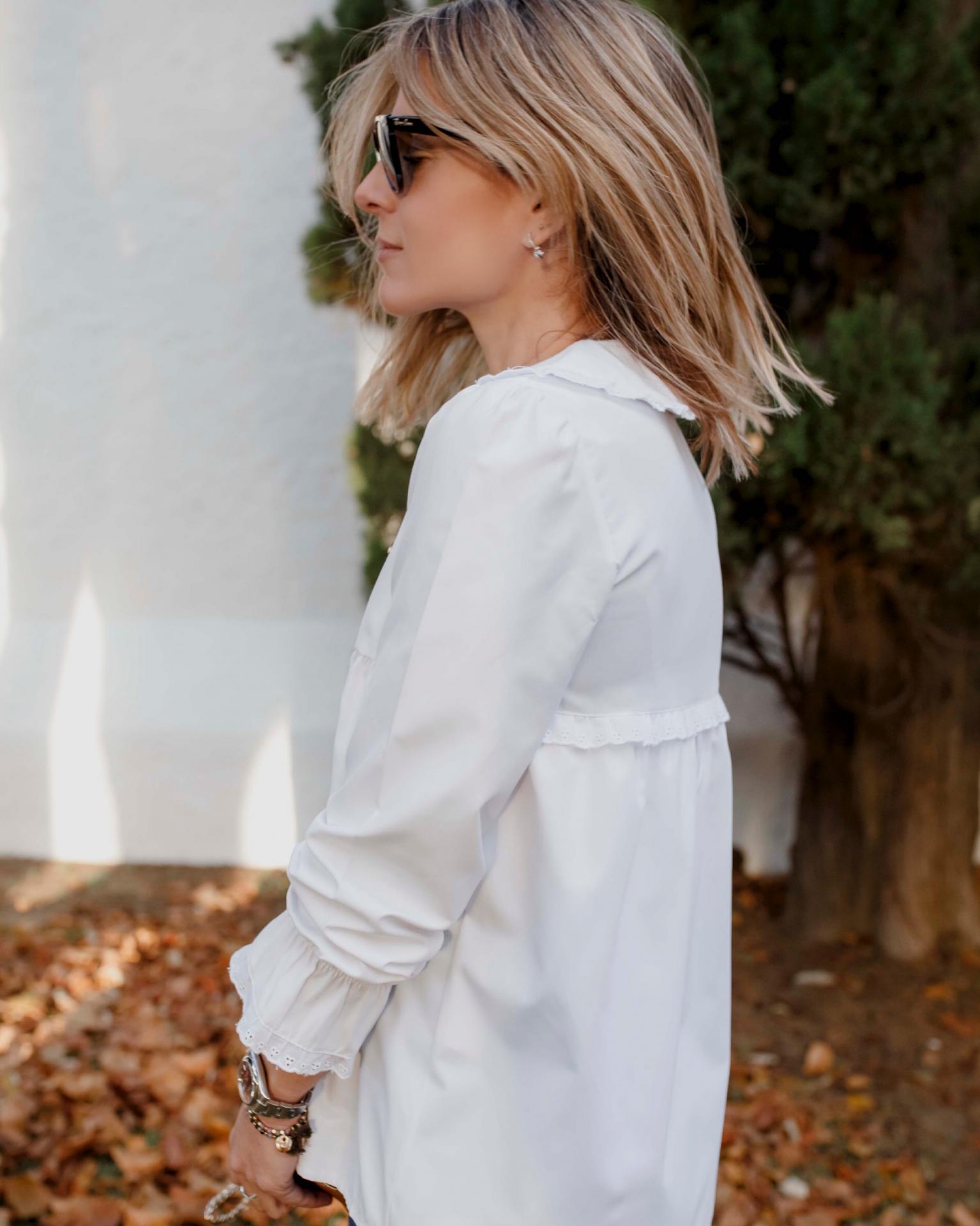 Nueva Blusa con detalles bordados en blanco en mangas y escote.
