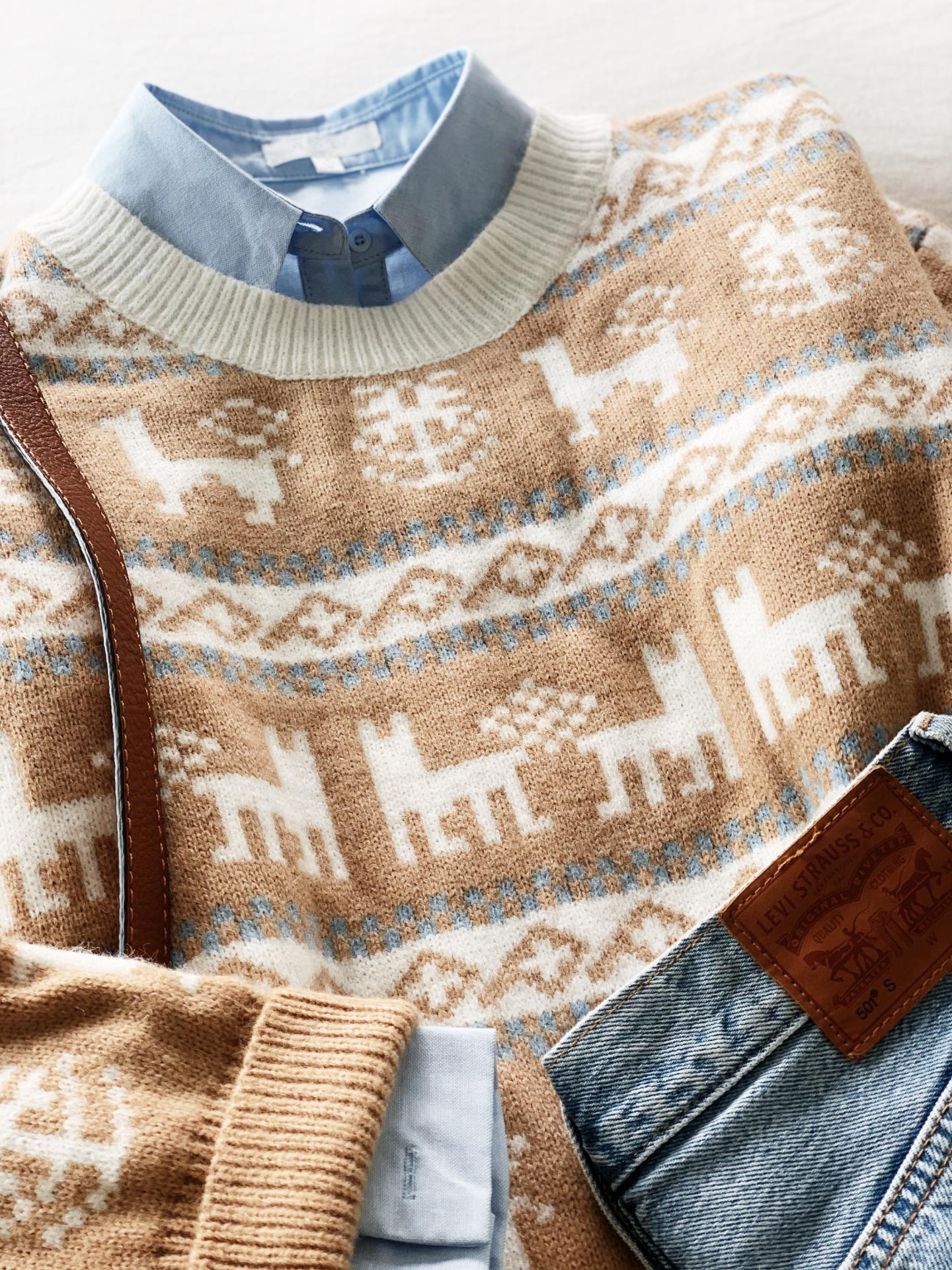 Nuevo Jersey con Ciervos bordados en camel, crudo y azul cielo.
