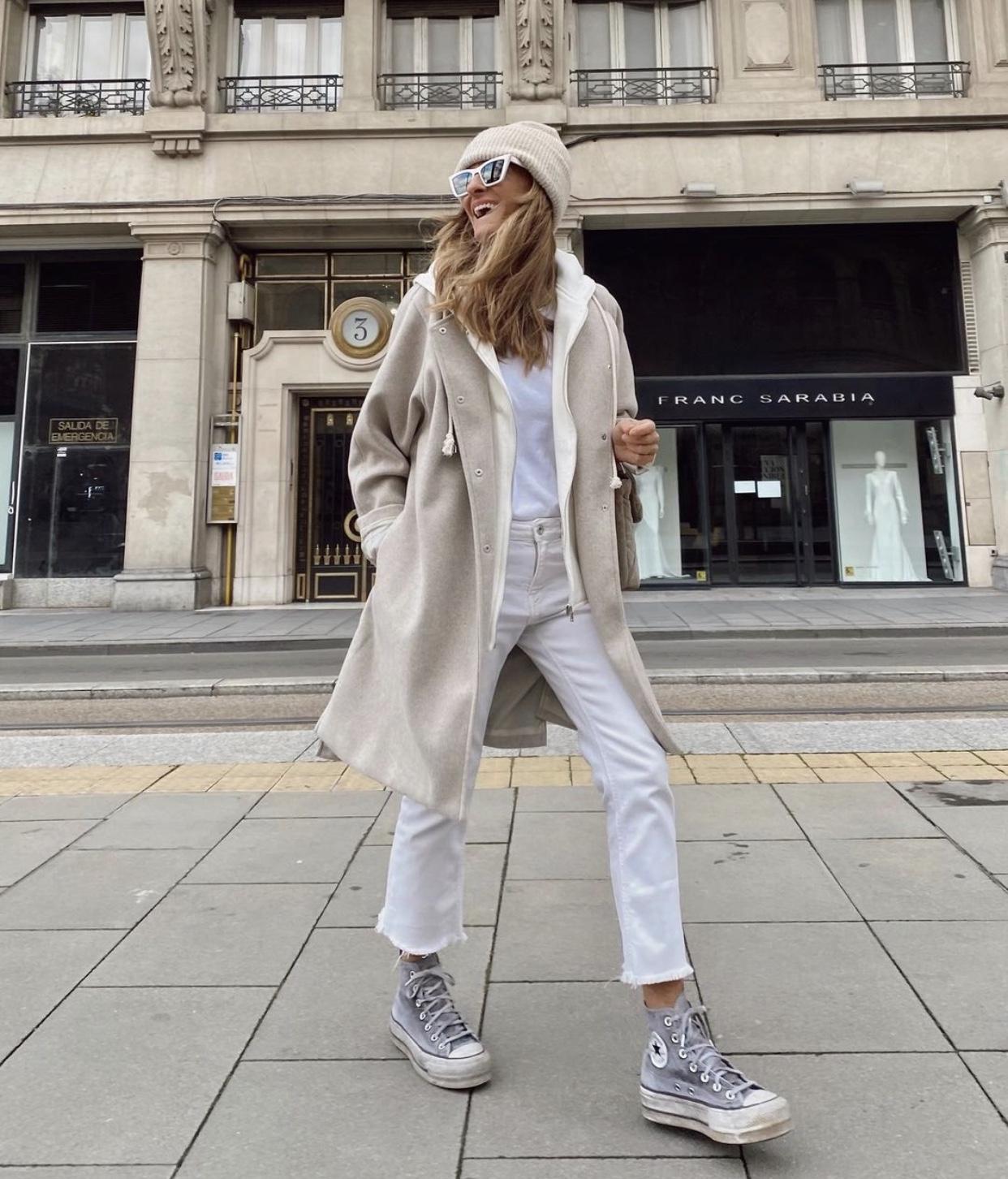 Corte oversize con bolsillos laterales invisibles.