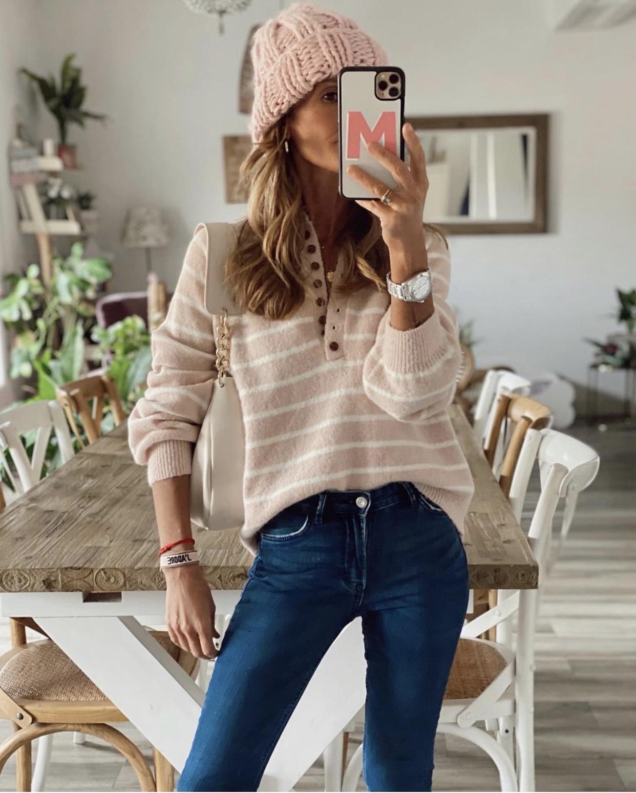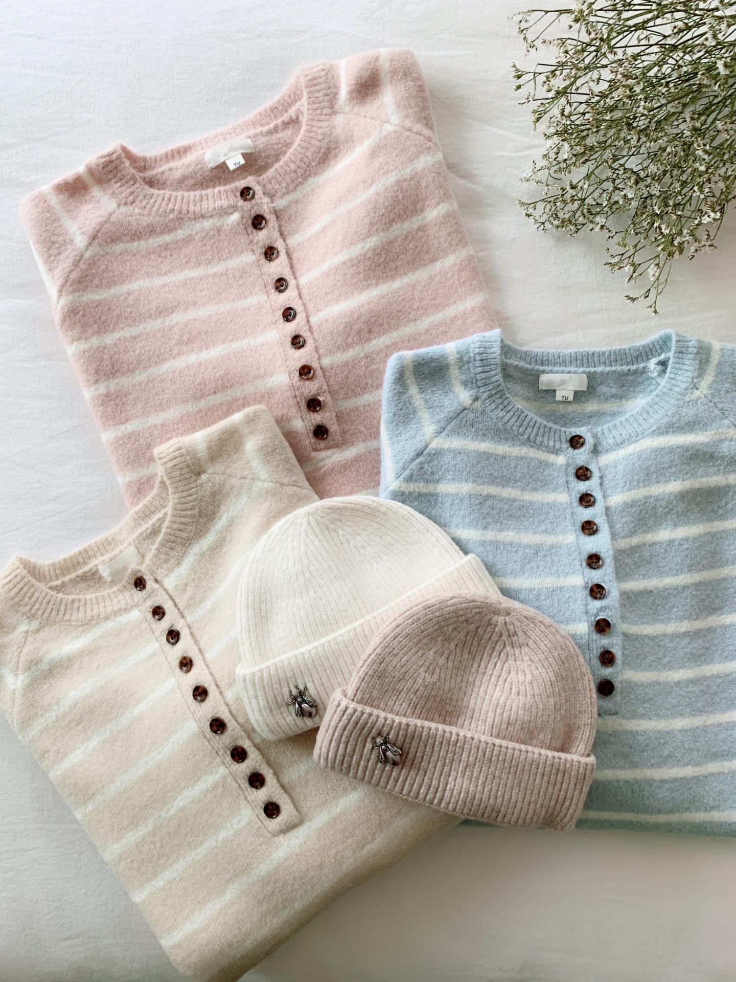 Nuevo jersey con detalle de botones y rayas en tonos pastel.