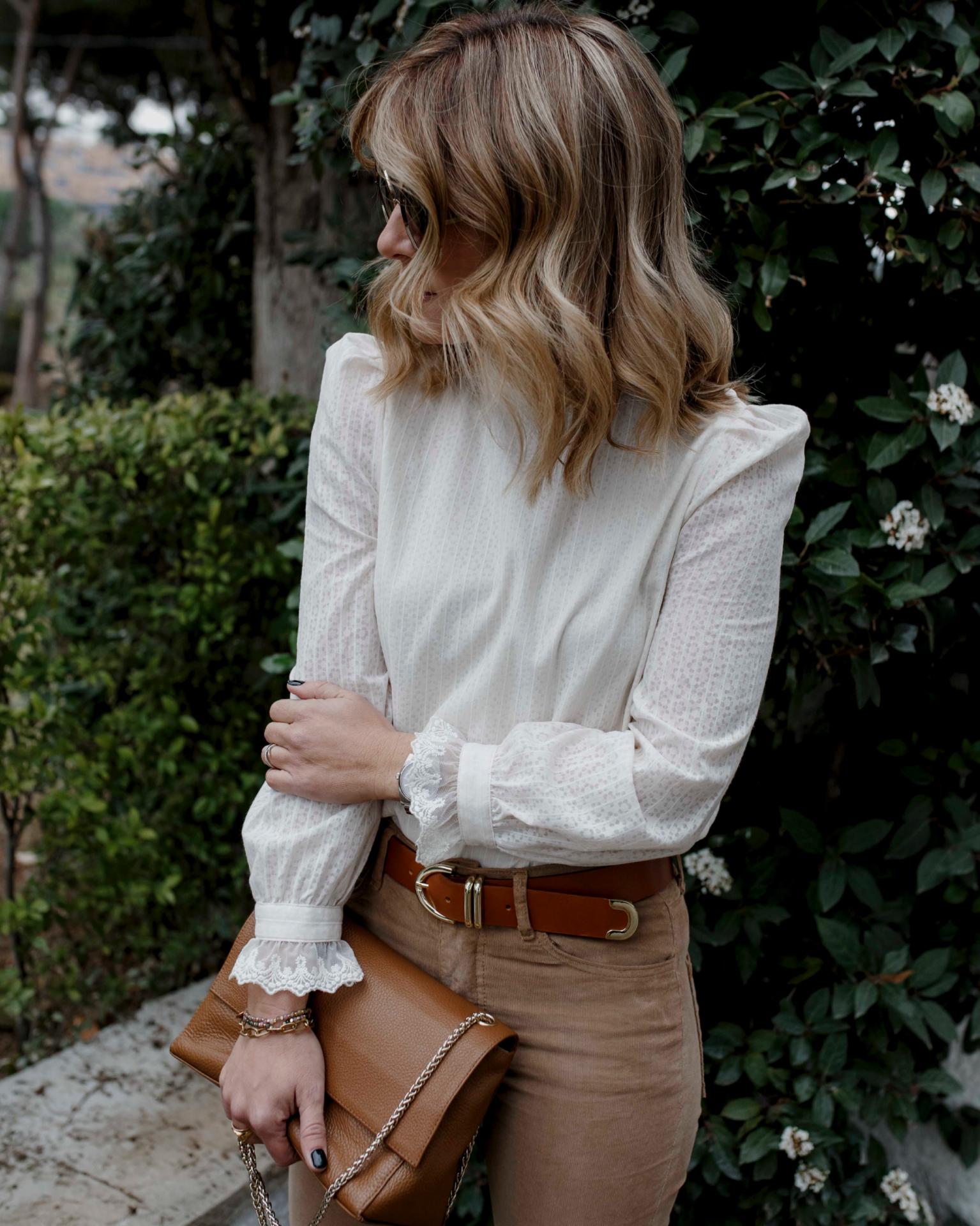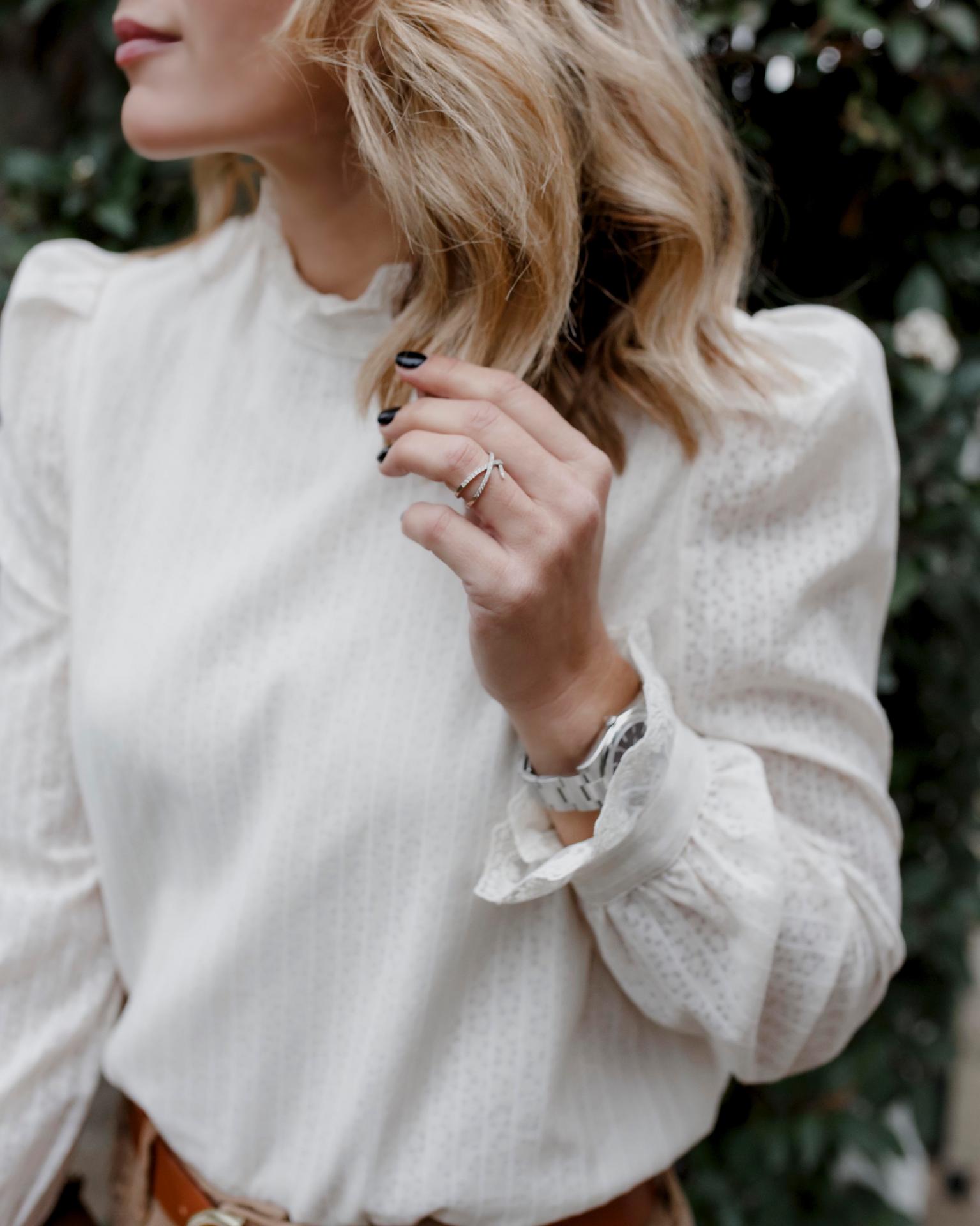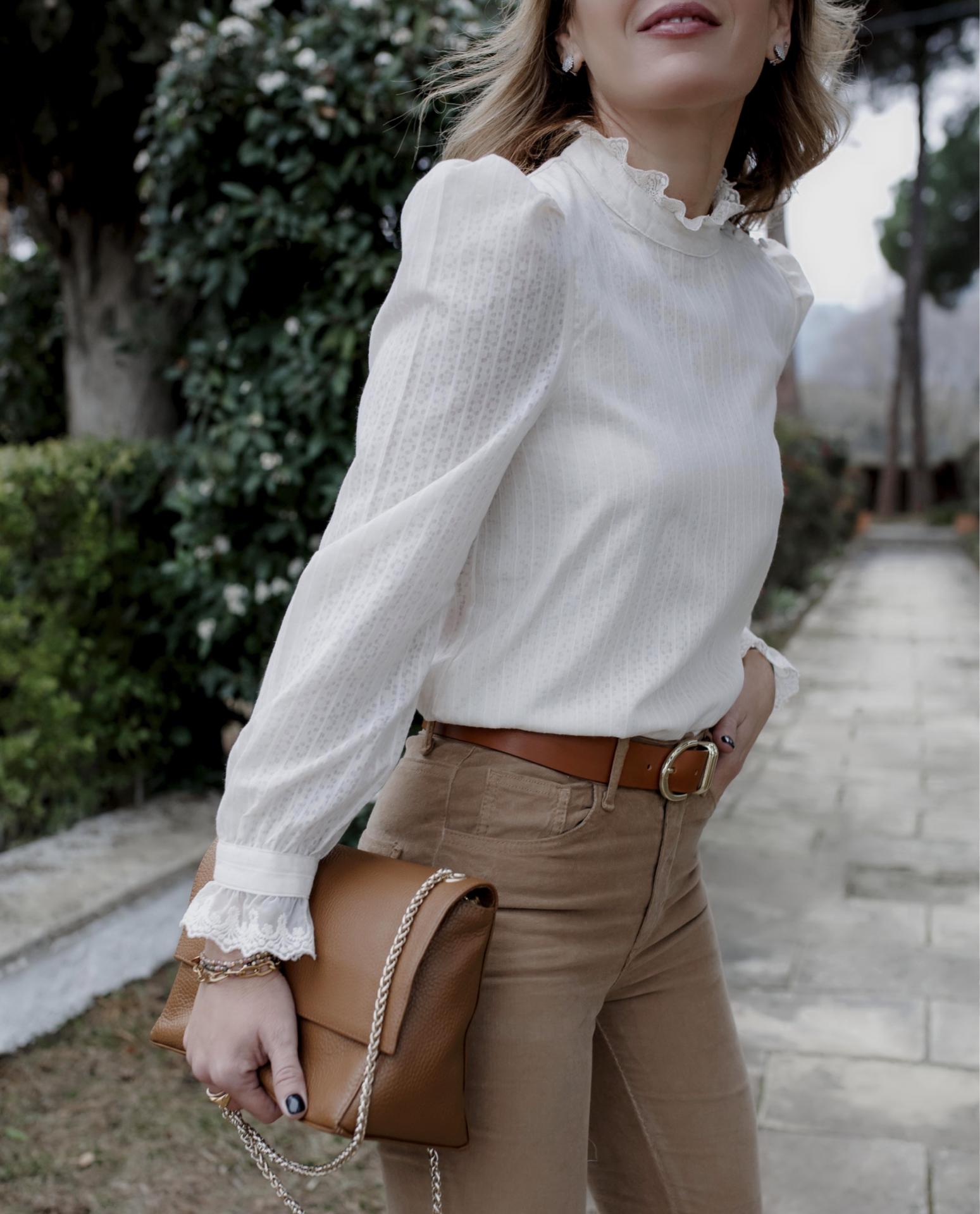 Nueva Blusa con detalles de encaje en cuello y puños.