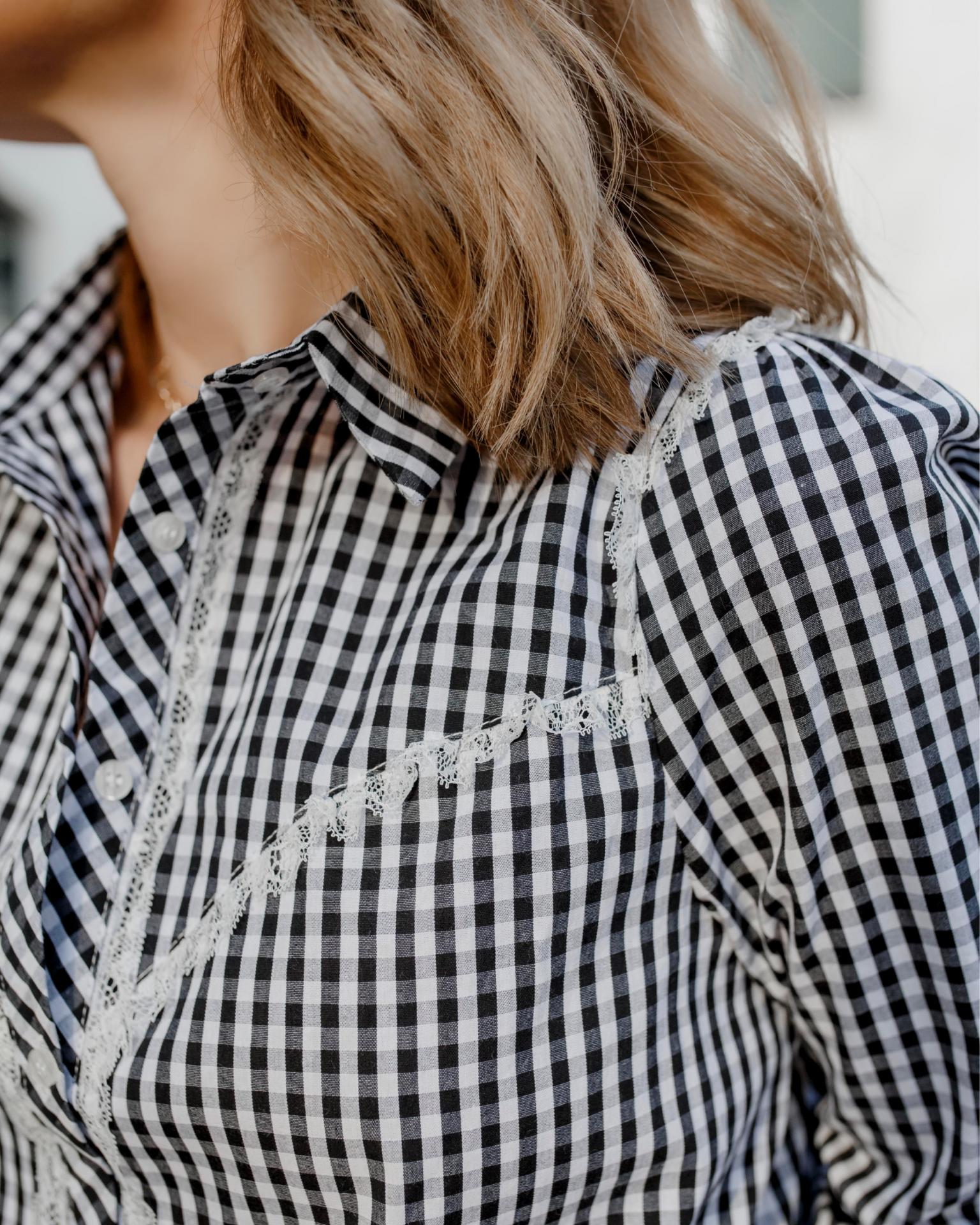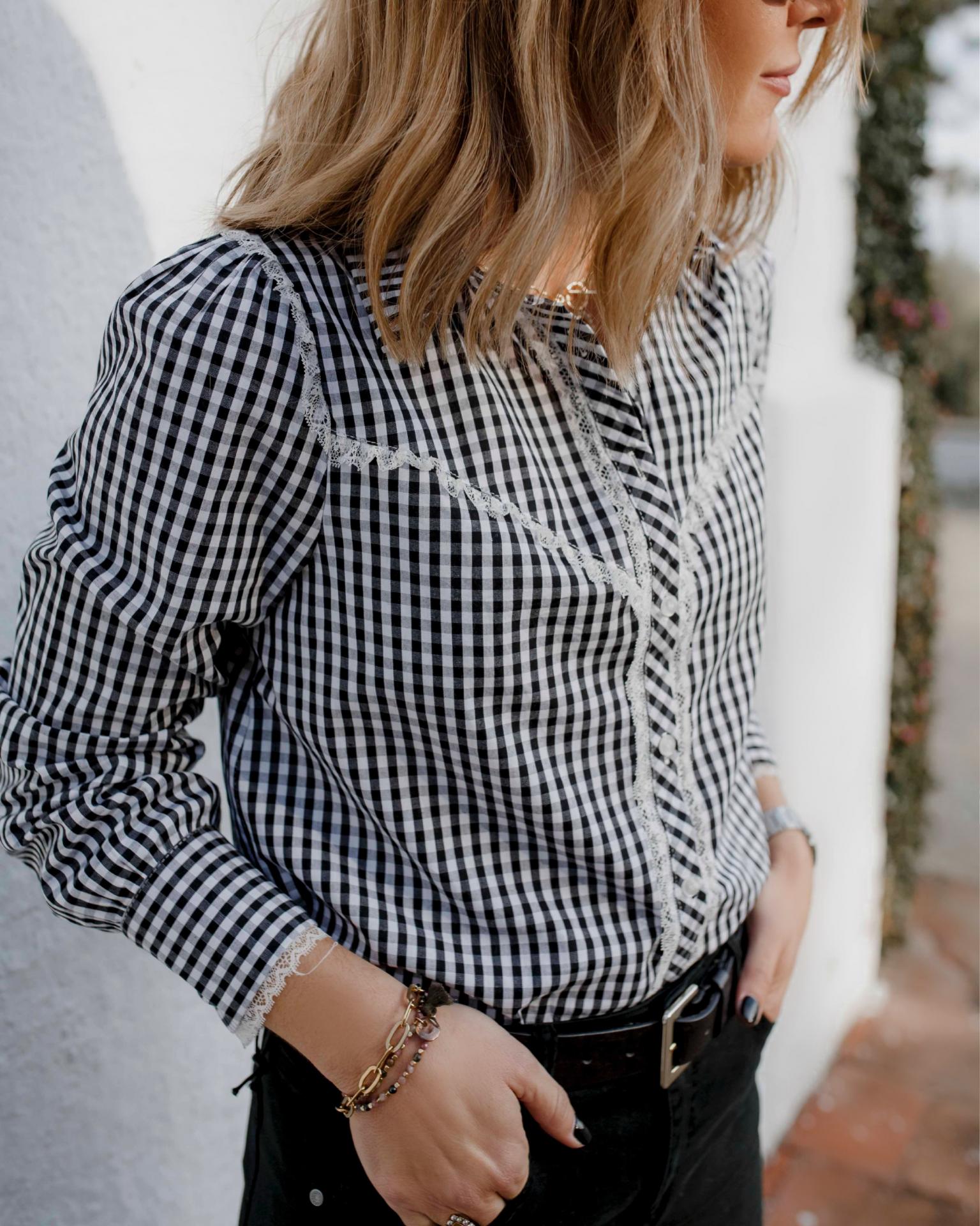 Nueva camisa Vichy con detalles de encaje y manga ligeramente abullonada en los hombros.