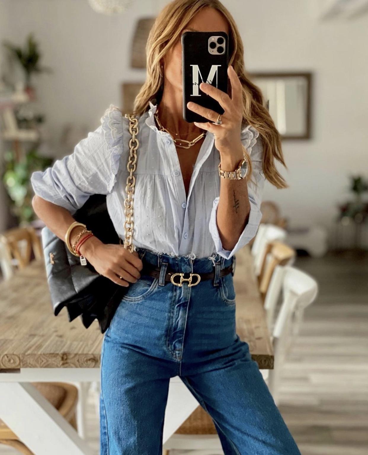 Blusa cuello caja con volantito en cuello y volantito doble en hombro, te encantará!