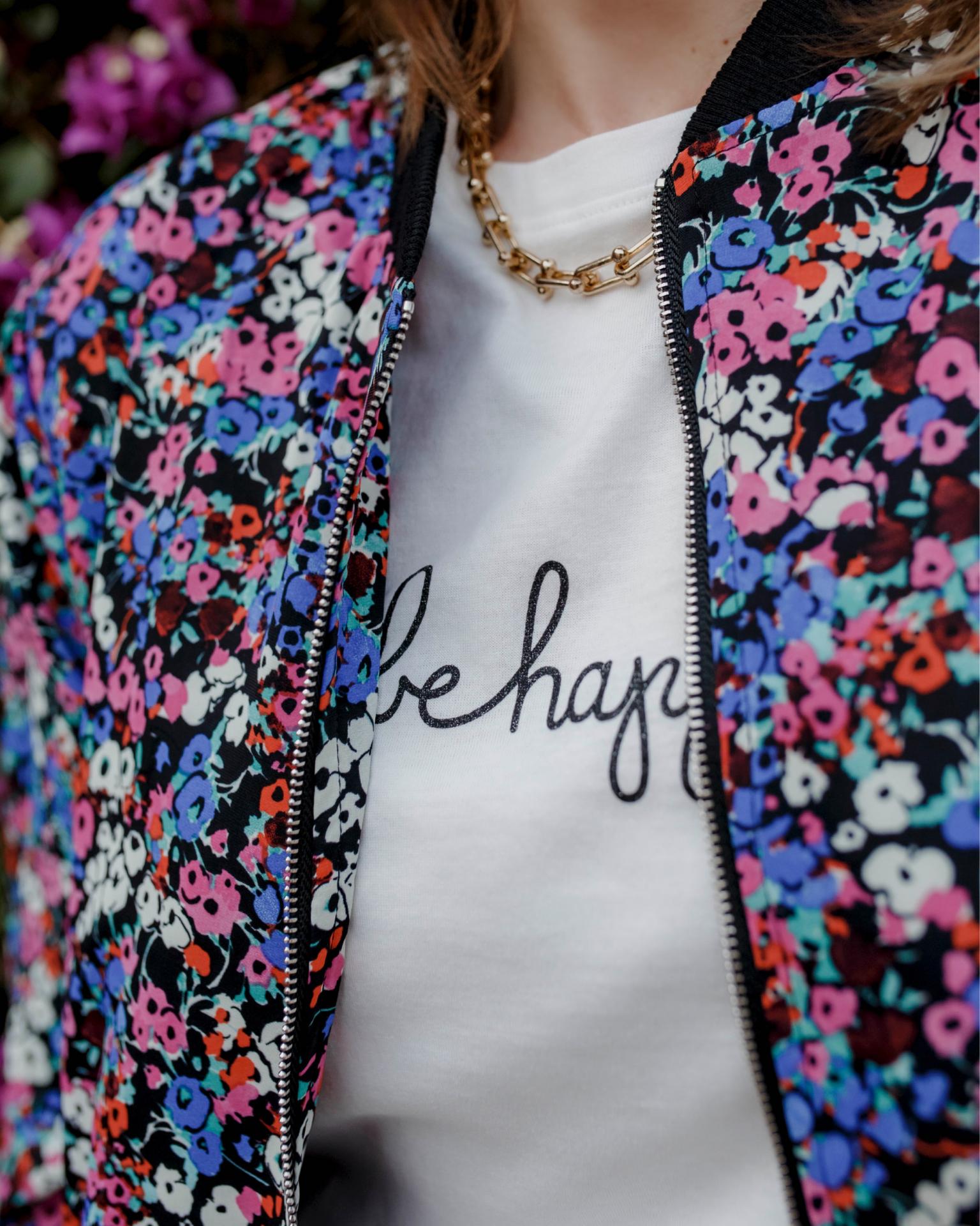 Nueva camiseta de corte recto y mensaje en letras negras y ligero detalle en glitter en las letras.