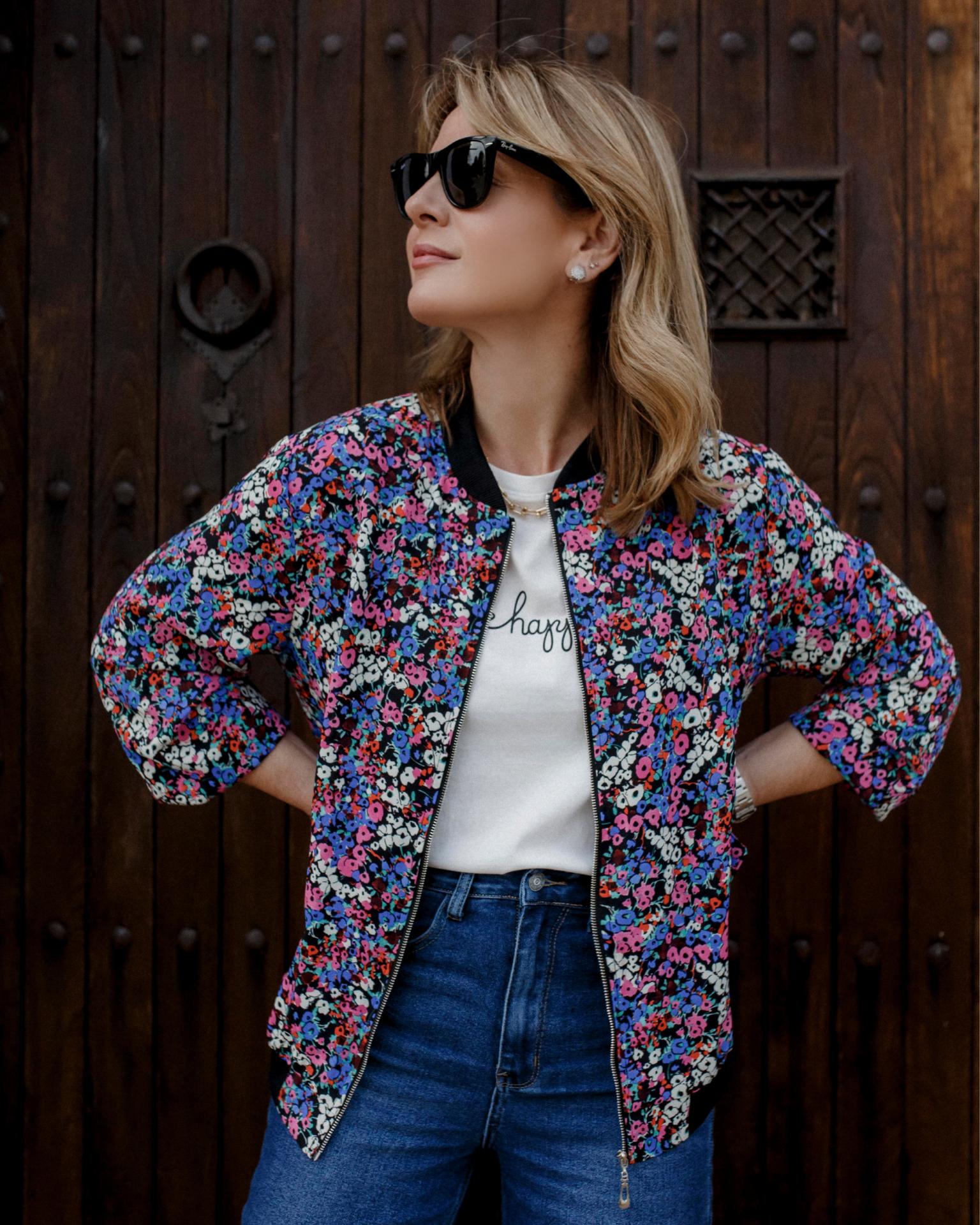 Nueva Bomber con cremallera y detalles negros en mangas, cuello y bajo.