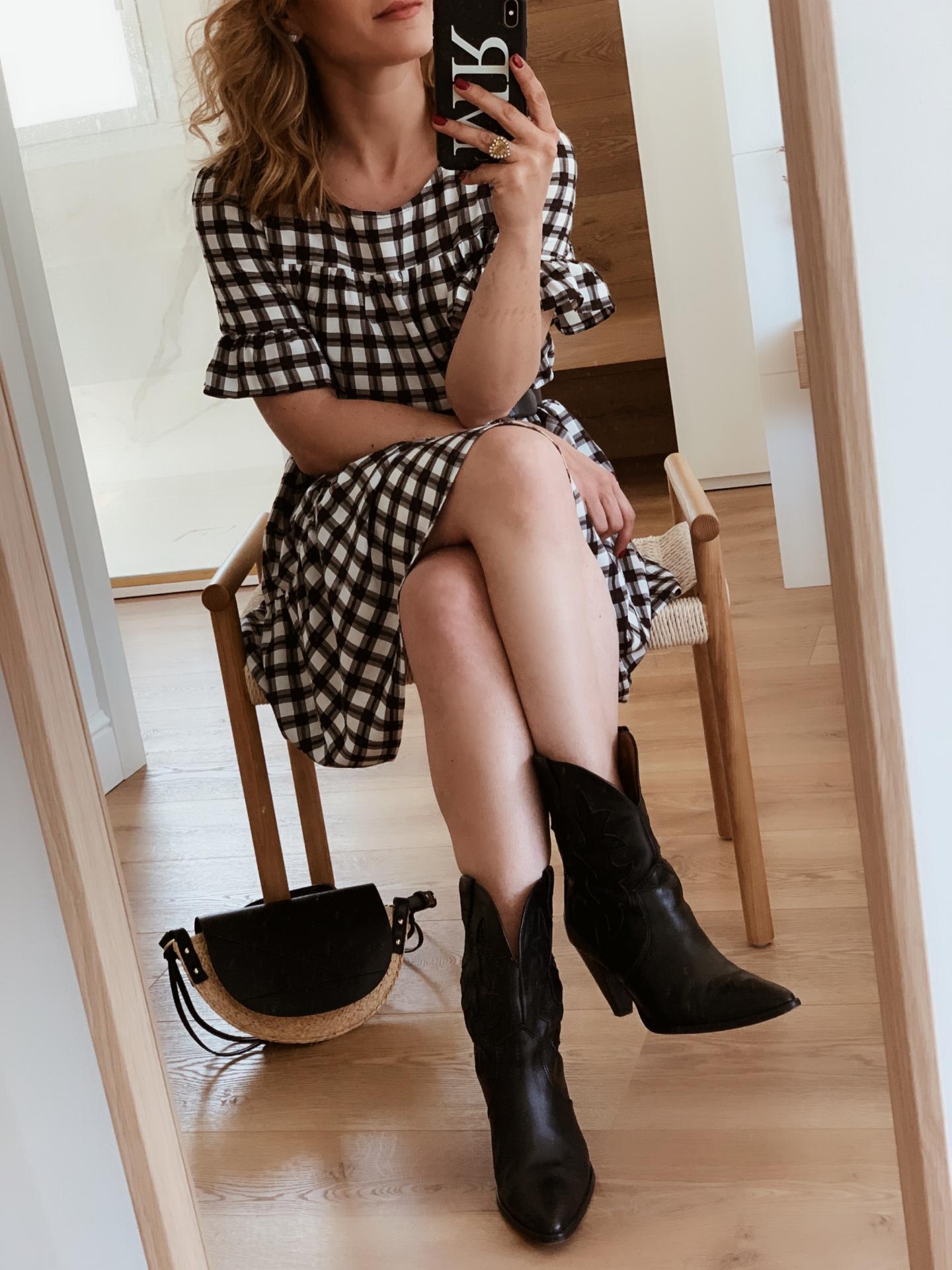 Nuevo Vestido con estampado de cuadros en blanco y negro.