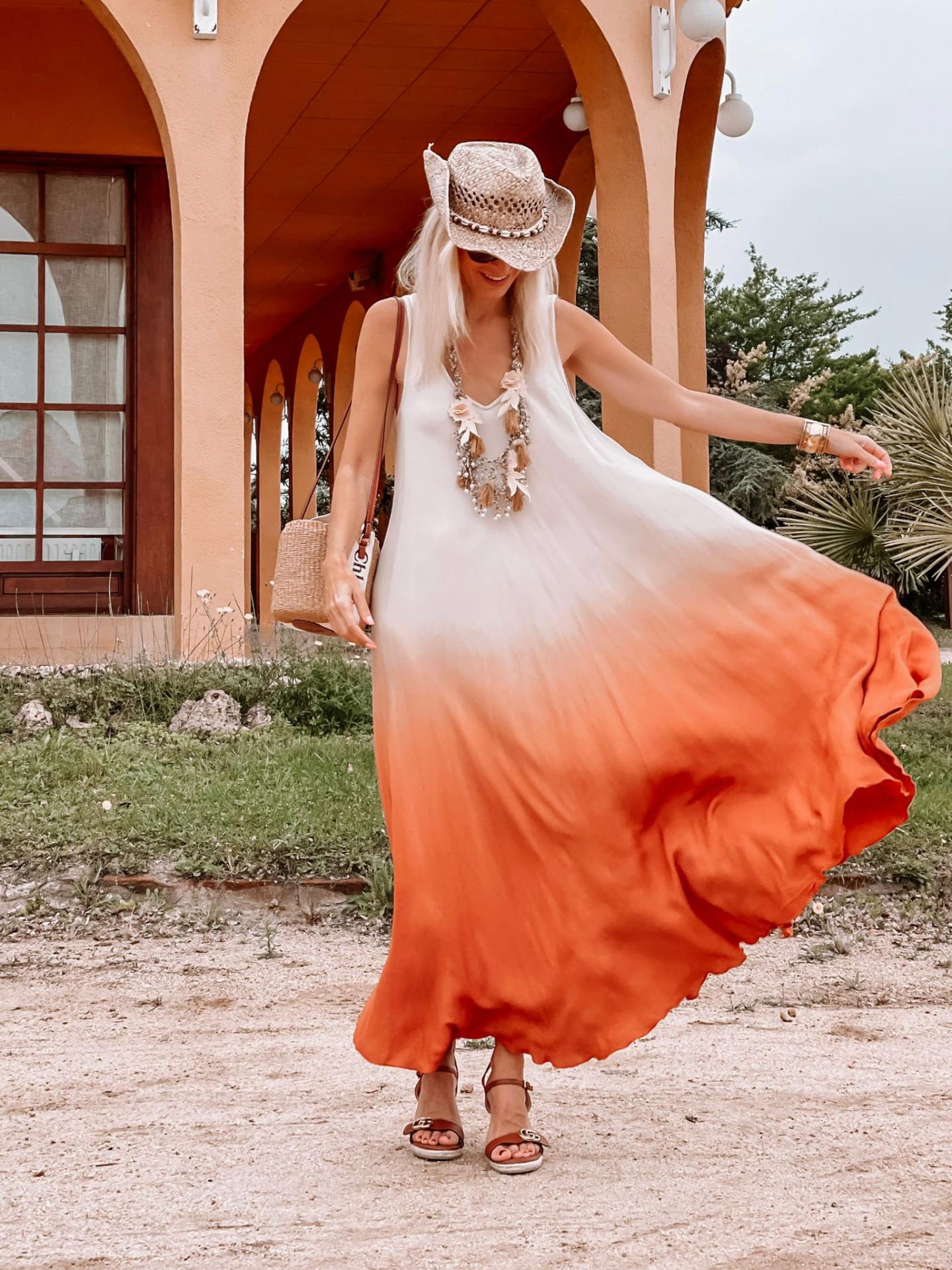 Vestido largo de tirantes con una caída y tejido espectaculares con mucho vuelo y de corte irregular.